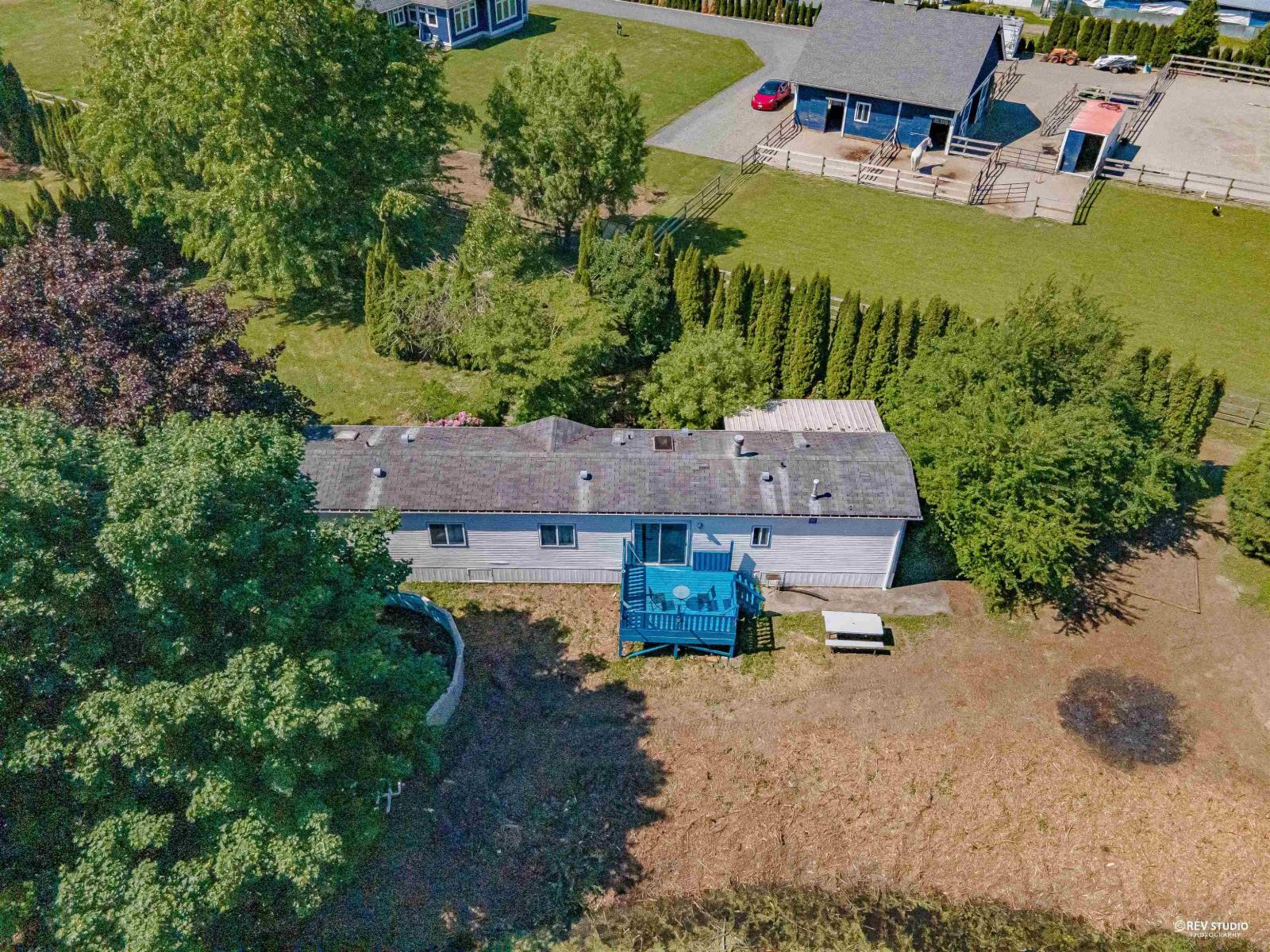 Resort style multi-generational living on almost 5 acres farm in Yarrow! This marvelous property has so much to offer. 2 homes, a large barn with 3 horse stalls, a loft, power and water. The Main house has 3 bedrooms, each with en-suite. Kitchen is recently renovated, and the home is equipped with AC. Large Mobile homes with 3 beds 2 baths has its own garden, separate driveway, separate septic, above ground pool and has potential for extra rental income. The property also has a workshop in the back for extra storage. With stunning landscaping, ponds and complete privacy, the property offers quick access to city centers, hwy 1 and all other amenities while being on a quiet back street. Only 15 min drive to Abbotsford, 10 min drive to Cultus Lake, and Garrison village. (id:49203)