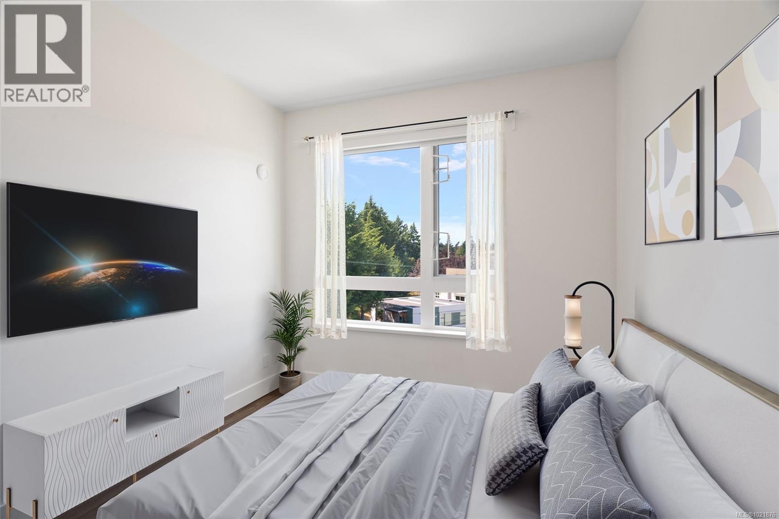 $481 MonthlyWelcome to Belmont Residences! This bright 1,105 sqft corner unit offers 3 bdrms/2 baths and includes two rare parking spots. The primary suite features a spa-inspired ensuite and walk-in closet. Large windows fill every room with natural light, and the open-concept layout showcases a gourmet kitchen with a spacious island, SS appliances, gas cooktop, ample storage, and a patio with BBQ hookup. With no shared walls except within a closet, this home feels exceptionally private. Additional perks incl. a heat pump, in-suite laundry, and dedicated storage. Building amenities feature a terraced patio with BBQ, firepit lounge, kayak and bike storage, pet wash station, and access to the Belmont Club. Steps to Belmont Market, the Galloping Goose Trail, and transit, this walkable community offers a vibrant, connected lifestyle in a prime location. This walkable neighborhood offers an active urban lifestyle with vibrant local amenities and community spaces designed for connection and easy commuting! (id:49203)
