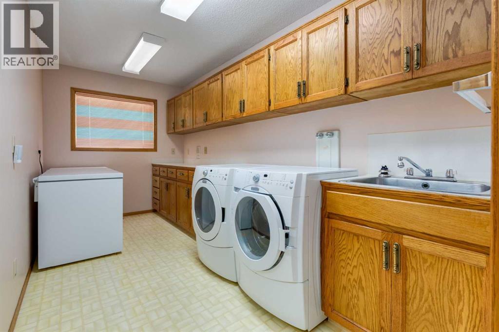 A true gem! Sitting in one of the best pockets in Hawkwood, this custom built, one owner home, is looking for a new family to make it their own. As you pull into the driveway, you will be impressed w/the great curb appeal w/stucco exterior and stone accents plus a clay tile roof. Walking in the front door, you are greeted by a large foyer that leads into a bright and inviting living room featuring a lovely turret window that fills the space w/natural light. A spacious formal dining area is the perfect space to host all your big holiday dinners. W/12' vaulted ceilings, the space feels grand. The well-designed kitchen offers plenty of oak cabinetry incl. a wall pantry w/ pull out drawers to keep you organized. The island houses the electric cooktop plus more storage and extra counter space. A cozy breakfast nook is open to both the sunroom and the family room. The all-season sunroom will be a great addition for those green thumbs w/hot water heating, newer glass panels on the ceiling and automatic Hunter Douglas blinds so you can control the sun. The family room is where you will want to spend your time with a cozy wood burning fireplace surrounded by oak built-ins. The main floor also features a spacious primary retreat w/access to the deck, along w/a 5-ensuite offering double sinks, a large soaker tub, and a walk-in shower. A second bedroom, a four-piece bathroom, and an huge laundry/storage room w/built-in cabinetry and a utility sink add to the function of the home. W/beautiful NW exposure, you will enjoy the summer nights out on the very generous balcony (42’ x 9’). Updated w/composite deck boards, glass railing and stairs leading down to the backyard so you can move around with ease. There is a gas line for those avid BBQ’ers plus lots of covered area when the weather isn’t cooperating. Downstairs, the bright walkout basement w/in floor heat offers a large rec area w/a second wood burning fireplace and a huge a wet bar for those who like to entertain. Two addit ional bedrooms, one off the back of the house taking advantage of full height windows makes for a great space. The substantial undeveloped space offers over 900 sq.ft of potential living area. W/rough-ins for a future bathroom and kitchen adding a mother-in law space is easy or use the space for a gym or home office. A large cold storage room completes the lower level. Patio door leads out your lower patio area that overlooks your private backyard, complete w/underground sprinklers. The oversized 22’ x 22’ double attached garage is drywalled, insulated and heated. Hot, cold and soft water taps are also present which makes for a great shop. Come see what makes Hawkwood great! Bike paths, greenspaces, easy access to transit, all the shops and amenities that Crowfoot has to offer plus walking distance to both elementary schools. Bungalows of this size are not easy to find. W/over 2200 sq.ft on the main floor alone, this is a rare opportunity to own a truly spacious home that offers incredible opportunity (id:49203)