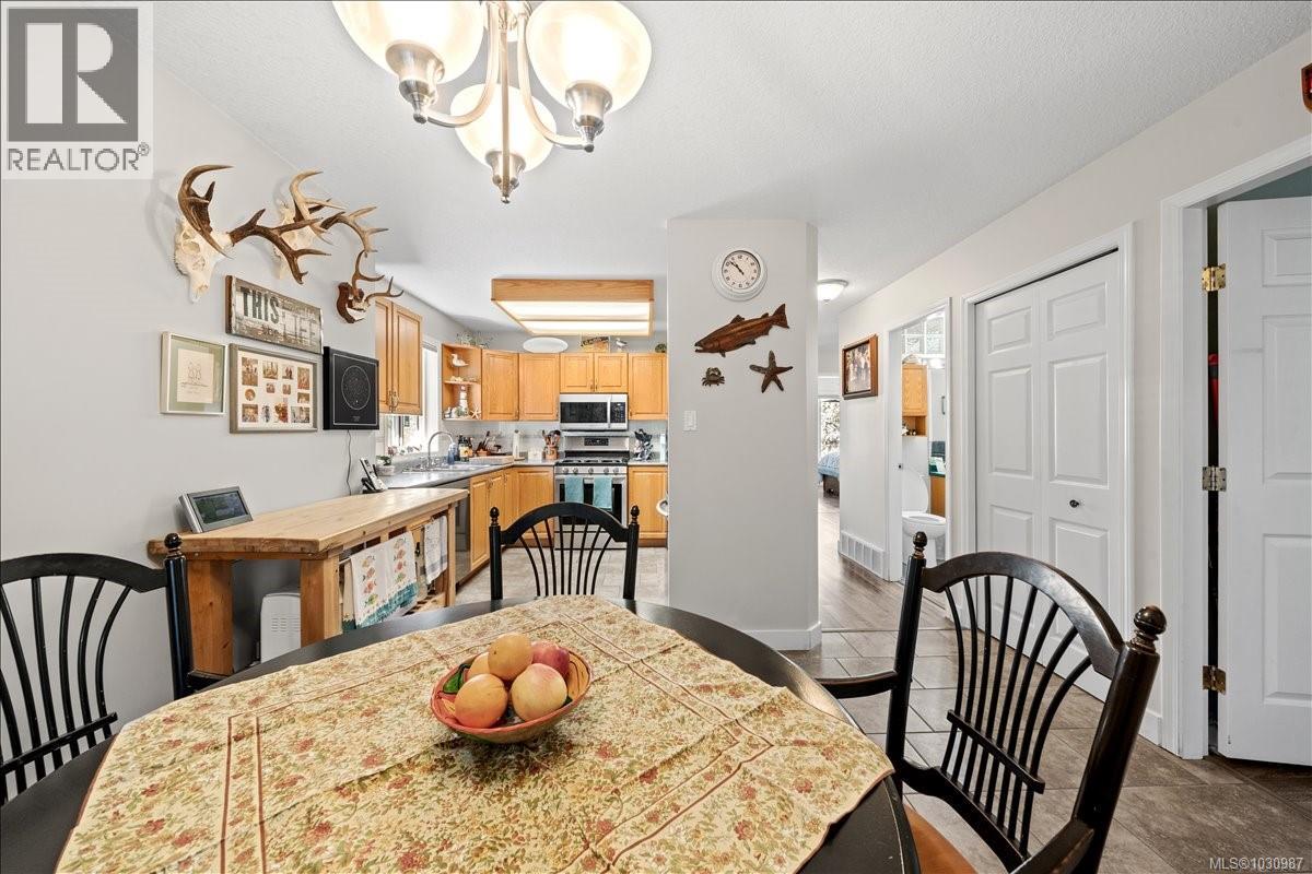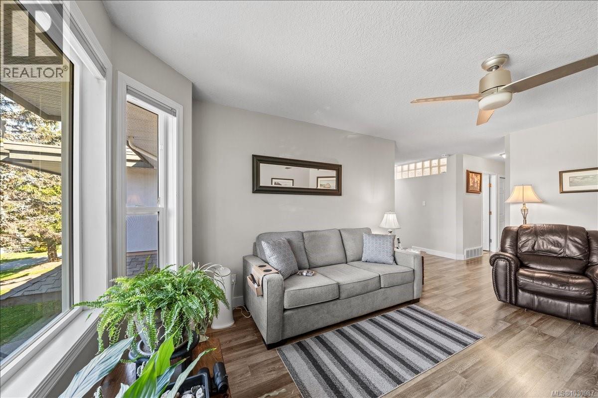 $370 MonthlyWelcome to 4201 Kendall Ave, a quality-built executive townhouse in the highly desirable Echo Centre area of Port Alberni. Set within a quiet, 55+ adult-oriented complex of just seven units, this home offers a rare blend of thoughtful design, low-maintenance living, and everyday practicality. This end unit has been exceptionally well maintained and offers the convenience of an additional entry to the main floor, ideal for those seeking ease and accessibility. A standout feature is the lane access with double parking with direct access into the kitchen, making grocery trips effortless and daily living that much smoother. Inside, the main level welcomes you with a spacious living room highlighted by a charming bay window and cozy gas fireplace. The oak kitchen is both functional and inviting, featuring updated appliances, a bright sunshine ceiling, and an adjoining eating area filled with natural light. The primary bedroom offers mirrored closet doors and a private 3-piece ensuite, while a second bedroom and a full 4-piece bathroom complete the main floor layout. Downstairs provides excellent flexibility with a den or third bedroom, (no closet) a full 4-piece bath, great for guests. Generous laundry/utility room with plenty of storage. The large single garage also includes room for additional workspace. Step outside to your private patio & garden area, perfect for quiet mornings or relaxed evenings. From the living room, enjoy views to a beautiful natural treed backdrop & of the mountains to the west. Open space and very relaxing. There is a garden area which is communal strata. Located just minutes from shopping, the new hospital, North Island College, and public transit, this home is also directly across from the track, skating rink, and scenic wooded walking paths. A rare offering in a prime location—this is refined, easy living designed for comfort, convenience, and peace of mind. (id:49203)