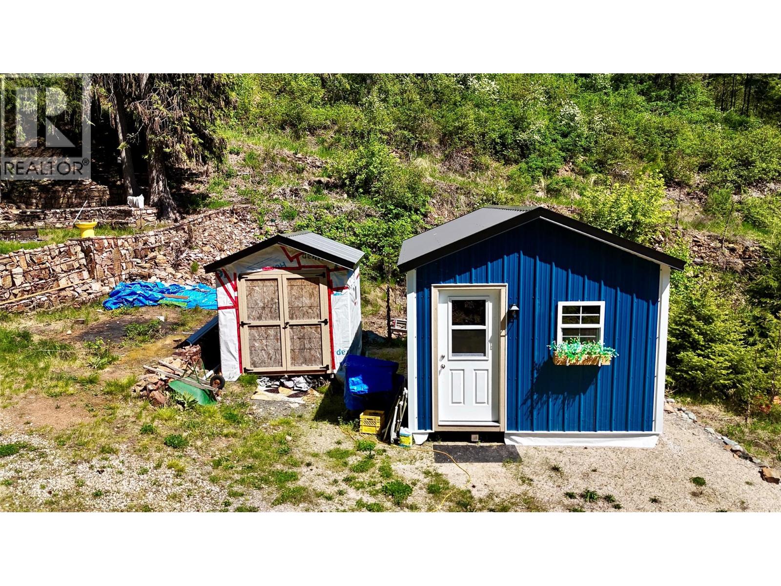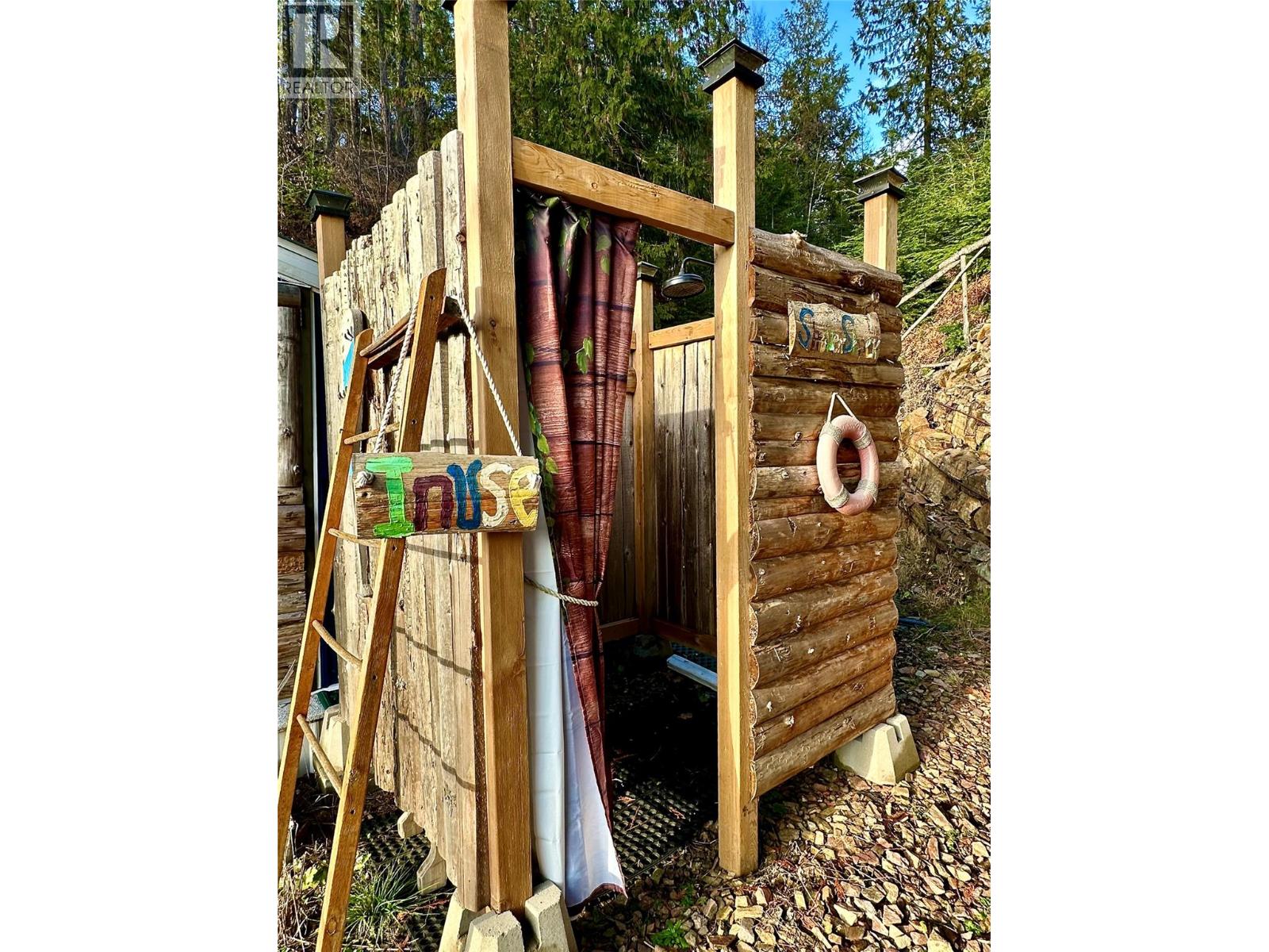 This charming property in Woodbury Village, Ainsworth Hot Springs, BC, is set up for seasonal use or year-round living. Located just 10 minutes south of Kaslo and 45 minutes north of Nelson, it features a beautifully upgraded setup. The newly constructed bunkie cabin creates an additional living space for guests or extra storage. The property also features a new shed from Kootenay Sheds, an outdoor shower, an upgraded hot water system, new siding, and barnwood wallpaper in the main living space. The property includes a spacious covered deck, a bright living room, and a laundry/utility shed with a large roof system. Thoughtful landscaping with small paths and trails creates a lovely outdoor atmosphere. Fully serviced with water, hydro, internet, and a septic system, this property also offers ample parking. The private community beach is within walking distance, and the southern exposure provides a sunny and inviting space with wonderful mountain views and partial lake views. There's room for further development, making this an ideal property for part-time use or live in full-time and develop as you wish . If you're looking for a peaceful retreat, this is a must-see! (id:49203)