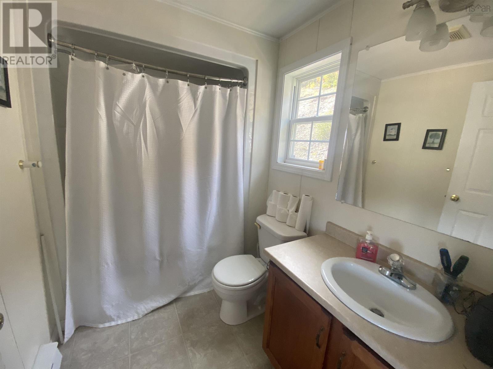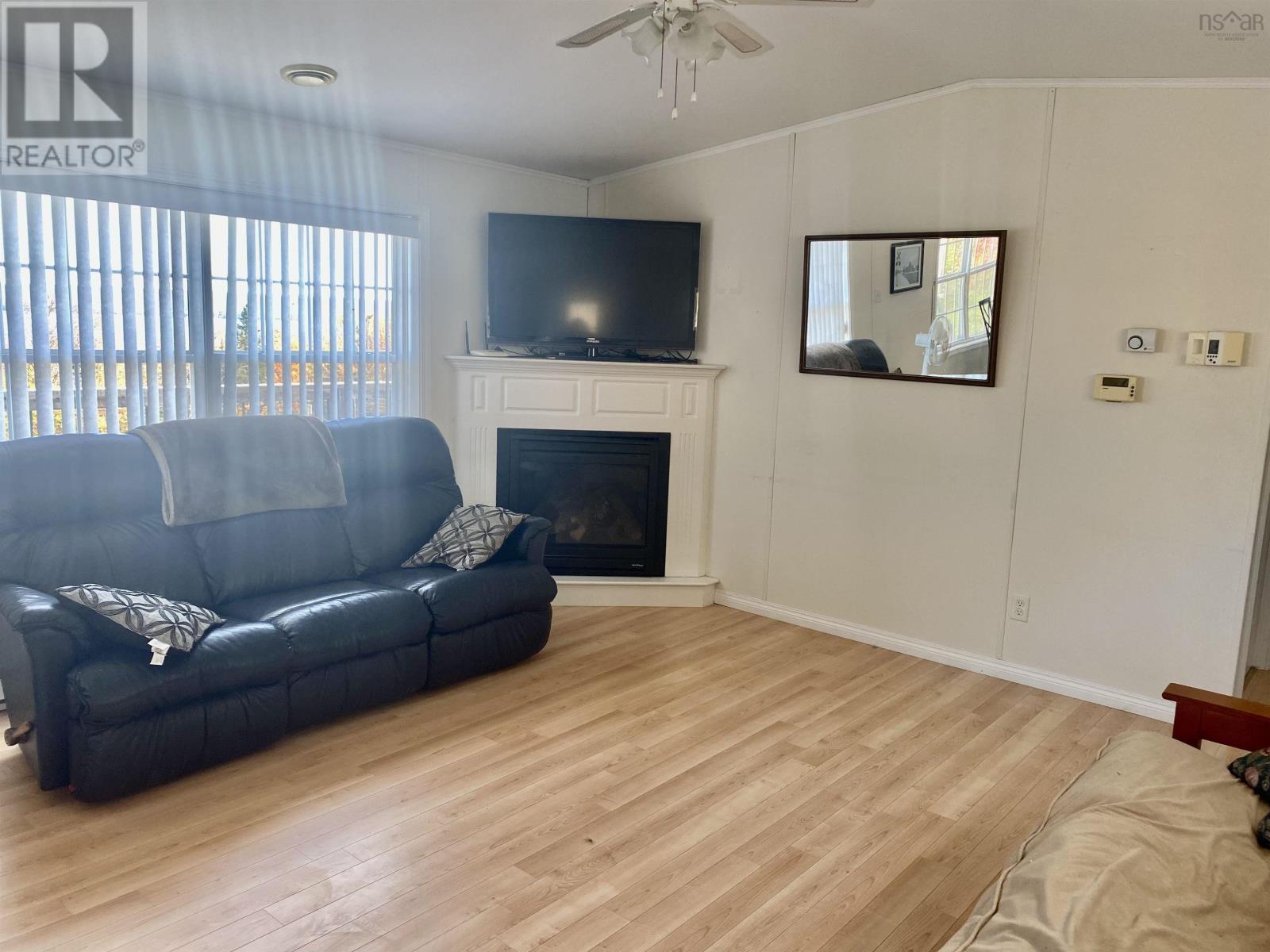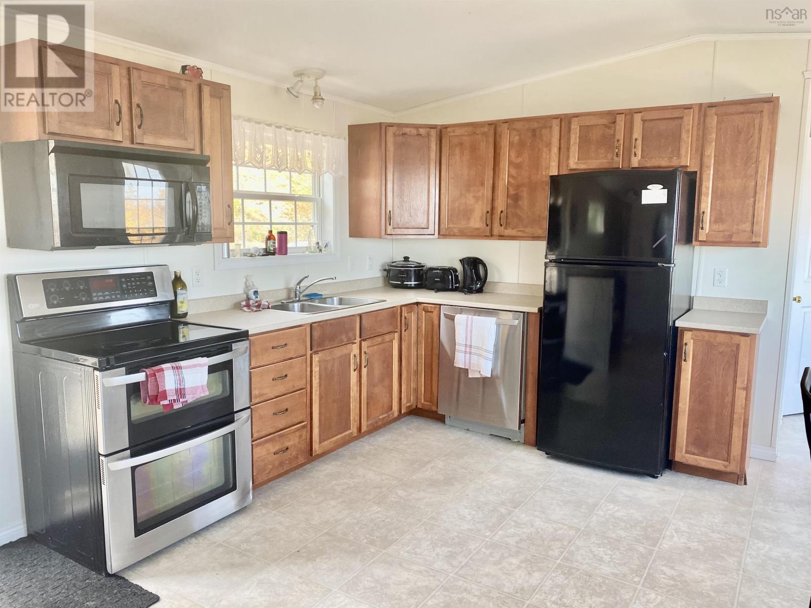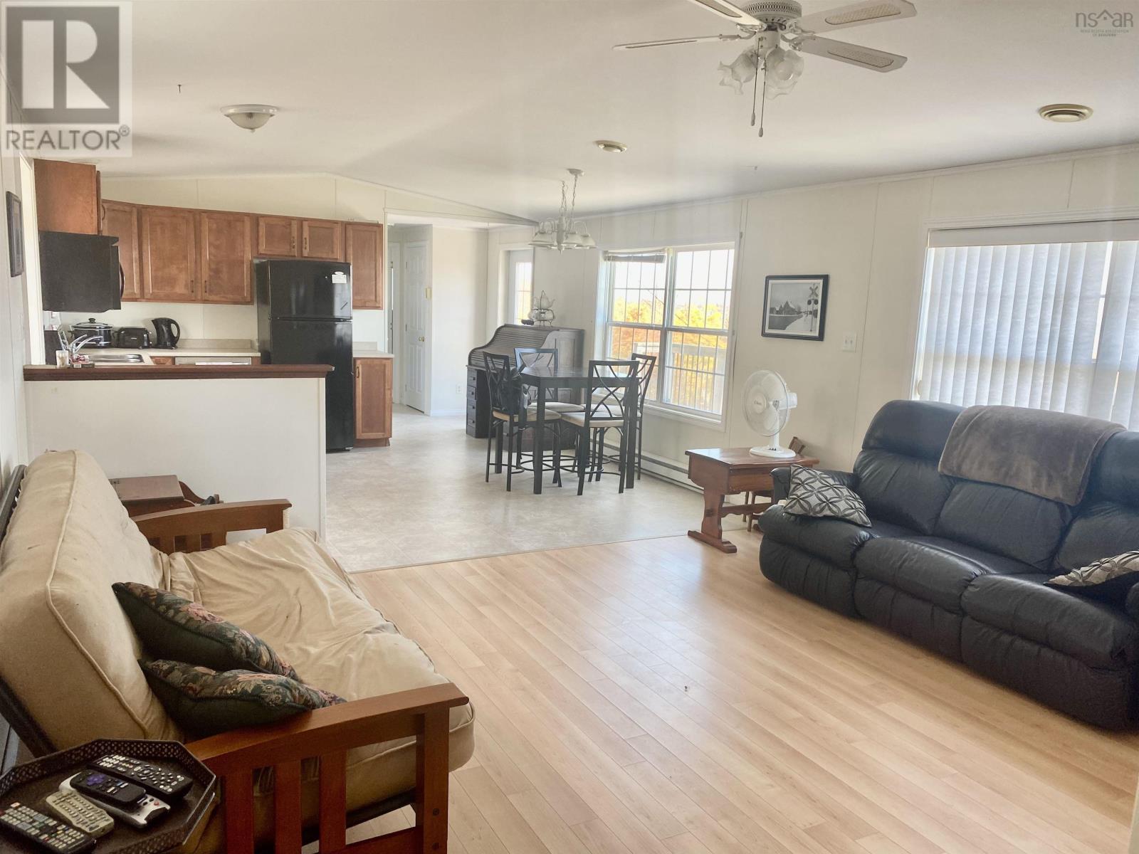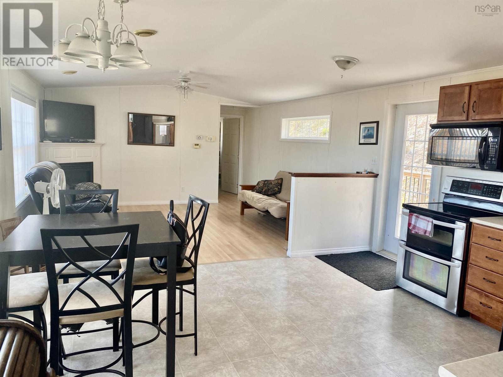 This 2 BDRM, 2 BATH mini home is perched on a hill overlooking the beautiful Bras d'Or Lakes, and sits on 30 Acres of land. This 16x60 Maple Leaf home was built in 2009, and has a large 3/4 wrap around deck built in 2015, along with the 20x17 detached wired garage. 8x8 shed for extra storage. Plenty of parking for several vehicles. The living room has a propane fireplace. Eat in Kitchen comes with fridge, stove, overhead microwave, dishwasher, and amazing water views. There is a bedroom and full bath at one end and the master bedroom and ensuite at the other. Stackable washer and dryer included. Located just five minutes from the Marble Mountain Beach, 15 minutes to the Dundee Resort and Golf Club, and 30 minutes to the town of Port Hawkesbury. (id:49203)