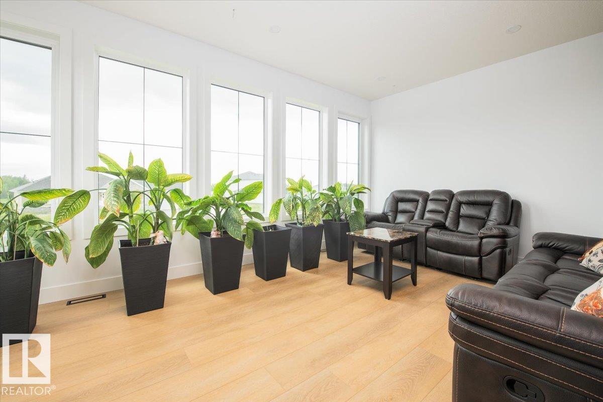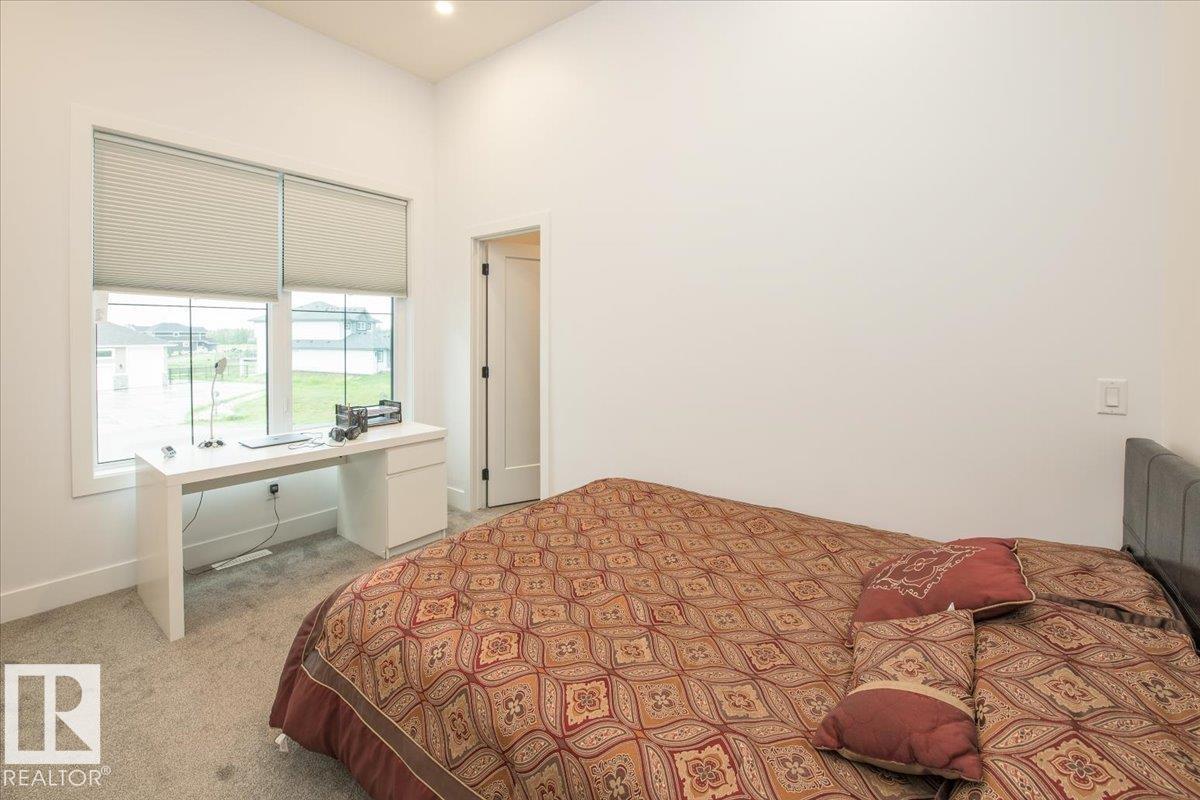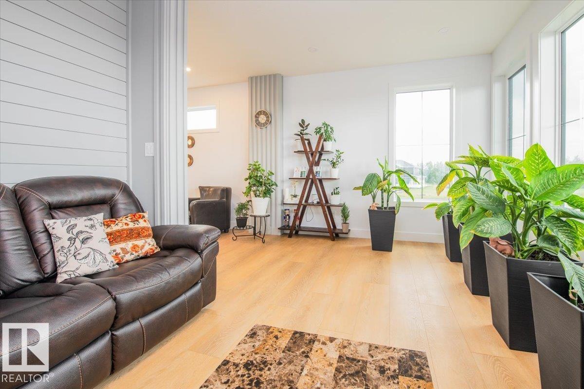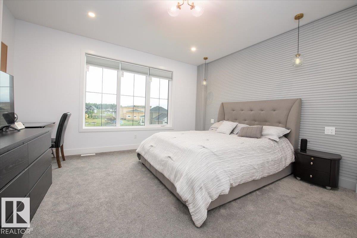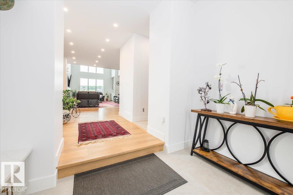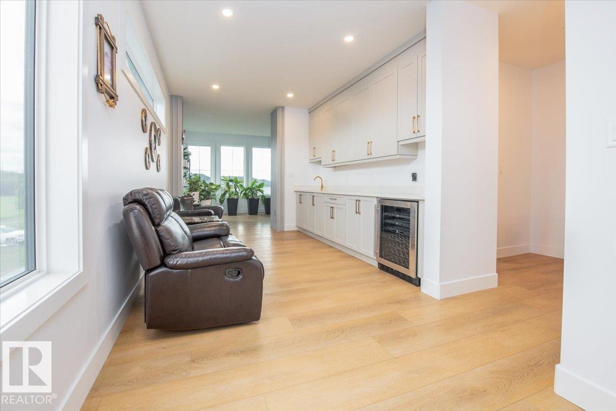 Experience luxury living in this stunning 2023 custom estate, just 15 minutes west of Edmonton in the seek out Spring Meadows Estate. Designed to impress, this 6-bedroom, 4-bath home combines modern elegance with family-friendly comfort. The open-concept main floor boasts soaring 10-ft ceilings, luxury vinyl plank flooring, and a chef’s dream kitchen with gas range, quartz counters, oversized island, and soft-close cabinetry—perfect for both everyday living and entertaining. A main-floor bedroom and full bath add convenience for guests or multigenerational living. Upstairs, the showstopping primary suite offers a spa-like ensuite with soaking tub, dual sinks, and a walk-in closet. A wet bar, flex room, laundry, and two more bedrooms complete the upper level. The fully finished basement features two additional bedrooms, a spacious rec room with wet bar, and another full bath. Enjoy summer evenings on the large deck with gas BBQ hookup. With a triple garage and extra parking, this home checks every box. (id:49203)