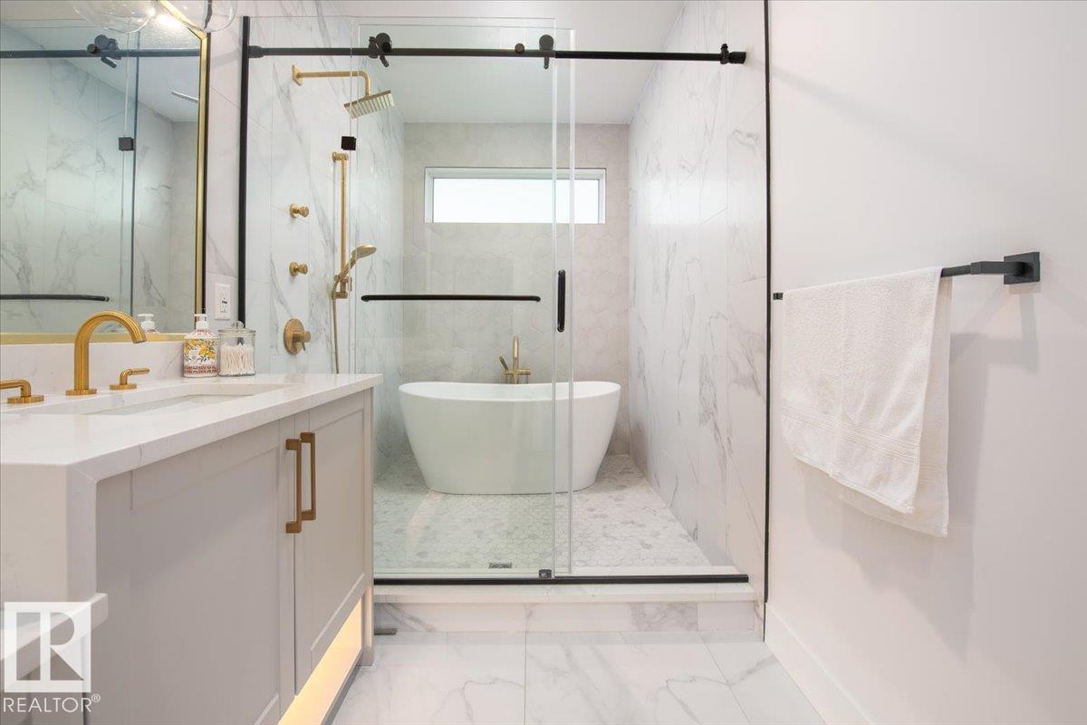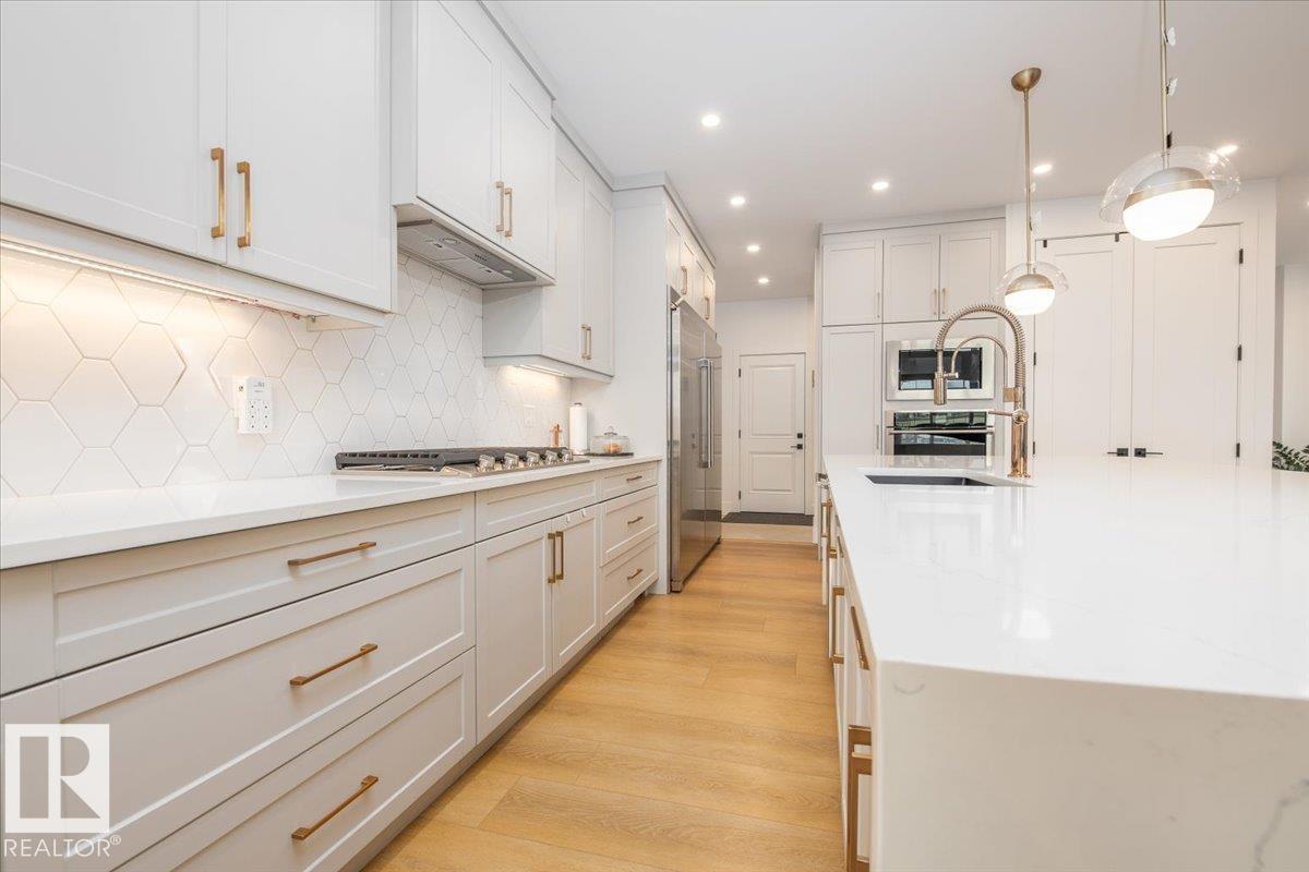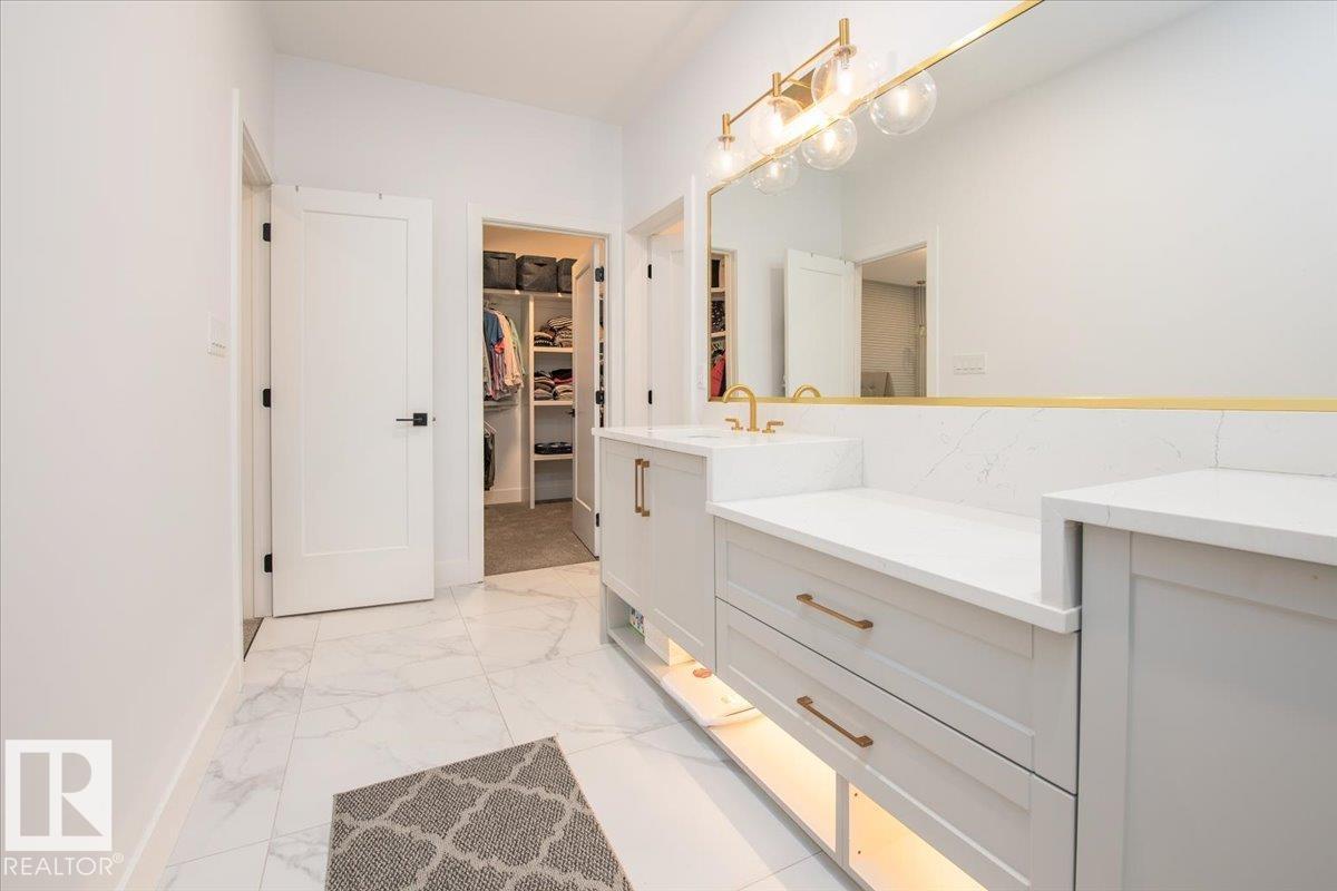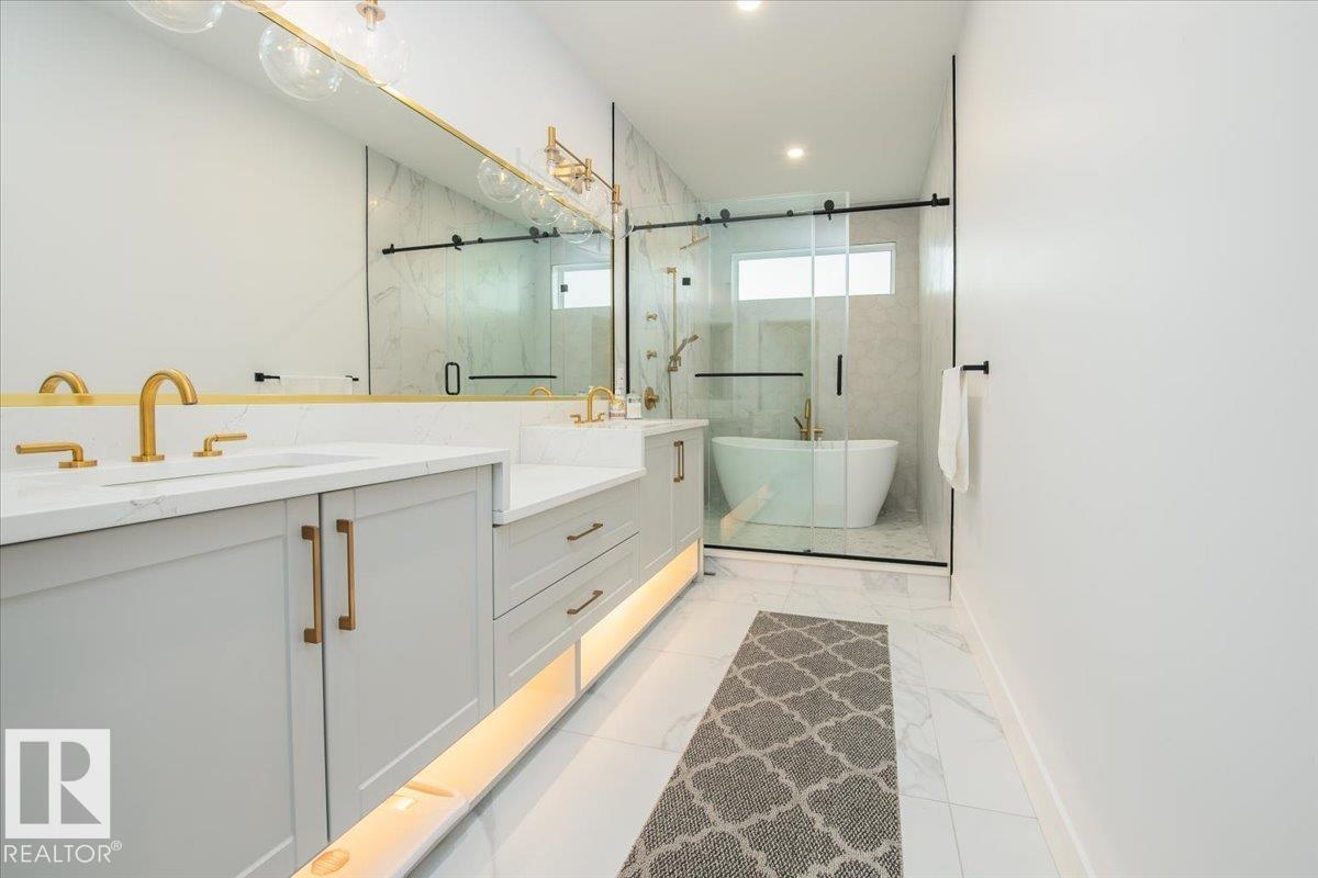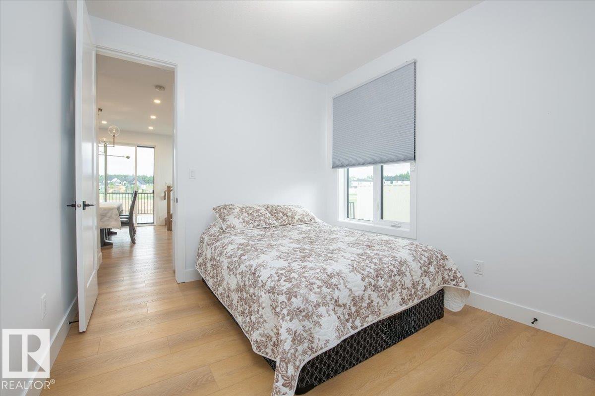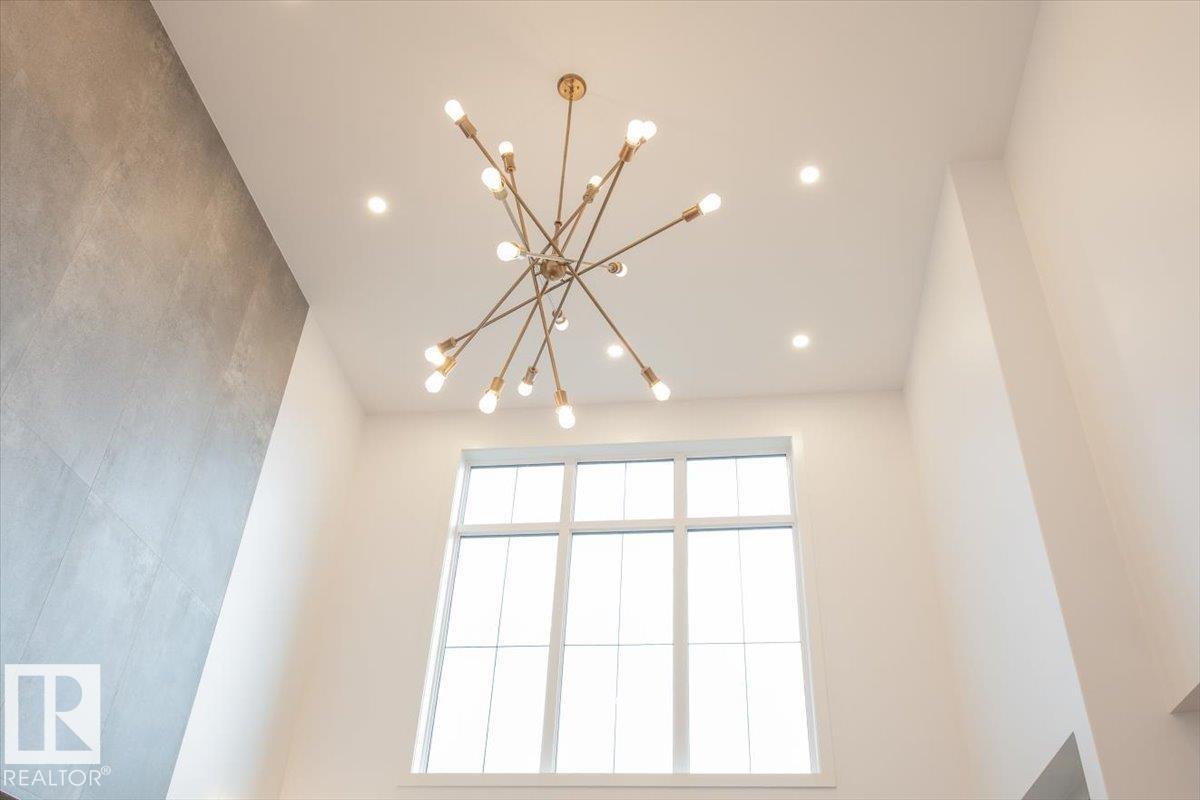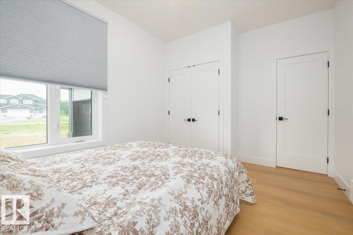 Experience luxury living in this stunning 2023 custom estate, just 15 minutes west of Edmonton in the seek out Spring Meadows Estate. Designed to impress, this 6-bedroom, 4-bath home combines modern elegance with family-friendly comfort. The open-concept main floor boasts soaring 10-ft ceilings, luxury vinyl plank flooring, and a chef’s dream kitchen with gas range, quartz counters, oversized island, and soft-close cabinetry—perfect for both everyday living and entertaining. A main-floor bedroom and full bath add convenience for guests or multigenerational living. Upstairs, the showstopping primary suite offers a spa-like ensuite with soaking tub, dual sinks, and a walk-in closet. A wet bar, flex room, laundry, and two more bedrooms complete the upper level. The fully finished basement features two additional bedrooms, a spacious rec room with wet bar, and another full bath. Enjoy summer evenings on the large deck with gas BBQ hookup. With a triple garage and extra parking, this home checks every box. (id:49203)