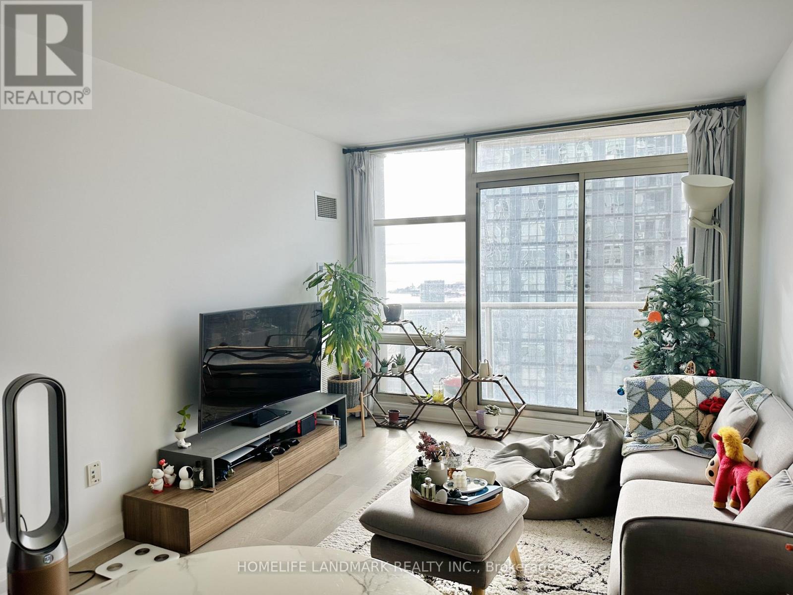 Spectacular High Floor Unit With Beautiful Lake Views, Bright Spacious With An Excellent Layout. 5 Min Walk To Cn Tower, Rogers Centre, Financial District, Entertainment. T.T.C, V.I.A.Rail, G O Train/Bus. Expressway-Highways. 24 Hr. Concierge. 30,000 Sqft Super-Club Amenities/Recreation. No Smokers Or Pets Preferred. Lake / Island View. Lots Of Upgrades(2023):New lighting fixtures .Refinished solid wood kitchen cabinets. New dishwasher. New kitchen island and new water filtration system. Freshly painted walls and ceilings. Solid hardwood flooring. New kitchen and bathroom floor tiles. New bathroom vanities, toilet, and storage cabinets. New washer and dryer. (id:49203)