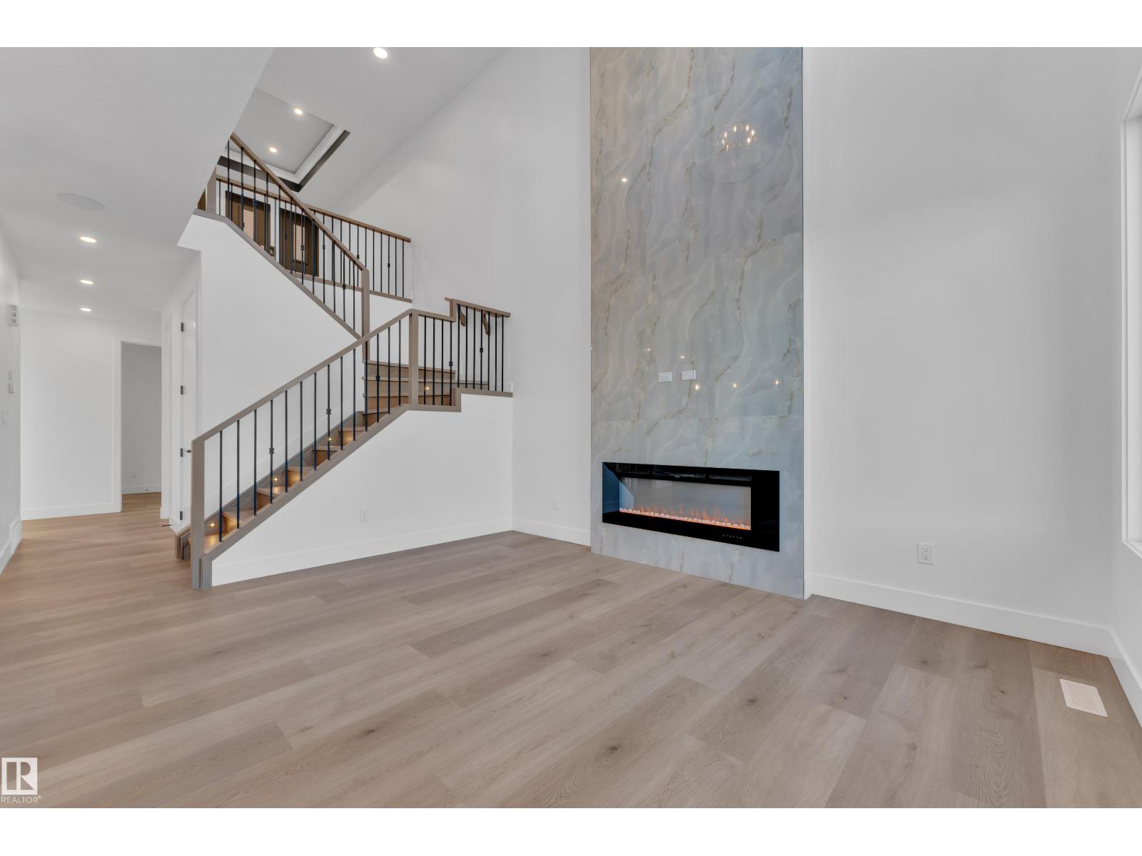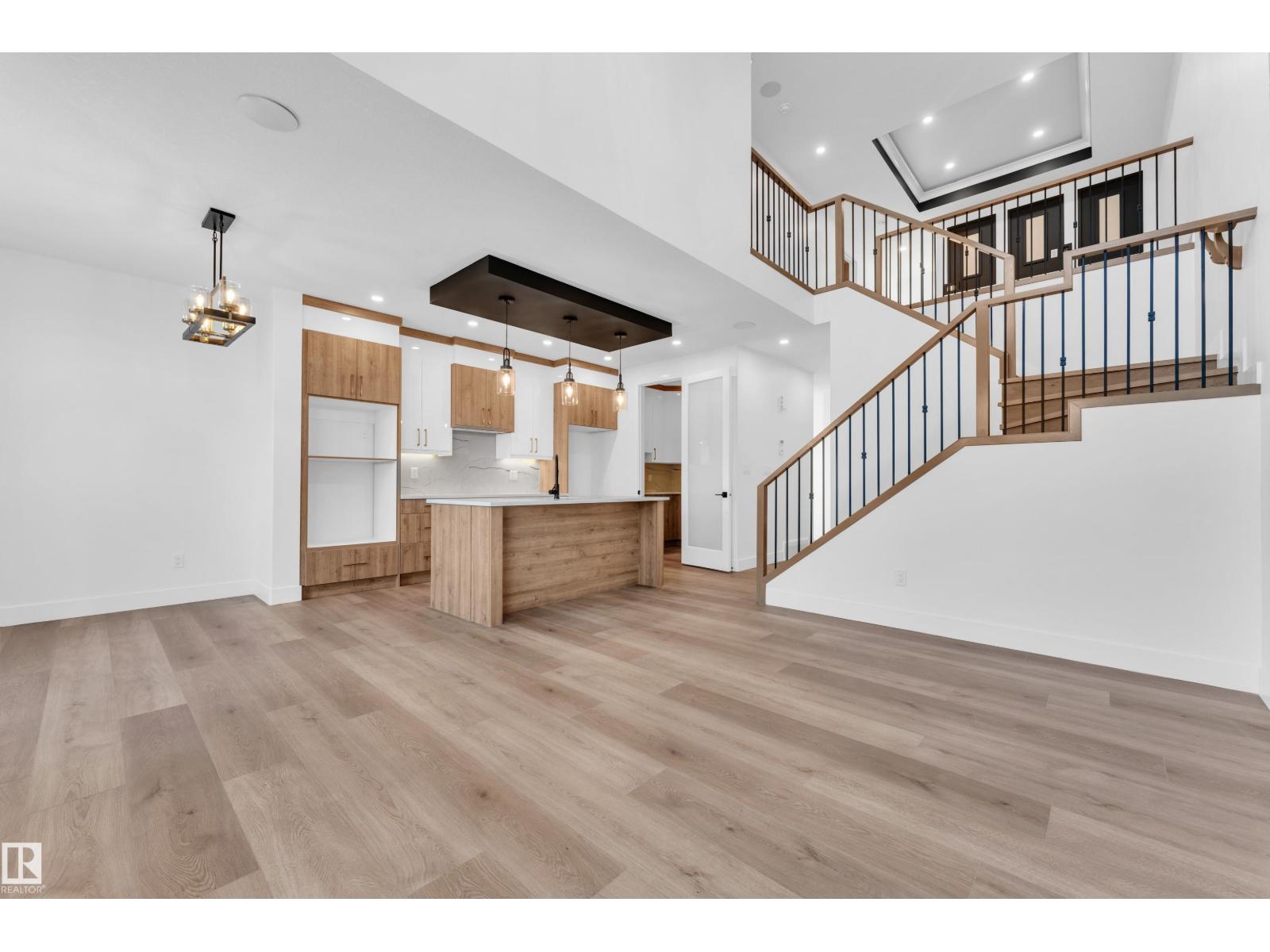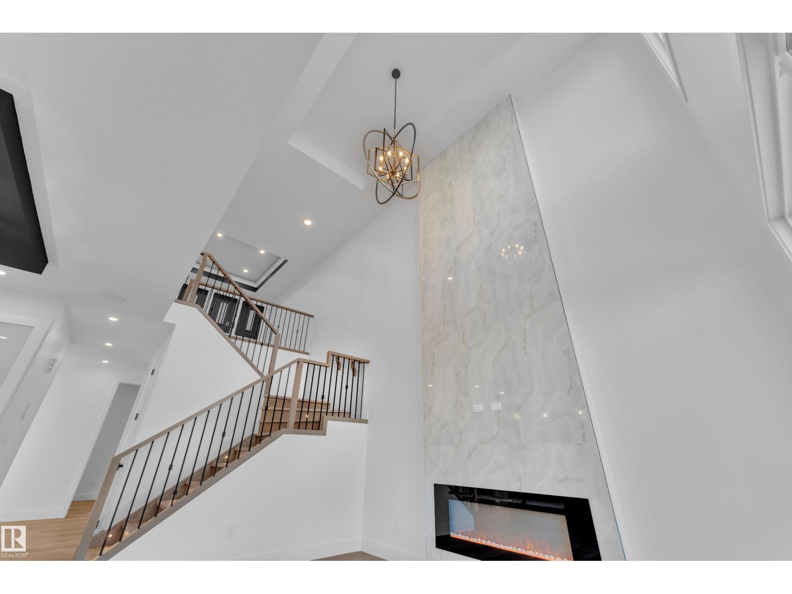 Welcome to this beautifully designed home located in a quiet cul-de-sac in the desirable community of Triomphe, Beaumont, featuring a rare lot with no neighbours at the back, offering exceptional privacy and open views. The home showcases a bright and impressive open-to-above living area that fills the space with natural light. The main floor includes a full bedroom and full bathroom, perfect for guests or extended family, along with a modern kitchen complemented by a spice kitchen for added convenience. Upstairs offers a spacious bonus room, additional well-sized bedrooms, and a luxurious primary suite with a 5-piece ensuite designed for comfort and relaxation. Beautiful feature walls in the living area, bonus room, and primary bedroom add a stylish and elegant touch throughout the home. Located in a family-friendly neighborhood close to parks, schools, and future amenities, this home offers the perfect combination of privacy, modern design, and functional living. (id:49203)