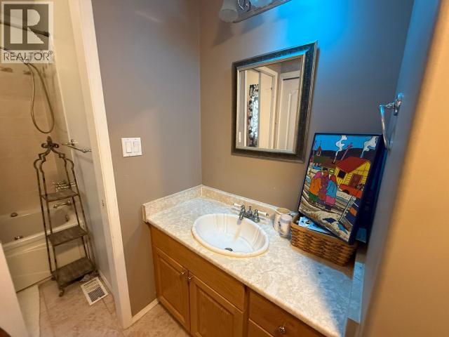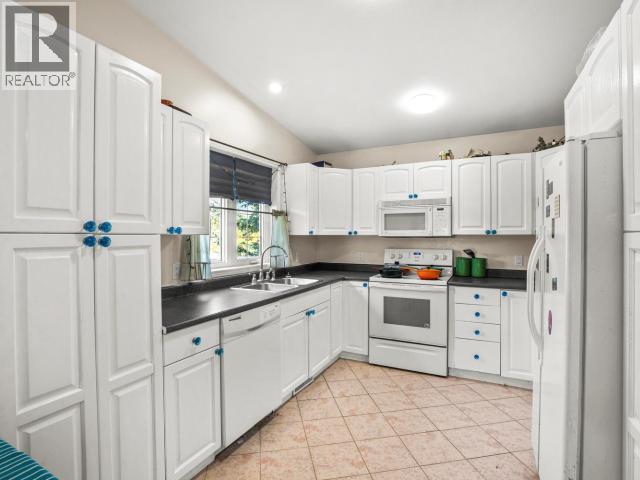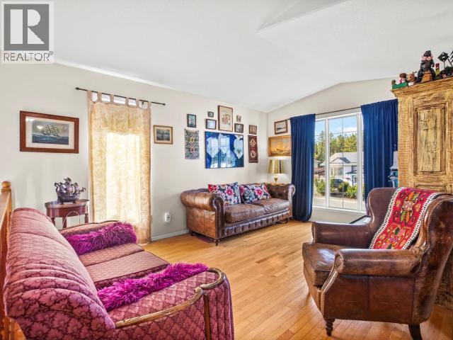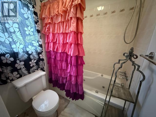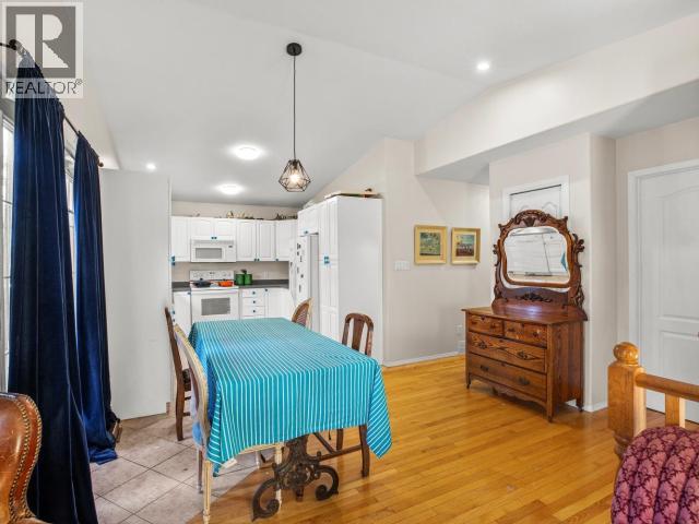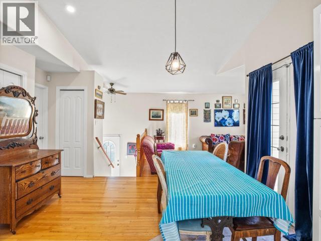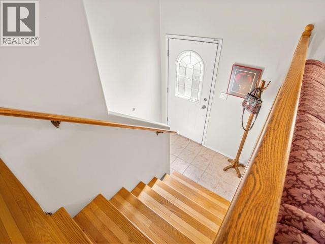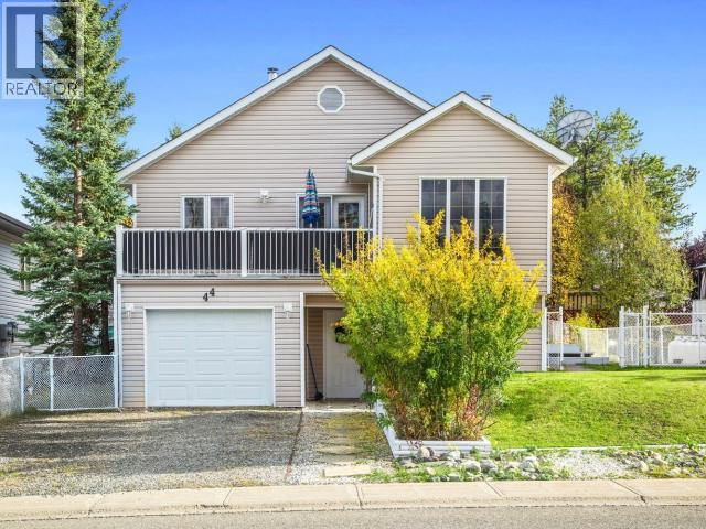 Family home offering 3 bedrooms on upper level and 4th bedroom on the main. Upper level living area with vaulted ceilings and dining area with garden doors to front upper balcony. Kitchen nestled in beside central dining area with white cabinets. Three bedrooms and full bath, ensuite with jacuzzi tub. Main level entry with access to single garage. This level features family room with hardwood flooring and a woodstove nestled in corner sold as is where is. There is a 4th bedroom and room, RI for 3rd bathroom, and laundry/storage are also on this level . Stairs from lower level to upper have a landing with side door that provides access to fully fenced and landscaped yard. (id:49203)