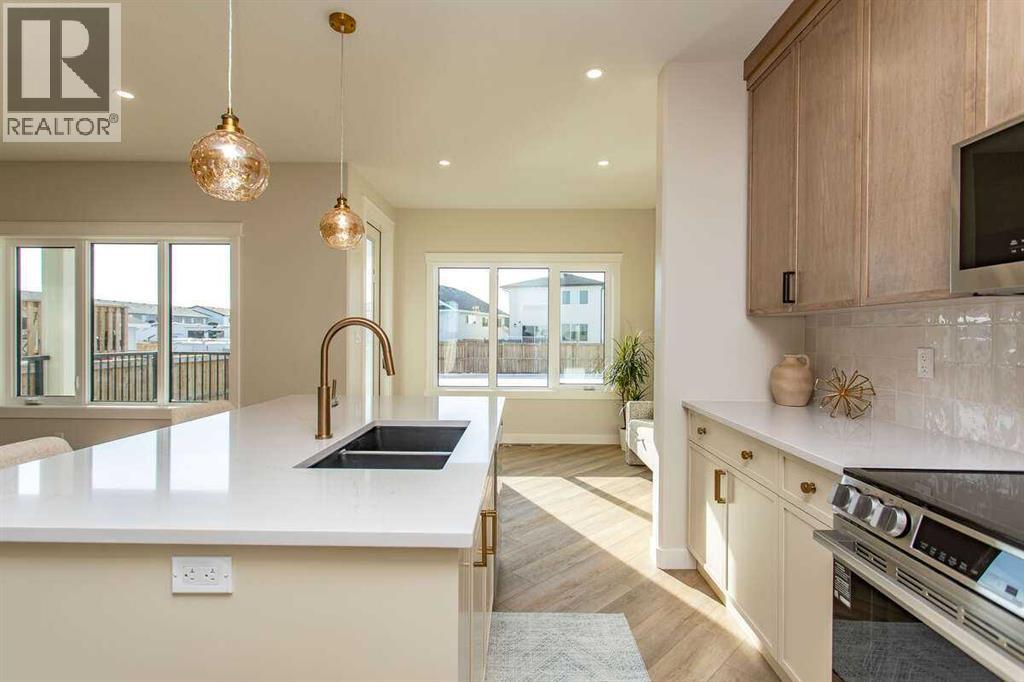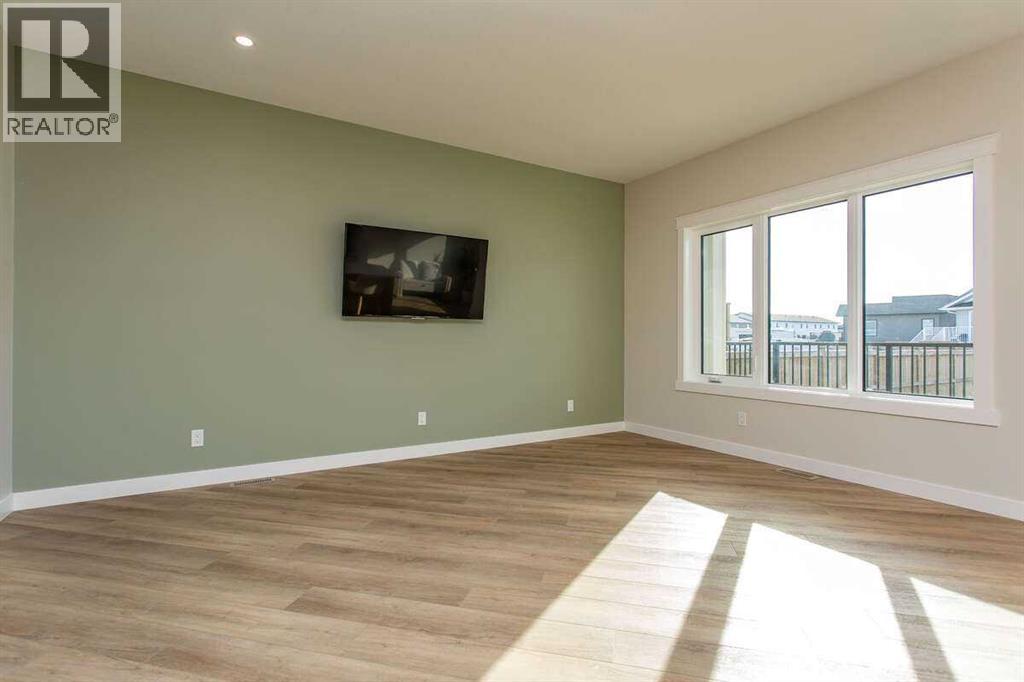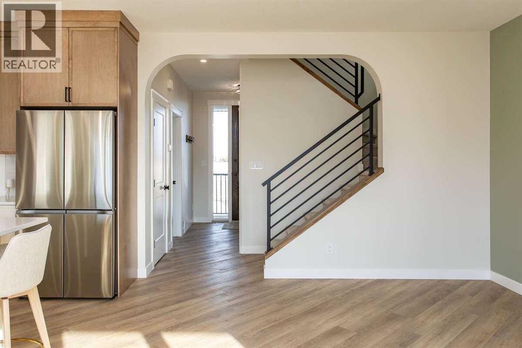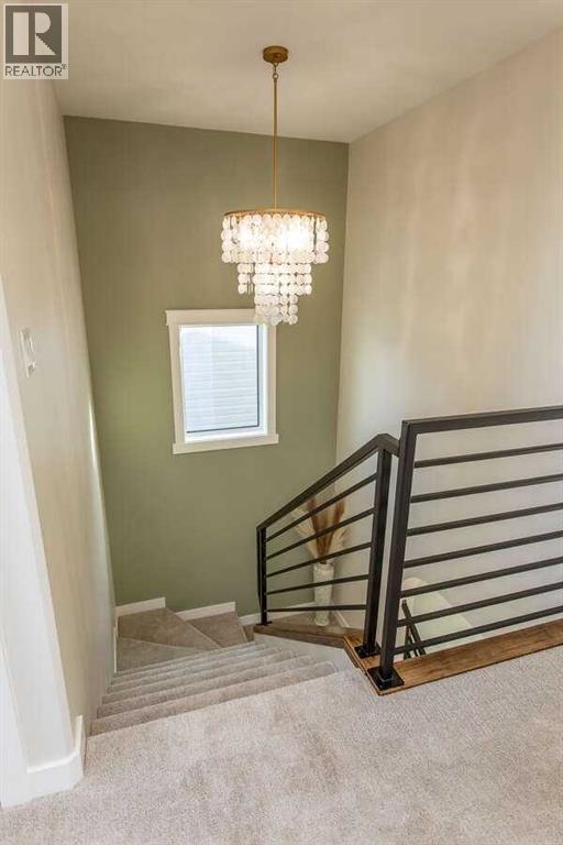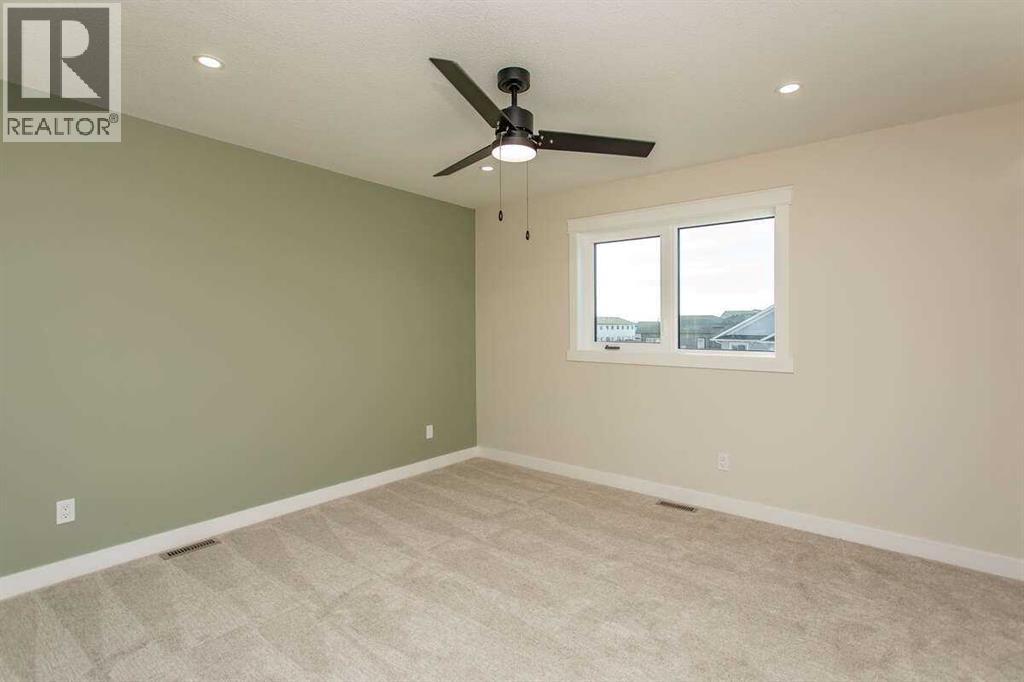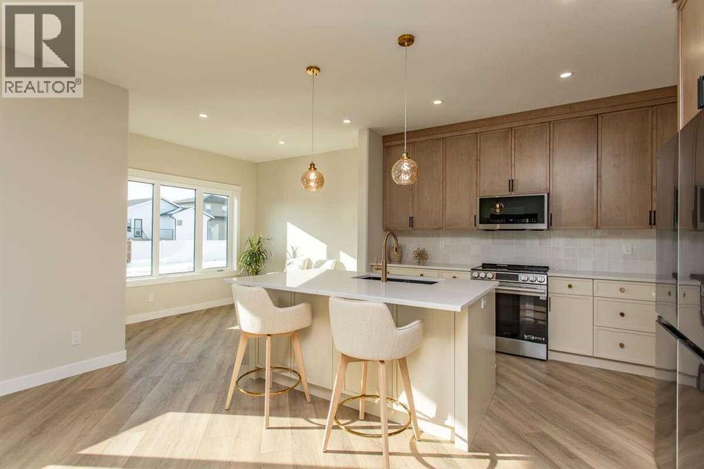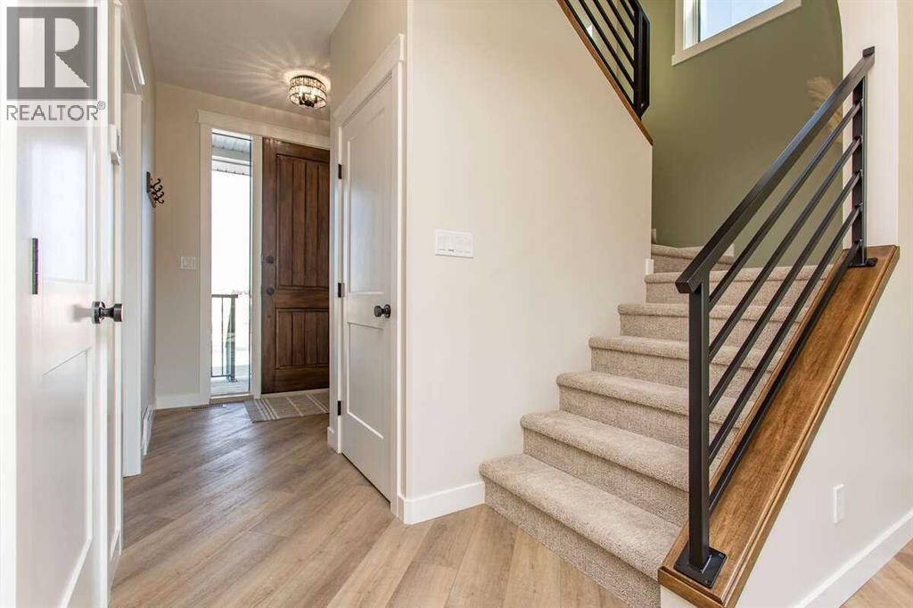For more information, please click the "More Information" button. This custom built 1550 sqft show home by Diamondwood Custom Homes is located in the growing Oxford Landing development of Penhold within walking distance of schools, playgrounds, shopping and the multiplex. A quiet community just 10 minutes from Gasoline Ally and south Red Deer. Positioned with a south facing backyard enjoy a large covered deck with natural gas hook up and plenty of room for a detached garage. Another covered deck at the front of the home overlooks beautiful canola fields to the north. This energy efficient two story home features an upgraded R22 insulation package, Tri pane Lux casement windows with 8' front and rear exterior doors, High efficient Trane 2 stage furnace, HRV, and 50 gal commercial HWT. The open concept main floor kitchen and living room includes a 6' extended depth island with rear storage, walk in pantry and 9' ceilings with a grand arch way. An office/bedroom and a beautiful half bath with tile accent wall finishes off the main floor. A metal rail and bright chandelier lead upstairs to a full laundry room, three large bedrooms with a south facing master and 3 piece ensuite and walk in closet. Diamond Level finishes include Silestone quartz countertops throughout the home, Maple cabinets, upgraded LG appliance package, Delta fixtures and more. The basement is open for future development with electrical and plumbing in place, large egress windows, 9' ceilings, and room for two more bedrooms, a bathroom and recreation area. Property taxes not yet assessed. (id:49203)