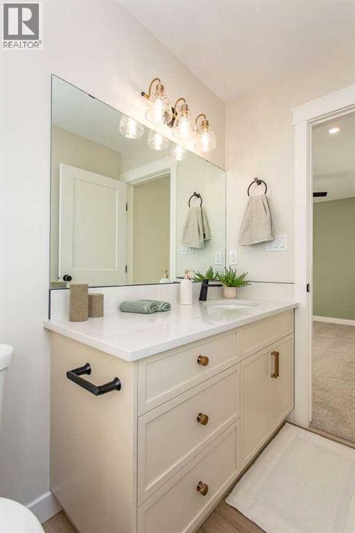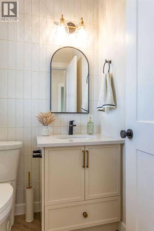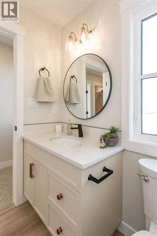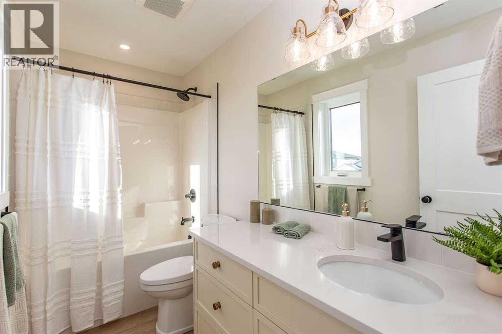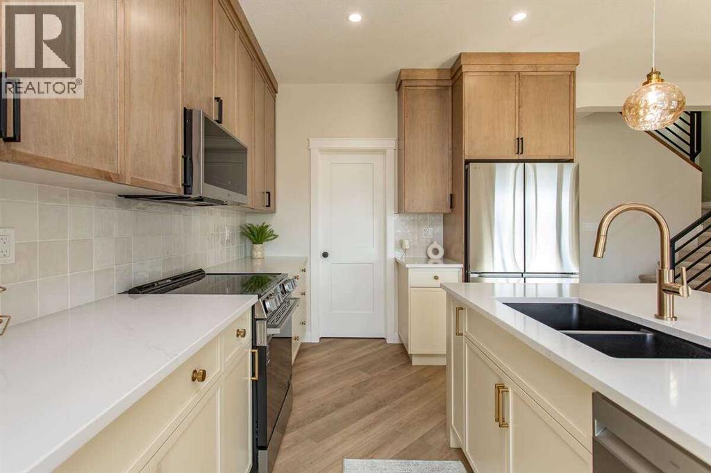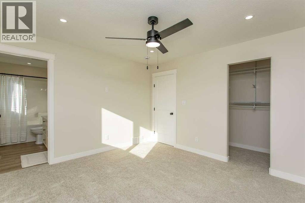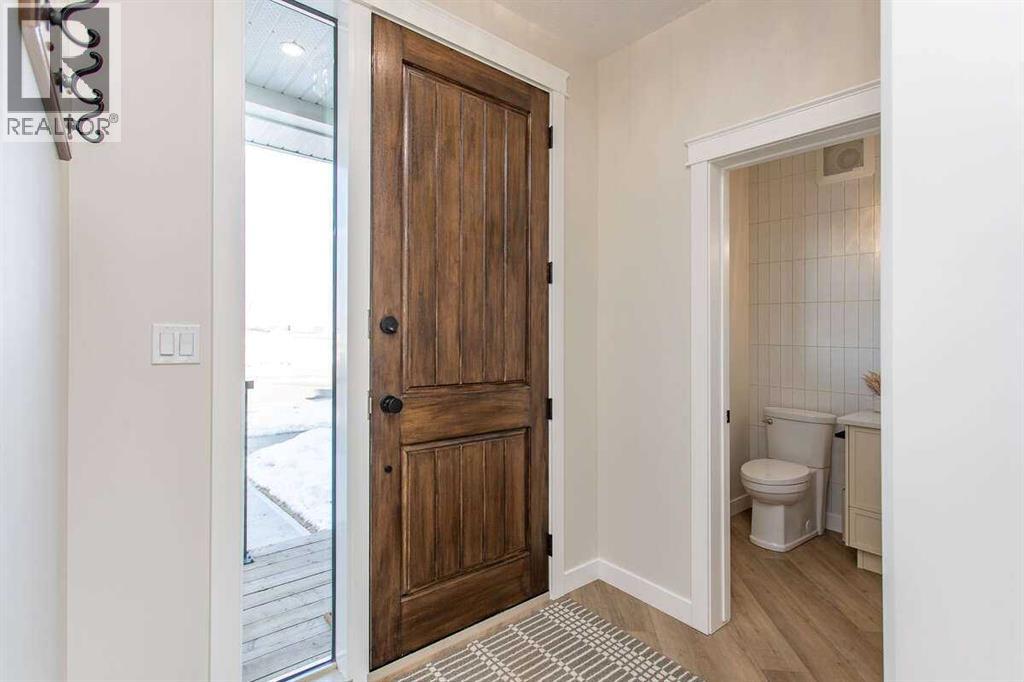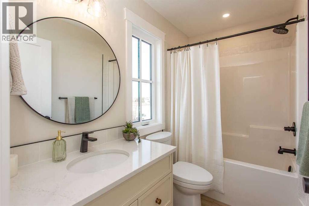 For more information, please click the "More Information" button. This custom built 1550 sqft show home by Diamondwood Custom Homes is located in the growing Oxford Landing development of Penhold within walking distance of schools, playgrounds, shopping and the multiplex. A quiet community just 10 minutes from Gasoline Ally and south Red Deer. Positioned with a south facing backyard enjoy a large covered deck with natural gas hook up and plenty of room for a detached garage. Another covered deck at the front of the home overlooks beautiful canola fields to the north. This energy efficient two story home features an upgraded R22 insulation package, Tri pane Lux casement windows with 8' front and rear exterior doors, High efficient Trane 2 stage furnace, HRV, and 50 gal commercial HWT. The open concept main floor kitchen and living room includes a 6' extended depth island with rear storage, walk in pantry and 9' ceilings with a grand arch way. An office/bedroom and a beautiful half bath with tile accent wall finishes off the main floor. A metal rail and bright chandelier lead upstairs to a full laundry room, three large bedrooms with a south facing master and 3 piece ensuite and walk in closet. Diamond Level finishes include Silestone quartz countertops throughout the home, Maple cabinets, upgraded LG appliance package, Delta fixtures and more. The basement is open for future development with electrical and plumbing in place, large egress windows, 9' ceilings, and room for two more bedrooms, a bathroom and recreation area. Property taxes not yet assessed. (id:49203)