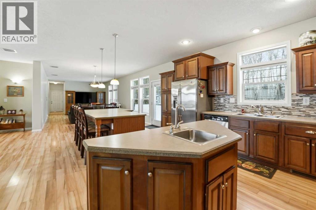 This beautifully maintained RTM home offers a thoughtful layout and all the features today’s buyers crave. The stunning kitchen is a true standout, boasting endless cabinetry, a gas range, a prep island, and a spacious dine-at island—perfect for everything from casual mornings to hosting friends. Open sightlines lead seamlessly into the sitting area, where large, sun-filled windows create a bright and inviting entertaining space, complemented by a cozy wood-burning fireplace that sets the perfect ambiance. The generous family room is ideal for movie nights, game days, or simply unwinding. Just off this space, you’ll find a large guest bathroom, two well-sized bedrooms, and a laundry room with exceptional storage and workspace. Privately positioned across the home, the primary suite is a serene retreat flooded with natural light. The dream ensuite features a massive soaking tub as its centerpiece, dual sinks, a stand-up shower, and his-and-hers walk-in closets—designed with both comfort and functionality in mind. Outside, enjoy two expansive decks—one north-facing and one south-facing—overlooking a nicely graded and landscaped yard. An oversized garage awaits your finishing touches, offering endless potential. Ideally located just minutes from Pigeon Lake, spontaneous beach days are effortless, while not one but two nearby golf courses invite you to enjoy sunny afternoons on the links. (id:49203)
