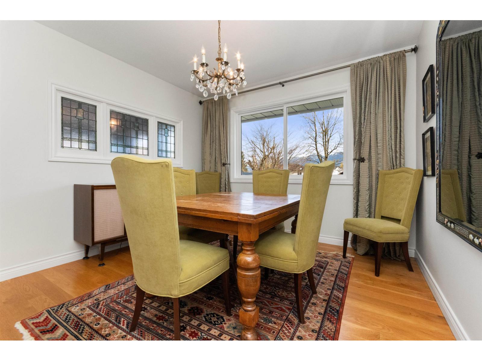 Gorgeous, meticulously maintained home w/ a 2-bedroom SUITE in one of Sardis most sought after locations on a rare 10,000 sq ft lot. This bright and spacious home offers a fantastic layout with large windows throughout, filling the space with natural light. Upstairs features 3 bedrooms including a generous primary w/ ensuite and freestanding tub, plus 3/4" white oak hardwood throughout. Open kitchen flows to the patio with stunning Mt Cheam views, separate dining, and inviting living area. Downstairs offers a modern 2-bedroom suite with open concept living. Updates include A/C & furnace (2018), windows (2012), and newer appliances. Enjoy a spectacular 1/4 acre lot perfect for the family or garden lovers with a 12 * 10 DETACHED SHED / OFFICE, plus room for a shop and RV parking. * PREC - Personal Real Estate Corporation (id:49203)