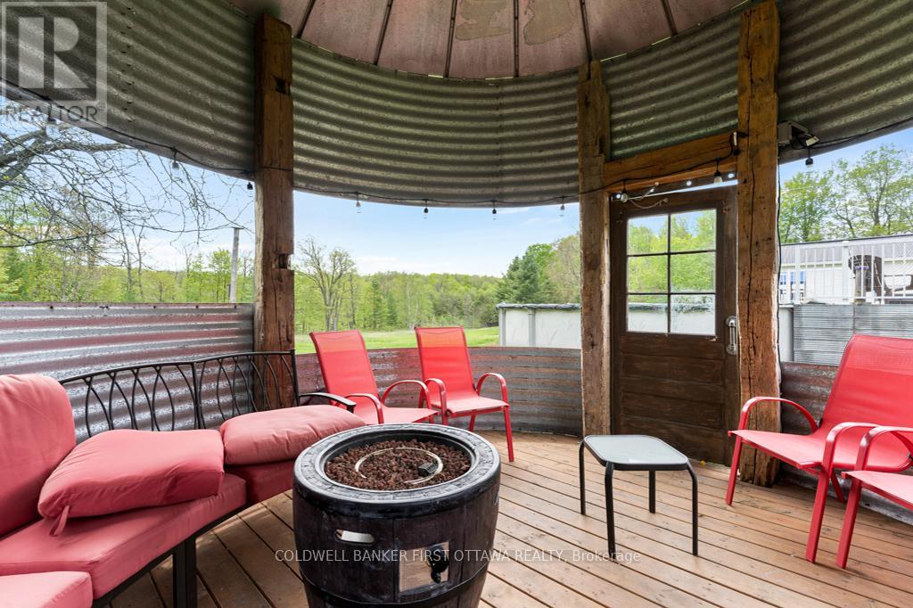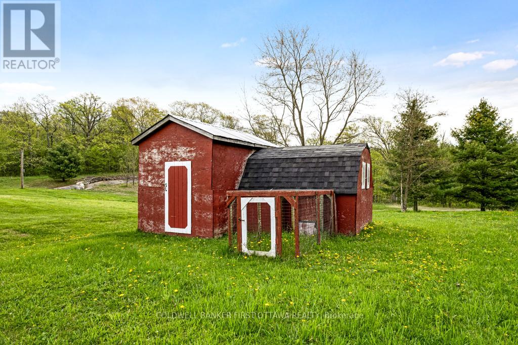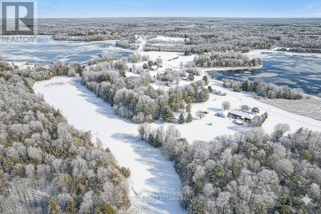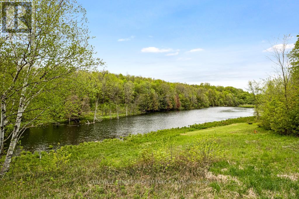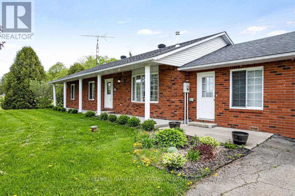 Attractive, curb-appeal, brick bungalow with attached single garage plus, detached garage-workshop. Picturesque setting for the 4+1 bedroom, 2.5 bathroom home on 3.5 acres that backs on quiet river for kayaking and canoeing. Inside, you have light-filled living spaces with pleasing décor and hardwood flooring. Welcoming front foyer offers big double closet and room for sitting bench. Comfortable living room has cast-iron Harman pellet stove on slate hearth and big bay window that allows natural light to flow throughout. Dining room open to living room and kitchen with patio doors to extra-large deck for outdoor living. White bright kitchen features coffee nook, built-in comer cabinet and display cabinetry. Laundry room has 2022 washer, 2022 dryer and convenient storage cupboards. Sunny primary bedroom includes two walk-in closets. Two other good-sized bedrooms that also have walk-in closets. Main 5-pc bathroom has two-sink vanity and large shower with seat. Added bonus is room with attached powder room and an outside door, for another bedroom - or possible office and studio. Lower level updated in 2022, including family room with pellet stove, rec room, fourth bedroom, two flex rooms and 4-pc bathroom plus lots of storage space. Attached garage has two entries, one on main floor and one on lower level. Detached insulated garage-workshop has 100 amps. Backyard ideal for staycations with covered tiered deck, 2023 Jacuzzi hot tub and 24 ft above-ground pool. Plus, unique silo gazebo for quiet relaxation or fun get-togethers with friends. You also have chicken coop, garden shed and room to garden or play. Then, there's the river for kayaking; kayak and canoe are included. Auto connected 2020 Generac. Hi-speed and cell service. On paved township maintained road. Just two minutes to Bellamy Lake and its boat launch. 20 mins to Brockville or 15 mins to Smiths Falls (id:49203)