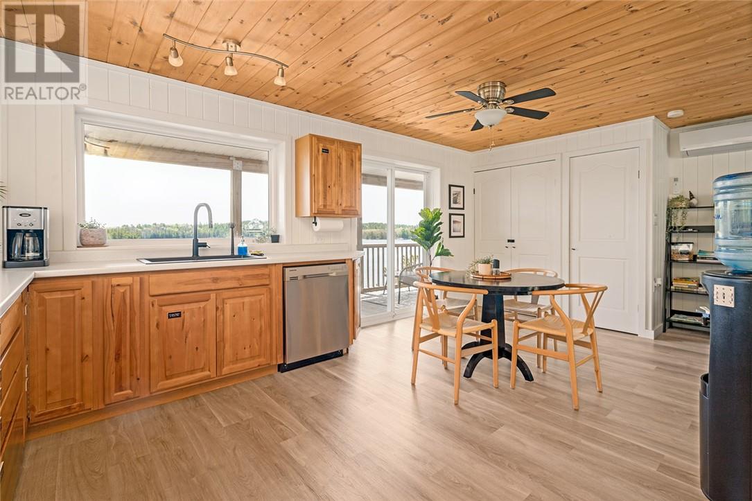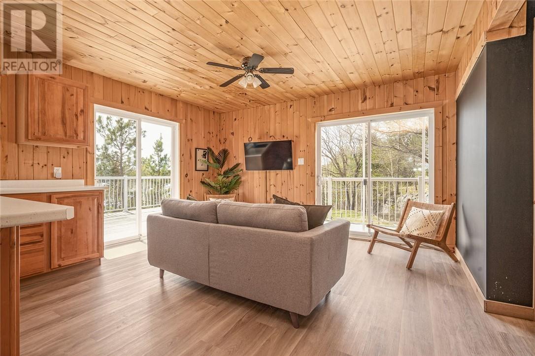 Welcome to the tranquil sanctuary of 475 Waterfalls Rd, where luxury meets nature on just under 4 acres of private waterfront property. This unique TURNKEY home blends a cozy year-round main house with a spacious loft unit above the garage, all set against the mesmerizing backdrop of a semi-private lake. The main house, a 1,056 sq.ft. year-round retreat featuring an open-concept kitchen/living area seamlessly connected to a beautifully elevated deck. Discover 2 bedrooms and a den, currently utilized as a bedroom, along with a delightful 3-season enclosed porch accessible via the lower-level walkout. The large yard includes a fenced area, ideal for children and pets to roam freely. Above the double-car garage lies a 900 sq.ft. loft unit, currently enjoying 3 seasons but with the potential for year-round living by updating the heat trace to the septic. This unit offers 2 bedrooms, an open-concept layout, and a fantastic deck for relaxation and entertainment. Embrace the private waterfront setting, with no other homes across the lake, providing unparalleled peace and tranquility. Indulge in outdoor activities year-round, from fishing for Pike, Pickerel, and Bass in the lake to exploring nearby Ontario Federation of Snowmobile Clubs trails. Please note, while the property offers breathtaking views, there are several steps leading down to the lake. Additionally, a long driveway ensures easy access even during snowy winter months. Recent updates and renovations both outside and within the main house and loft over the past two years enhance the property's appeal and functionality Bookings are filling up for Summer 2025 if new owners wish to continue. Don't miss the opportunity to experience the magic of waterfront living. Schedule your viewing today! (id:49203)