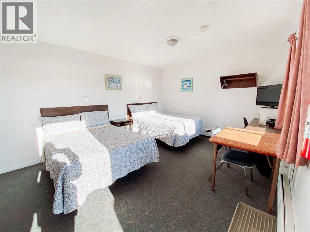 MOTEL 49; Turn-key business with reputation for clean comfortable rooms. Great Highway 49 frontage. 2.79 acres with 43 room motel in Spirit River. Currently owner-operated. All rooms include a microwave and mini-fridge. Kitchenettes have fridge, stove, microwave. All furniture, linens (2022) and appliances are included. Room structure includes Single bedrooms, Single bedrooms w/kitchenette, Double/Queen suite, Double/Queen suite w/kitchenette. Building A has living quarters (3 bedroom 2 bathroom), the office and rooms, built in 1968. Building A had a new sewer pipe installed in Aug 2023. Building B was added in 1978 and building C is a two-story building added in 2000, with new concrete at front and electrical plug-ins for vehicles. The yard is mostly paved and has TONS of parking for commercial vehicles and equipment. Bobcat w/snow bucket, blade and sweeper is included; snow clearing is a breeze. Buildings are heated via radiant heat from HWT/boiler system; efficient. Building B and C also have A/C. Building C has metal roofing, in-floor heat and new boiler installed 2023. Commercial laundry on site for staff use. Coin laundry (coin use de-activated) for guests. Great investment property with good return and potential. Servicing commercial guests for the surrounding areas, supplemented by recreational guests such as hunters, and travellers to the Alaska Highway. Call to book your private viewing today! (id:49203)