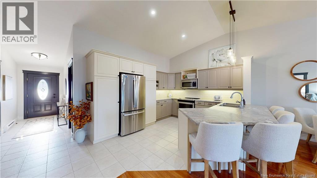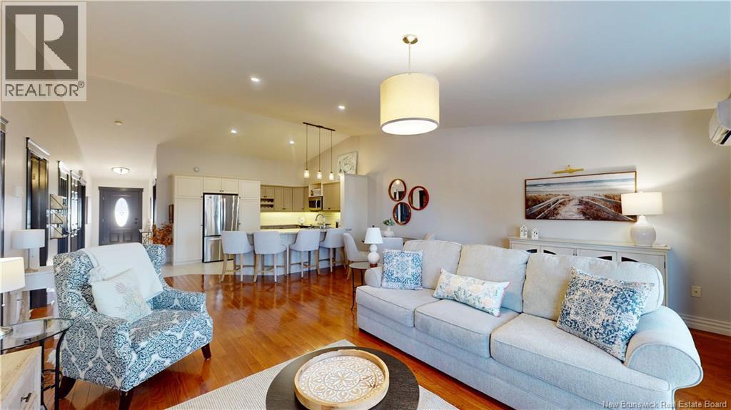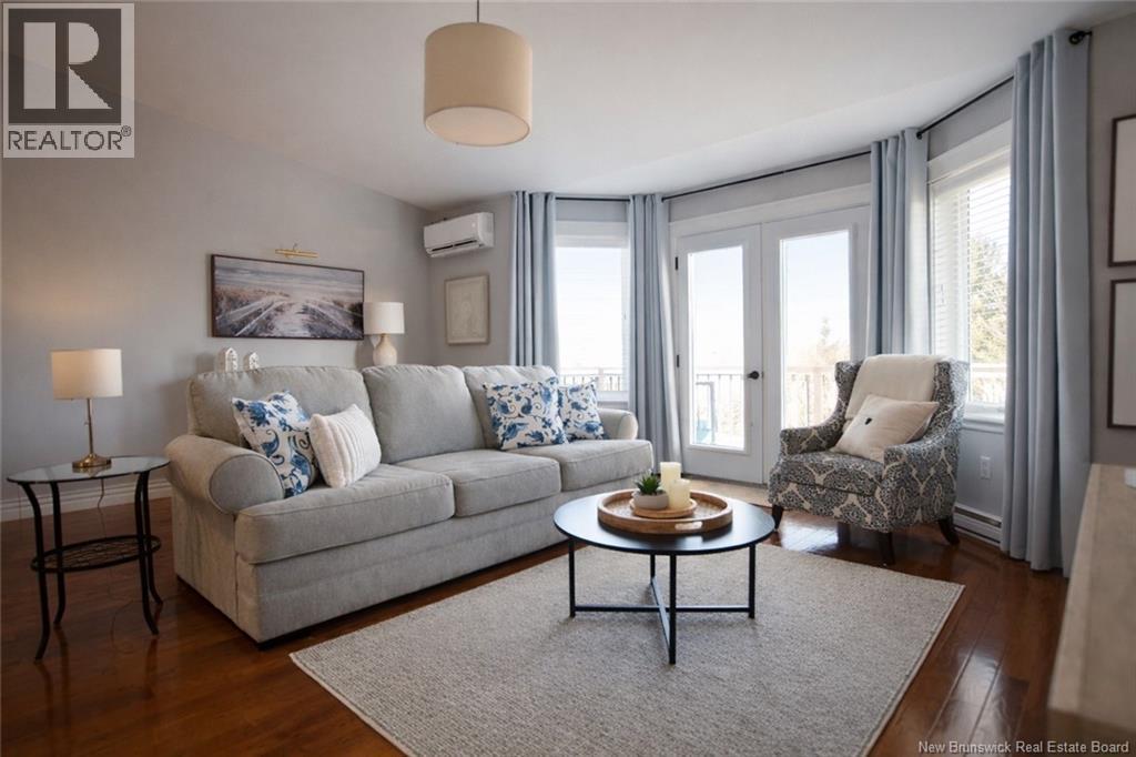 Upgrades! Upgrades! Upgrades! Welcome to low-maintenance living with beautiful water views of the Kennebecasis River and sunsets that truly steal the show. This thoughtfully updated Merritt Hill garden home blends comfort, style, and simplicity in all the right ways. Inside, youll find fresh paint throughout, new countertops, and newly carpeted stairs that give the home a crisp, refreshed feel. The kitchen is both functional and stylish with updates, complete with a new stainless steel fridge and dishwasher, while a new washer adds everyday convenience. A brand new additional heat pump in the basement keeps things comfortable year-round. The open concept main level is bright and welcoming, perfect for hosting or relaxing while the walk-out lower level offers a cozy family room for quiet evenings in. With 2/1 bedrooms, 2 full baths, and an attached garage. Step out onto the balcony to enjoy peaceful water views and watch the ferry pass by. At 49 Merritt Hill, maintenance fees of just $125/month cover lawn mowing and snow removal, giving you the easy lifestyle youve been looking for. (id:49203)