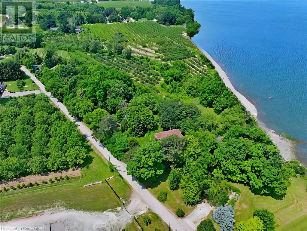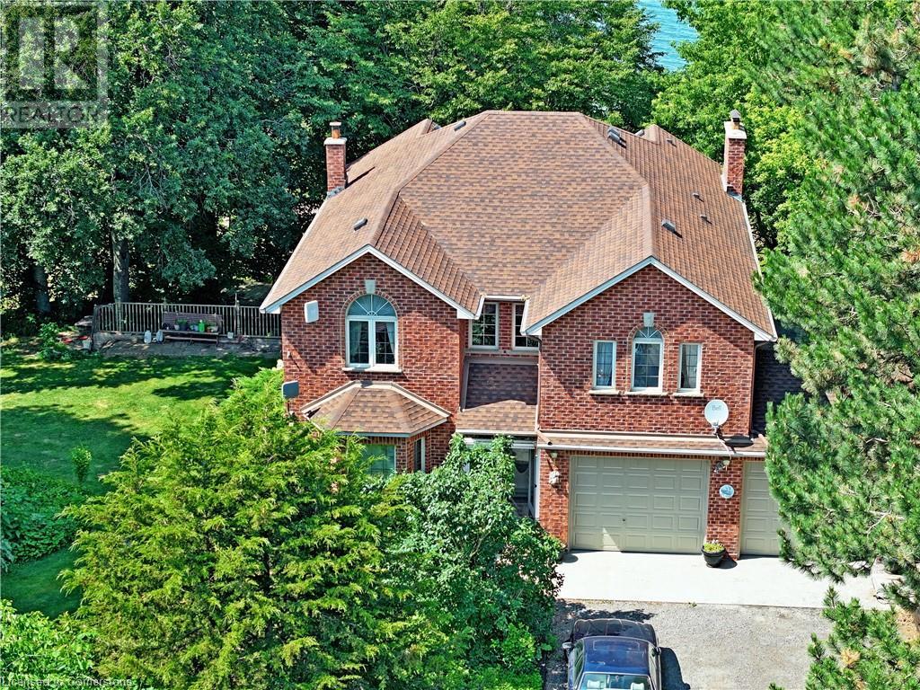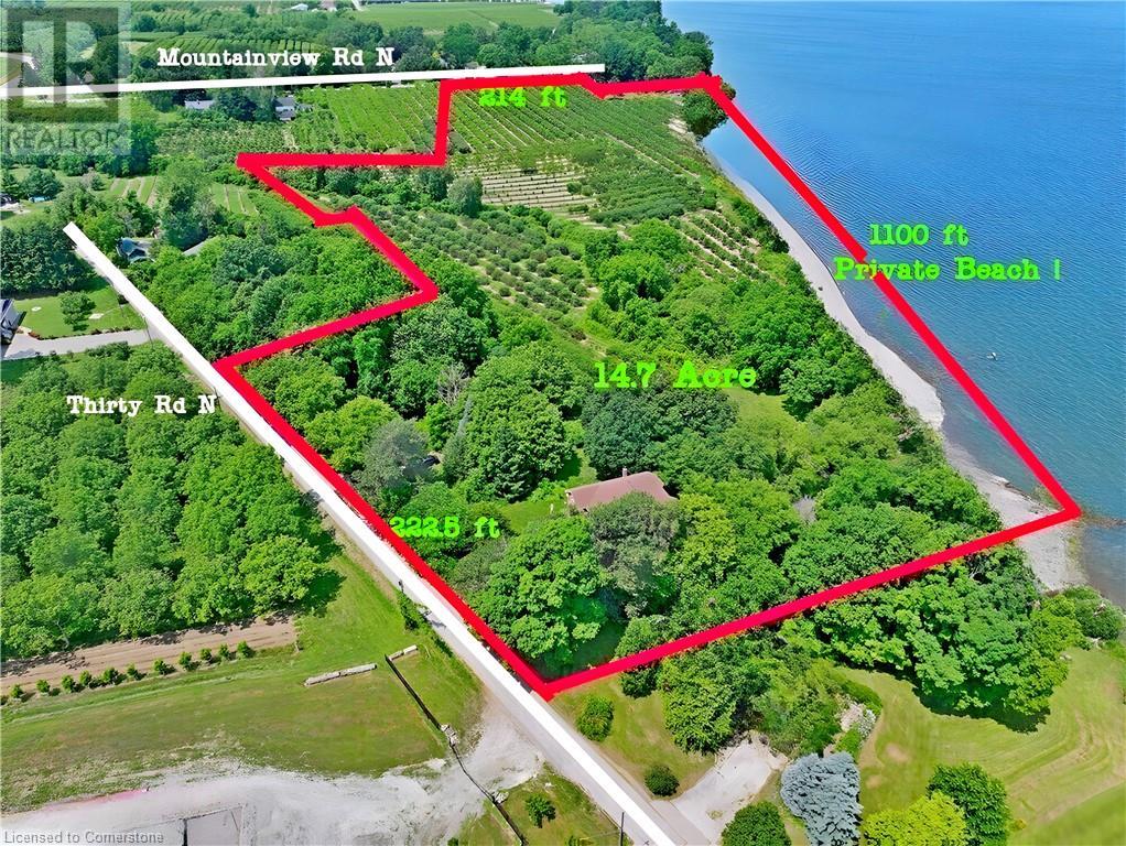 Possibly the most desirable Lake Ontario waterfront property from the GTA to the Niagara Region! This secluded 14.59-acre paradise is perfect for investors or those seeking a private lakefront retreat. Located on two quiet, scenic dead-end lakefront roads, the property offers over 200 ft of frontage on both Mountainview Rd and Thirty Rd N. Just minutes to the QEW, nearby towns, the future GO Station for high-speed rail connecting the GTA and Niagara Falls. and approximately 30–50 minutes to Hamilton, the GTA, Niagara Falls, and the U.S. border. Surrounded by rapidly growing developments along the QEW, the land’s value is expected to increase significantly in the coming years. A private winding driveway leads to a well-built custom 2-storey villa (1989, original owner), set among mature pines and hardwoods. The home features 2,922 sq ft above grade plus a 1,393 sq ft walk-out lower-level in-law suite with lake views. A rustic boardwalk leads to your own untouched 1,100+ ft beach. Inside, you'll find spacious principal rooms with hardwood flooring, solid oak cabinetry, trim, and staircase. The upper level includes 4 bedrooms—primary with 5-pc ensuite, and a guest suite with a 3-pc ensuite. Additional features: • Two 6,000-gallon cisterns • Inspected septic system • 200-amp service • Quality windows, brick exterior • Roof (2020), Furnace (2021), A/C (2019), Central vac Bonus: Vendor indicates a potential severance of a 1.5-acre homesite from an unopened road allowance (buyer to verify), with approx. 13 acres remaining for a second residence. Most of the land is planted with fruit trees, maintained by a neighboring farmer. No reported income (likely HST exempt). Vendor Take Back mortgage (VTB) available. Endless possibilities: Ideal for a luxury estate, B&B, wedding venue, winery with lakefront dining, or seniors’ retreat and Lakeside Greenhouse and Recreation Complex. Quiet, scenic, and truly one of a kind. A rare opportunity—must be seen! (id:49203)