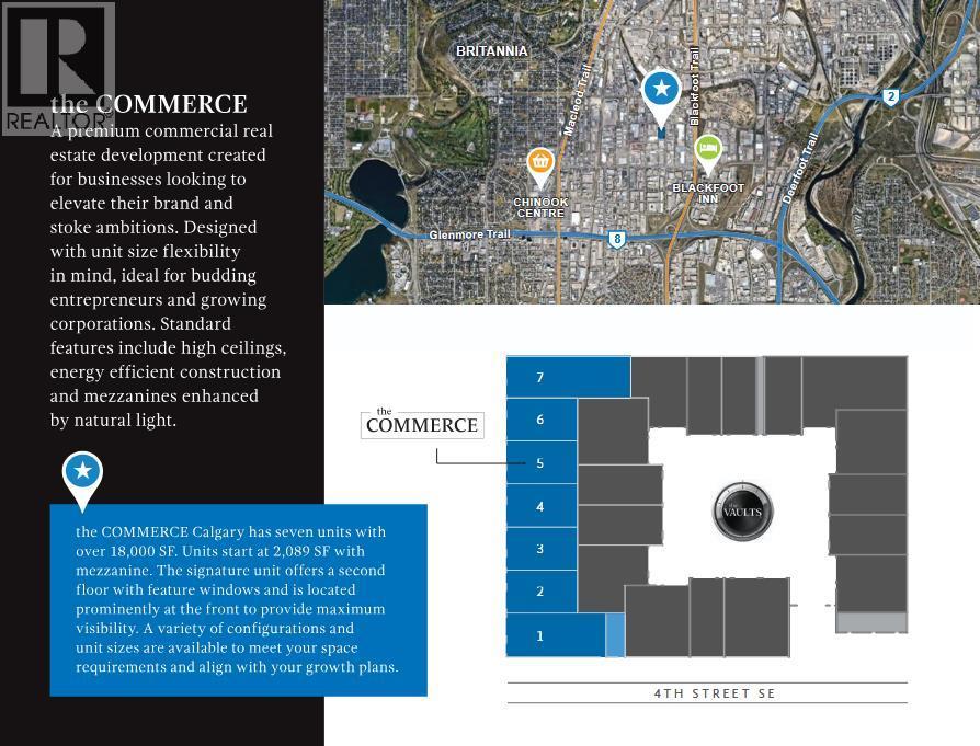 Premium Commercial Space in Calgary’s Southwest THE COMMERCELocated near Calgary’s prestigious SW communities and the city centre, THE COMMERCE offers premium commercial bays ideal for a wide range of professional businesses. Its highly visible and accessible location naturally attracts a discerning clientele, making it an excellent fit for companies seeking a strong presence in this sought-after area.With flexible sizing options and the ability to customize, each bay provides over 2,000 sq. ft. including mezzanine potential. The building features contemporary architectural design and clean, modern lines, giving businesses the opportunity to create a professional space that reflects quality and sophistication. High ceilings, open layouts, and the potential for premium interior finishes allow you to design a welcoming and elevated environment tailored to your needs.Whether you envision a well-lit showroom, a polished workspace, or a customer-focused lounge on the mezzanine, the bays offer the versatility to bring your concept to life. Ample parking and convenient access ensure ease for both clients and employees.While the location is well suited to businesses connected to the nearby VAULTS community and its clientele, THE COMMERCE also supports a wide range of compatible commercial uses. Its placement in an area home to many high-net-worth individuals provides strong potential for businesses looking to serve an established, affluent market.More details available in the photos and supplements. (id:49203)