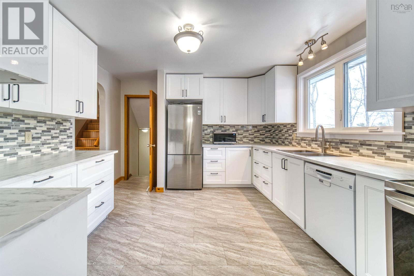 Set apart from the main thoroughfare, this spacious home is located in a very desirable, quiet, long established residential area in the town of Bridgewater. The exceptionally large, corner lot, is surrounded by other well maintained homes with mature trees and landscaping. With four levels of finished living space, the home would be ideal for a large family or multi generations under one roof, and is simply ideal for entertaining a large crowd. The main level consists of a large front foyer with living room to the right. The generous kitchen at the rear of the home has been recently refurbished and leads to a separate dining room with double doors opening onto a 16 X 20 ft. deck. The upper level offers three large bedrooms and a 5 piece family bath including tub with shower. The two lower levels accessed from a door leading from the kitchen, have a ground-level, rear exterior entry, making this house an ideal candidate as a two-generation home. The light filled, lower level recreation or living room has large windows to both the front and rear of the property. The room is spacious with a newly installed wood-burning insert. This same lower level, has a small den or bedroom and full bath with shower and laundry facility. Down an additional short set of stairs one has a large foyer and another den which has the potential as a fifth bedroom. A separate, large utility room serves well as an at-home workshop. The lower bath has been recently renovated. New TRIPLE paned windows have been installed throughout the house for maximum energy efficiency. Ductless heat pumps have been installed and Polaron Solar panels with mask meters, allowing for electrical and heating costs of approx. $1,000 a year. The property is fully landscaped, and apart from the large deck, has a garden shed and a fenced area to contain smaller dogs. With amenities and schools in close proximity, this would make for the ideal family home in one of the most vibrant, growing communities in Nova Scotia. (id:49203)