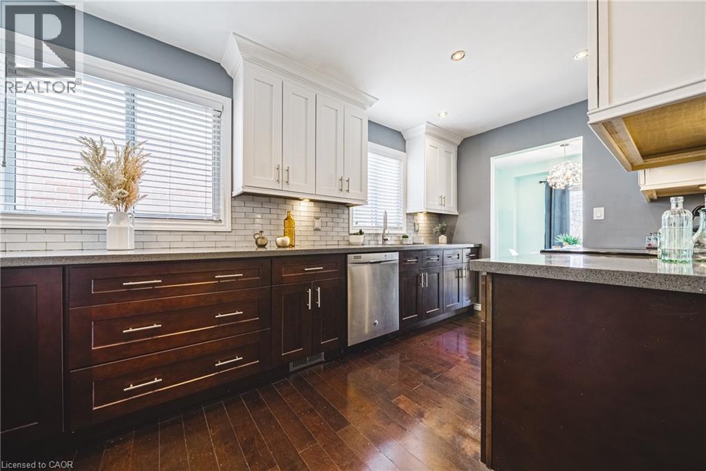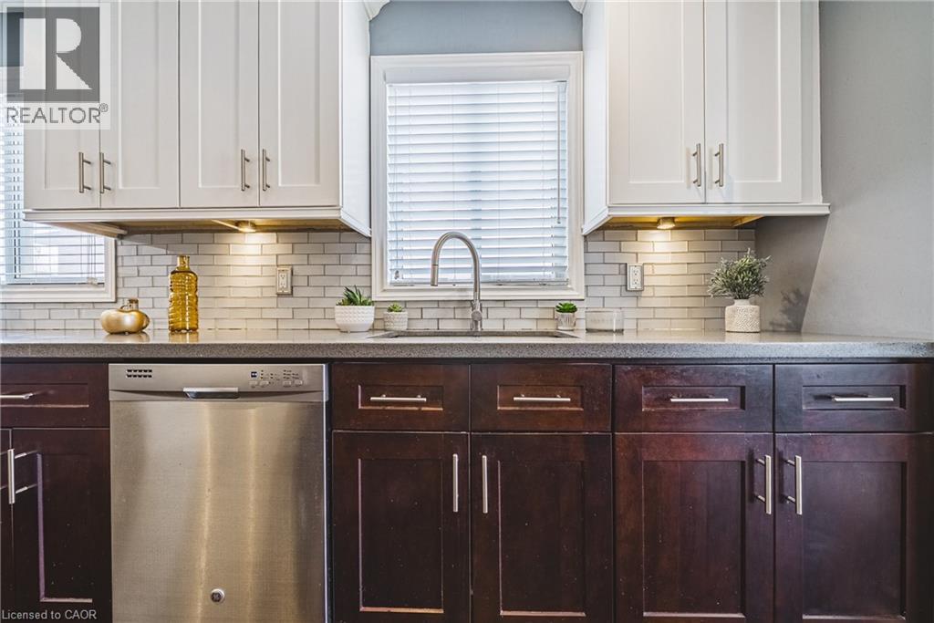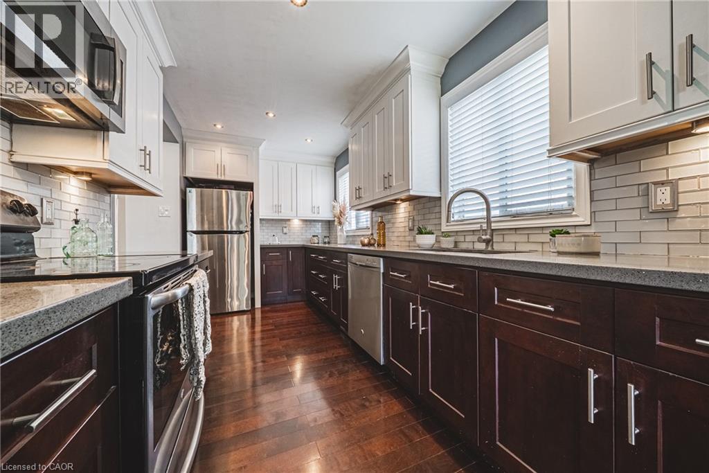 Just move in and enjoy this impressively renovated contemporary home located on a quiet court in a highly convenient neighbourhood. Offering 3 spacious bedrooms and 4 bathrooms, including a private 3-piece ensuite, this home provides plenty of room for comfortable family living. The stylish two-tone shaker kitchen is a true highlight, featuring quartz countertops, a classic subway tile backsplash, and stainless steel appliances. Hardwood and ceramic flooring flow throughout the main level, while the bathrooms have been tastefully updated to a standard rarely seen in this price range. Sliding doors off the dining area lead to a deep, newly fenced 135-ft backyard — perfect for entertaining, relaxing, or letting the kids and pets play. The finished basement adds valuable extra living space ideal for a family room, home office, gym, or guest area. Additional features include central A/C, a single garage with ample driveway parking, and an unbeatable location just minutes to the highway, public transit, and the shopping, dining, and everyday amenities of Ira Needles. A beautifully updated home in a fantastic location — simply move in and start enjoying. (id:49203)