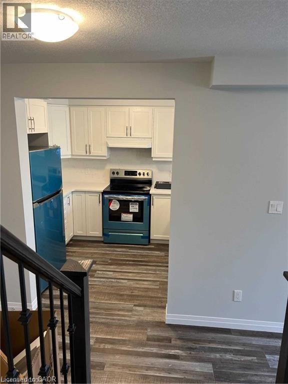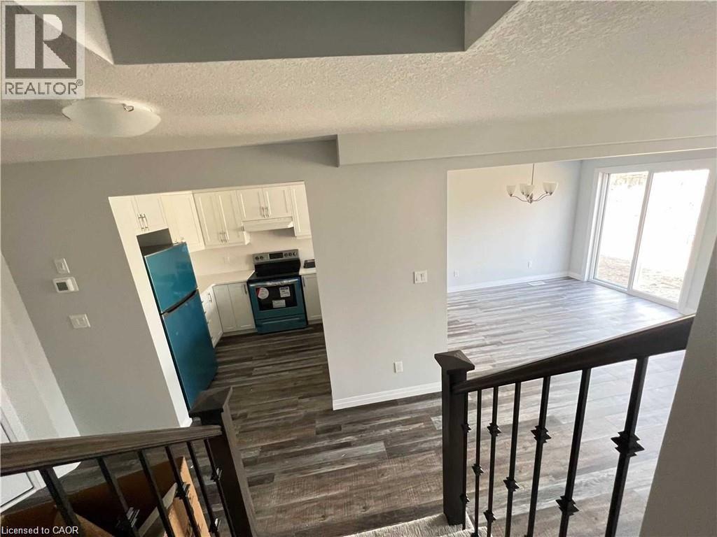 AVAILABLE MAY 1ST. Located in the highly desirable East Galt neighbourhood, this modern townhome offers approximately 1,430 sq ft of thoughtfully designed living space in a family-friendly community close to schools, parks, shopping, and everyday amenities. The main level showcases a bright, open-concept layout featuring a contemporary kitchen with quartz countertops, stainless steel appliances, ample cabinetry, and a spacious breakfast bar — perfect for casual dining and entertaining. The kitchen flows seamlessly into the dining and living areas, with sliding doors leading to a private balcony. A convenient powder room completes this level. Upstairs, you’ll find two generously sized bedrooms, including a primary suite with a 3-piece ensuite, along with an additional 4-piece bathroom. An excellent opportunity to own a stylish, low-maintenance home in one of East Galt’s most sought-after communities. Photos were taken before the tenant moved in. (id:49203)