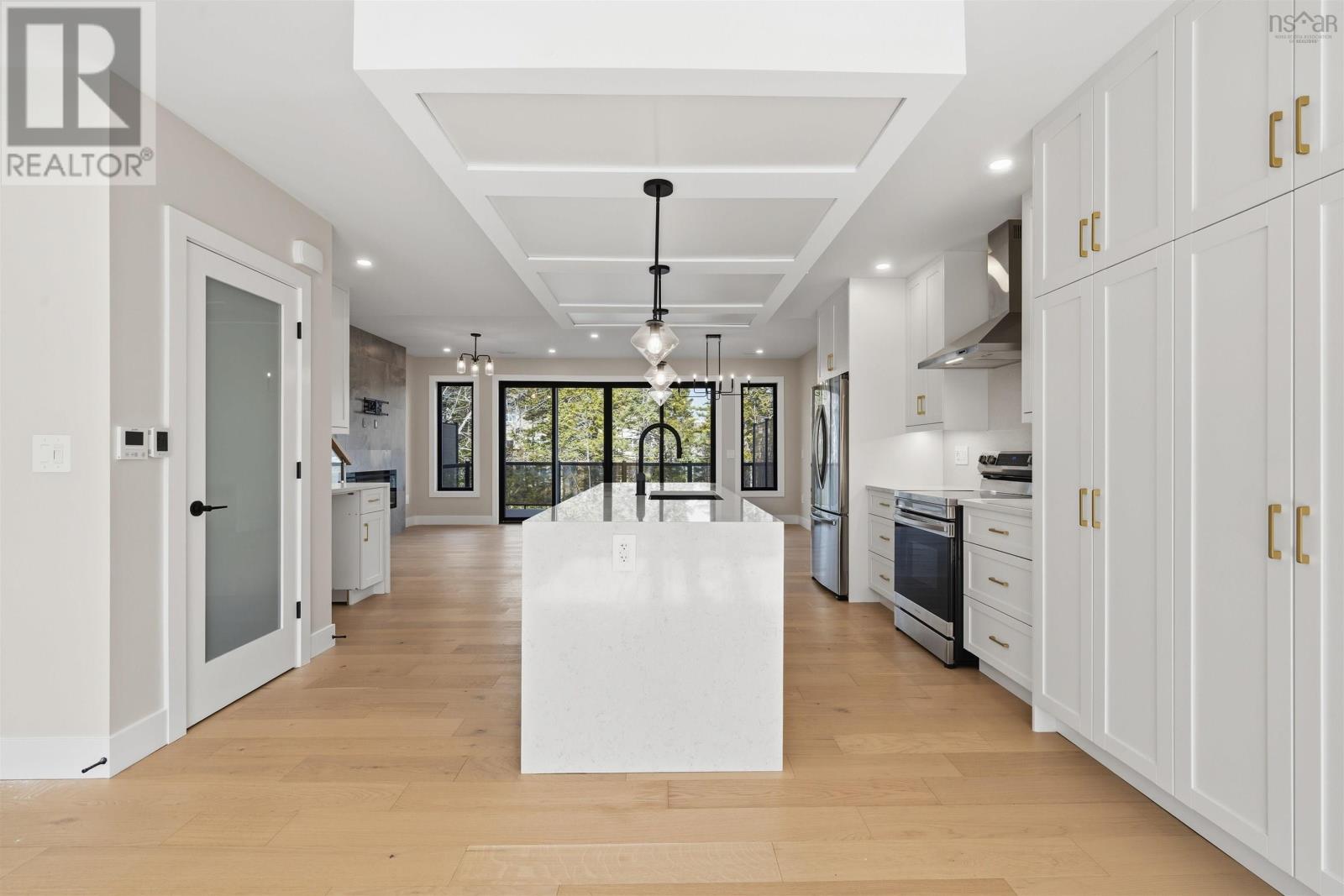 Welcome to this beautifully designed townhouse in the highly sought-after community of Bedfordwhere modern living meets comfort, style, and convenience. This stunning 4-year-old home offers 3 spacious bedrooms and 3.5 bathrooms, thoughtfully laid out to suit both everyday living and entertaining. From the moment you step inside, youre greeted by elegant engineered hardwood floors, high-end finishes, and an abundance of natural light throughout. The heart of the home is the open-concept main level, featuring a sleek kitchen with Cortez countertops and a waterfall islandperfect for hosting or enjoying family meals. The space flows seamlessly into the living area, highlighted by a cozy electric fireplace and double sliding doors that lead to your private back deck, creating a perfect indoor-outdoor lifestyle. Enjoy not just onebut two outdoor spaces, with a front deck for morning coffee and a rear deck ideal for relaxing or entertaining. Upstairs, the primary bedroom is a true retreat, complete with a custom-designed shower in the ensuite that adds a luxurious touch to your daily routine. The fully finished walkout basement offers even more living space, featuring its own double sliding doorsideal for a recreation room, home office, or guest area. Comfort is top-notch year-round with a ducted heat pump system with 3 zones, ensuring efficient climate control throughout the home. Located in a family-friendly, growing area, Bedford offers excellent schools, parks, shopping, and easy access to highwaysmaking it one of the most desirable places to live in the Halifax region. (id:49203)