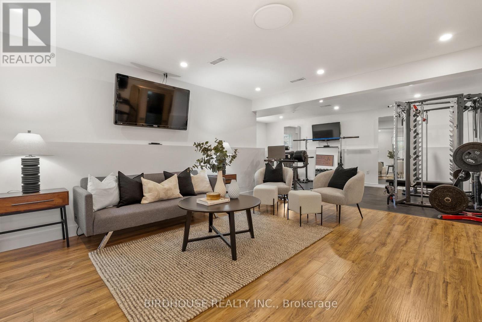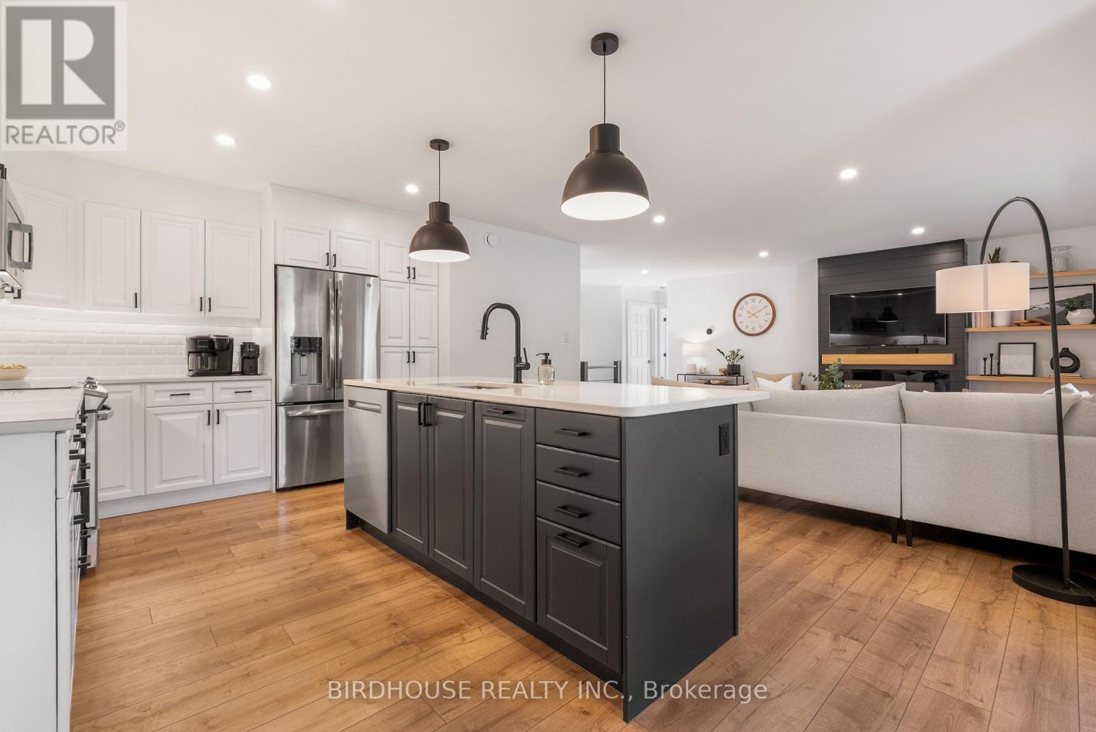 STUNNING 4 bedroom 3 bathroom bungalow in lovely Bobcaygeon! While only built in 2006, this home has been EXTENSIVELY RENOVATED from top to bottom with gorgeous finishes throughout including luxury vinyl plank, quartz countertops, new bathroom fixtures, custom light fixtures & iron entryway banister. The master bedroom features a walk-out to a covered deck plus a beautiful ensuite complete with dual sinks & glass tiled shower. Convenient main floor laundry room and bonus 2pc guest bathroom.The FULLY FINISHED BASEMENT features a second living room, 3rd bathroom, two additional bedrooms & spacious workout area with rubber flooring (possible 5th bedroom). The attached double car garage is HUGE with incredible ceiling height & entrance directly into the home. Updates include: HWT (2024), Shingles (2020) & AC (2018). (id:49203)