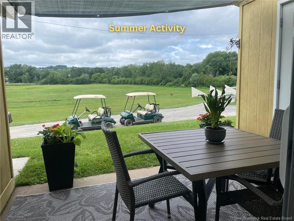 Experience the Perfect Blend of Luxury and Carefree Living, If you are ready to retire your snow shovel and trade yard work for relaxation, this unique townhouse-style condominium is the retreat you've been searching for. Situated with breathtaking, unobstructed views of the Golf Course and the Saint John River. Main Floor with welcoming foyer leads into a bright, open-concept kitchen and an expansive dining and living area. A conveniently located half-bath serves the main level. Upper Level has two generously sized bedrooms. The primary bedroom overlooks the lush golf course and featuring a walk-in closet with a cheater door to the large main bathroom. The laundry area is intelligently tucked away in the upstairs hallway between the bedrooms. Stay comfortable year-round with two heat pumps providing energy-efficient heating and cooling on both levels. Your monthly condo fee of $280 covers a comprehensive suite of services like Professional snow removal, landscaping, and grounds maintenance, Future roof repair and replacement, window cleaning, Water and sewage bills, plus professional waste management. Fees also covers fire and public liability insurance for the corporation. Note: A one-time Reserve Fund contribution of $500 is payable upon closing. Dedicated storage shed for patio furniture and designated parking space are included. (id:49203)