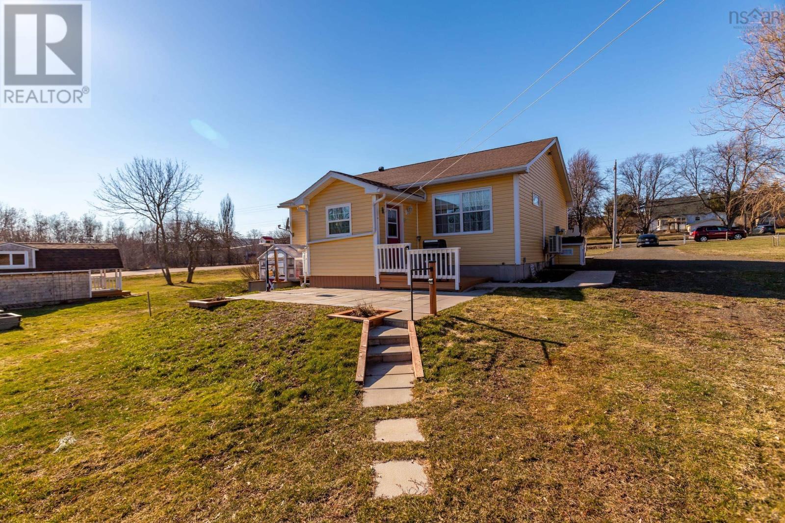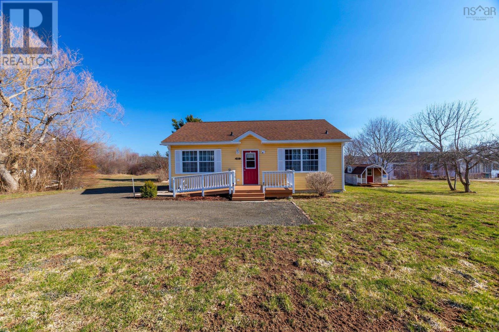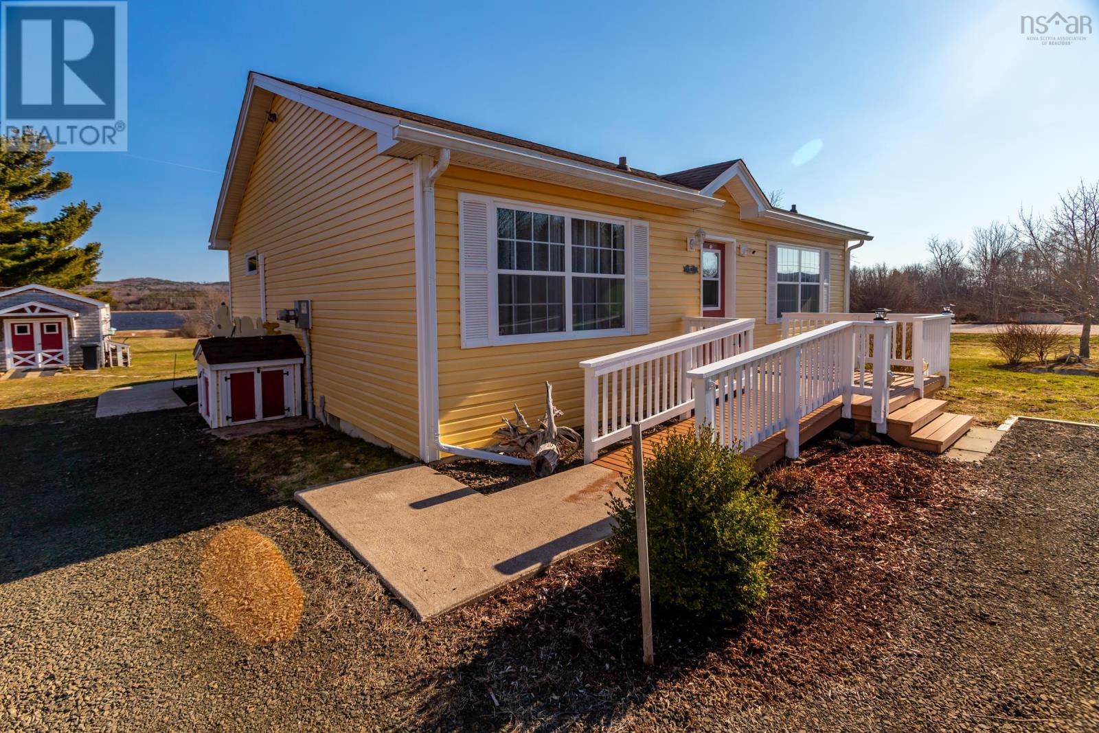Discover your private oasis on the shores of the Annapolis Basin. This seven-year old, maintenance free bungalow offers a rare blend of modern comfort and breathtaking natural beauty, perfect as a sophisticated retirement retreat or high-quality starter home. Designed for accessibility, the home features a front-door ramp and three-foot-wide doorways. The sun-drenched, open-concept interior is anchored by large windows framing the Basin, seamlessly connecting the eat-in kitchen to a spacious living room. The functional layout includes large entry with a built-in office, two bedrooms with ample storage, a full family bath, and main-floor laundry. A ductless heat pump ensures efficient, year round climate control. The nearly four-acre property is a gardener's dream, featuring raised beds, mature grapevines, a blueberry patch, and two sturdy outbuildings. Near the water's edge, a private viewing platform provides the perfect vantage point to watch the tides and coastal birds. Enjoy peaceful waterfront living just minutes from the culture and amenities of historic Annapolis Royal. Fully serviced with municipal water and sewer, this home offers urban convenience in a serene pastoral setting. Book your private viewing today. (id:49203)