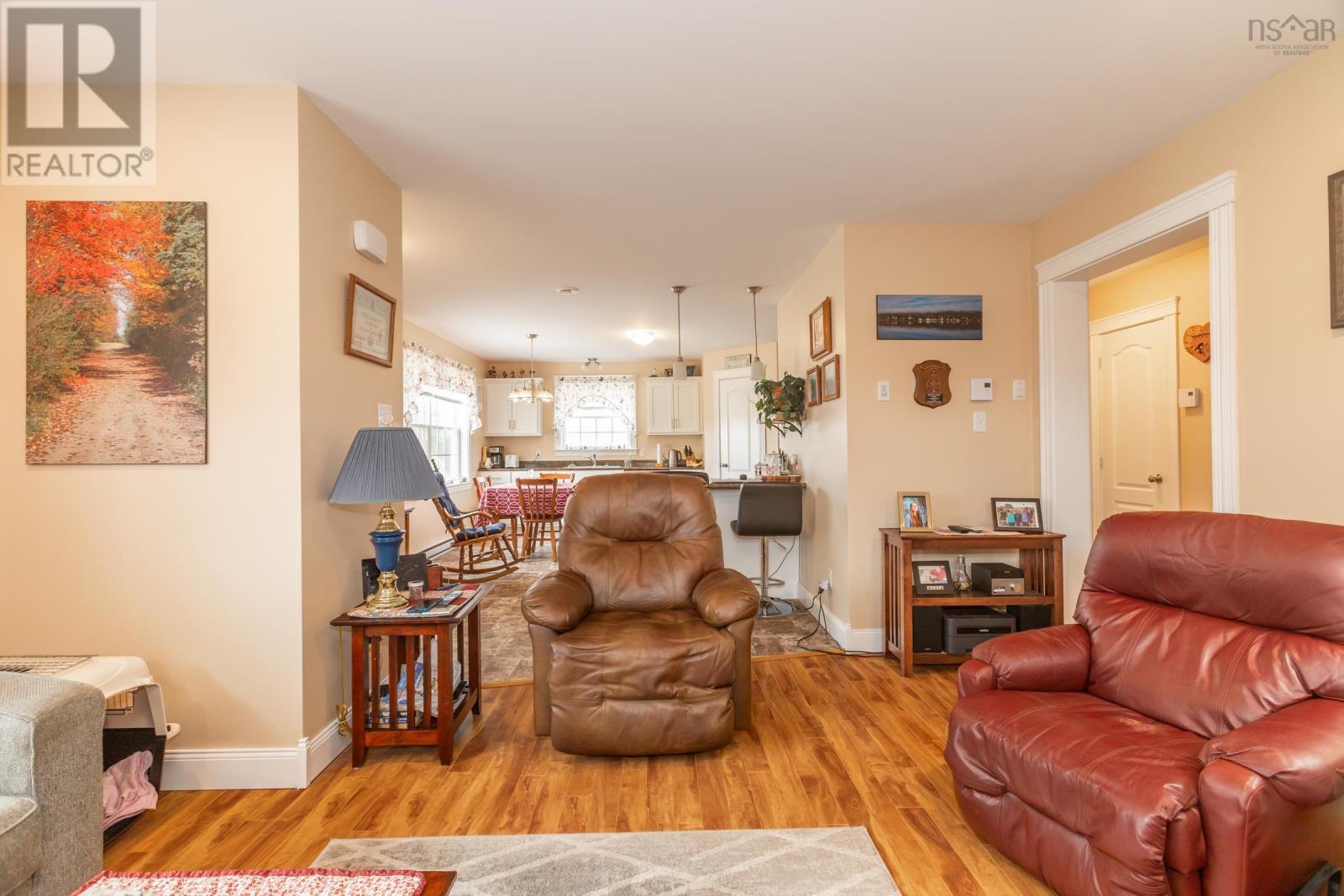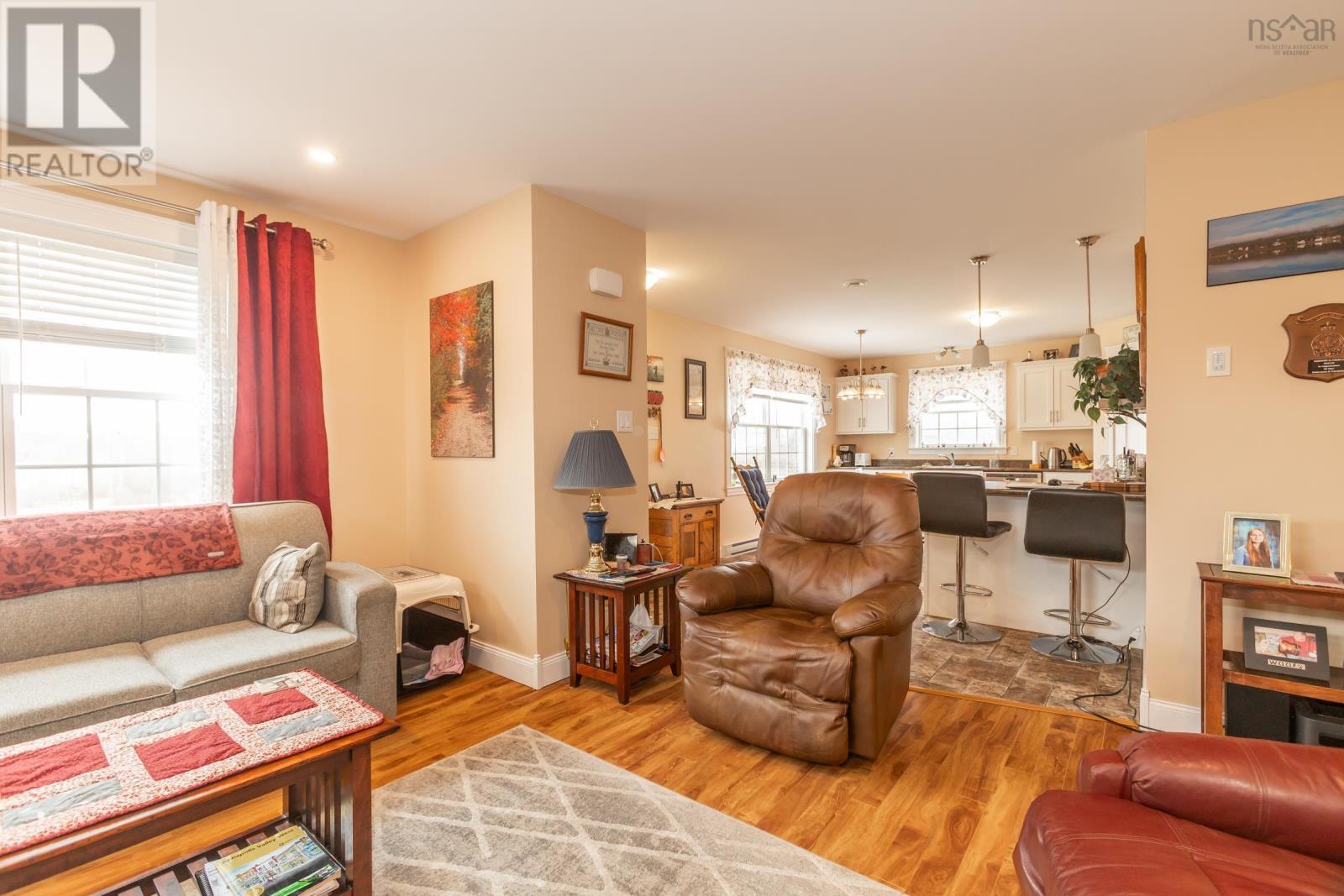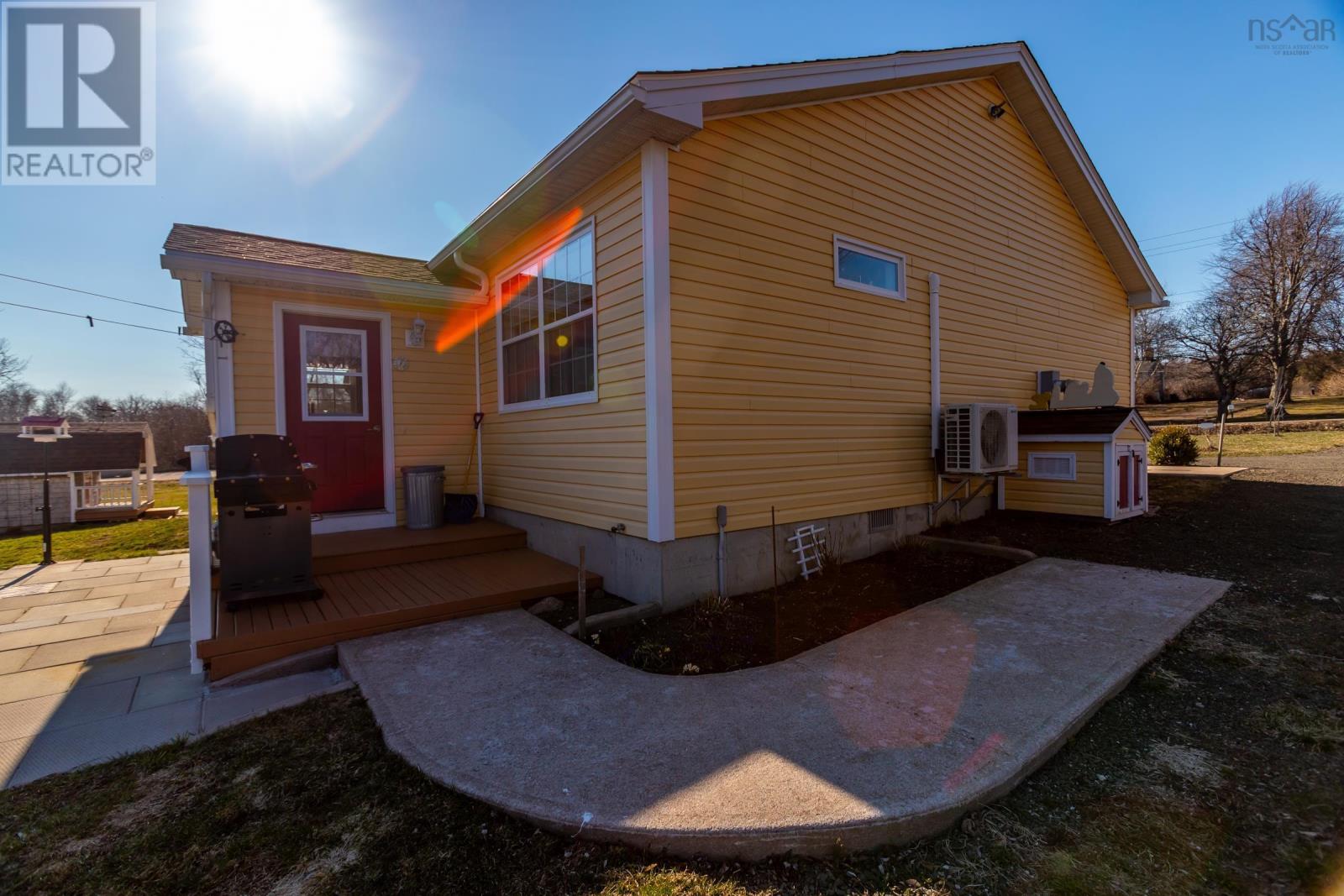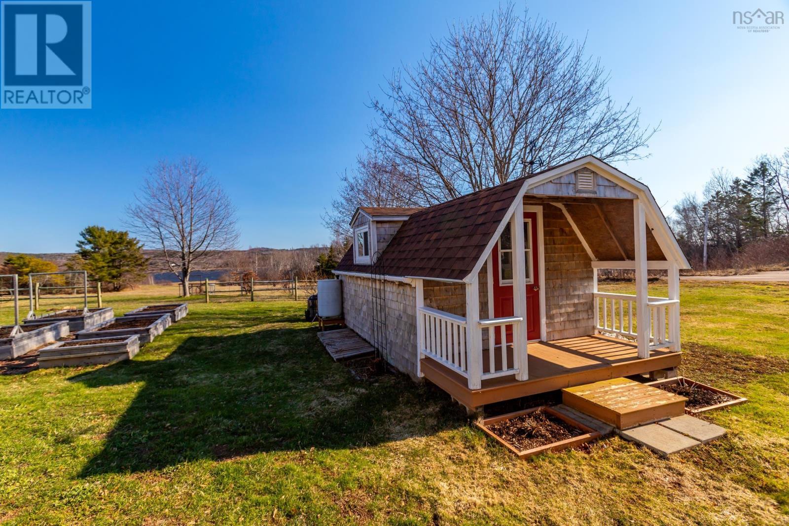 Discover your private oasis on the shores of the Annapolis Basin. This seven-year old, maintenance free bungalow offers a rare blend of modern comfort and breathtaking natural beauty, perfect as a sophisticated retirement retreat or high-quality starter home. Designed for accessibility, the home features a front-door ramp and three-foot-wide doorways. The sun-drenched, open-concept interior is anchored by large windows framing the Basin, seamlessly connecting the eat-in kitchen to a spacious living room. The functional layout includes large entry with a built-in office, two bedrooms with ample storage, a full family bath, and main-floor laundry. A ductless heat pump ensures efficient, year round climate control. The nearly four-acre property is a gardener's dream, featuring raised beds, mature grapevines, a blueberry patch, and two sturdy outbuildings. Near the water's edge, a private viewing platform provides the perfect vantage point to watch the tides and coastal birds. Enjoy peaceful waterfront living just minutes from the culture and amenities of historic Annapolis Royal. Fully serviced with municipal water and sewer, this home offers urban convenience in a serene pastoral setting. Book your private viewing today. (id:49203)