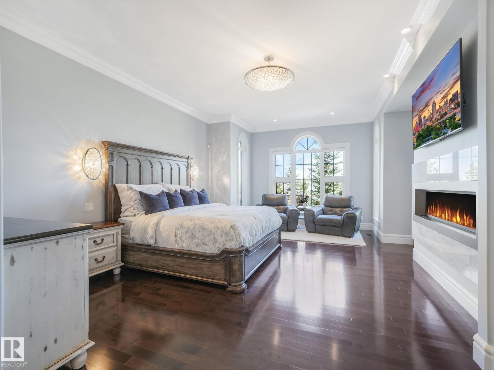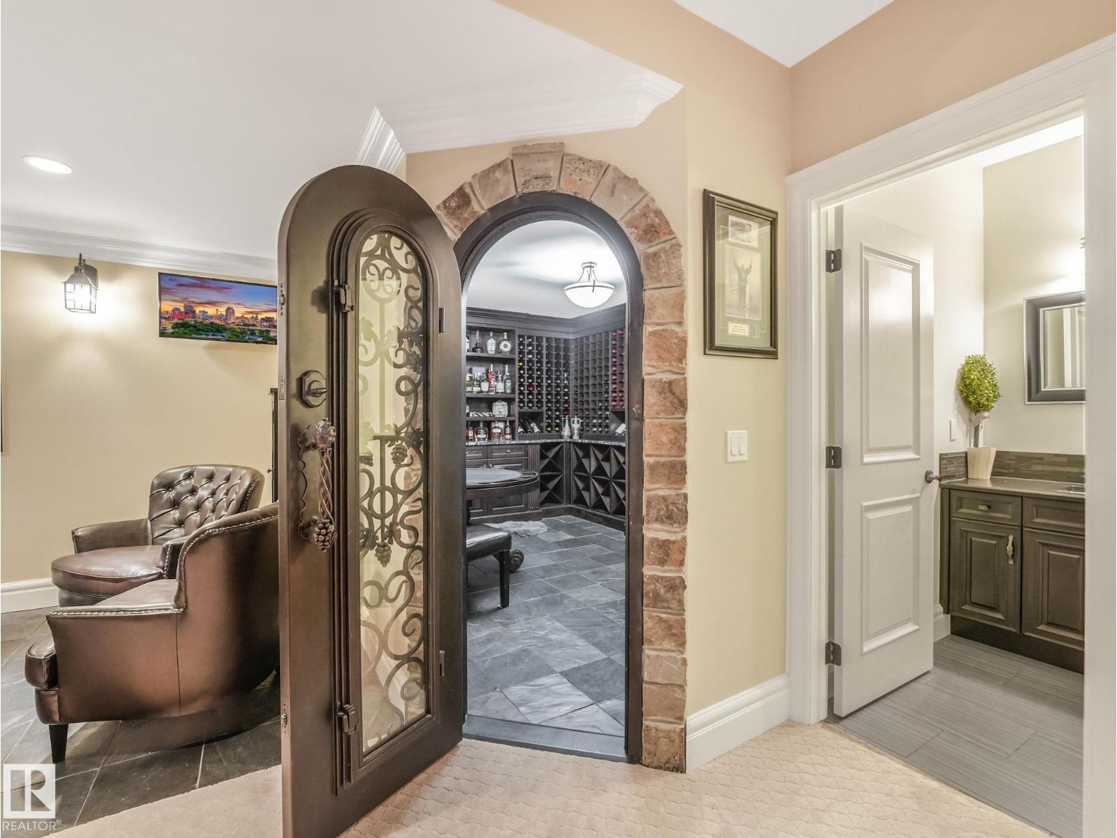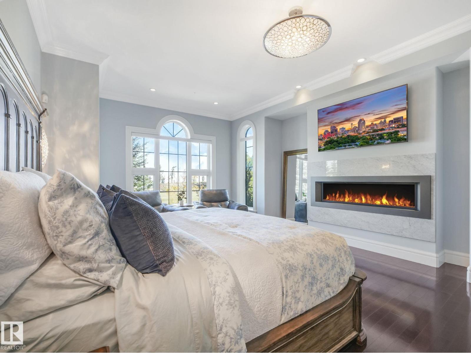 Acreage living with city services in Lukas Estates, just minutes to Beaumont or South Edmonton. Crown mouldings and timeless architectural details set the tone for this executive home over 5,600 sq ft of luxurious living with 5 beds ,5 baths. Designed for both comfort and elegance, this residence showcases soaring ceilings and an impressive floor plan that flows seamlessly throughout. The main floor is anchored by a top-of-the-line wood fireplace overlooking the gourmet kitchen with a chef’s dream with a La Cornue stove, custom cabinetry, and a large island. Bonus prep space off the formal dining. The expansive main primary suite features gas fireplace, spa-inspired ensuite, and walk-in closet. Additional primary suite for flexible living. The basement includes a separate entrance, a custom wine cellar, 2 bathrooms, and a central gas fireplace, creating the perfect blend of style and functionality. Beautifully landscaped, complete with an irrigation system .Triple garage plus single garage. (id:49203)