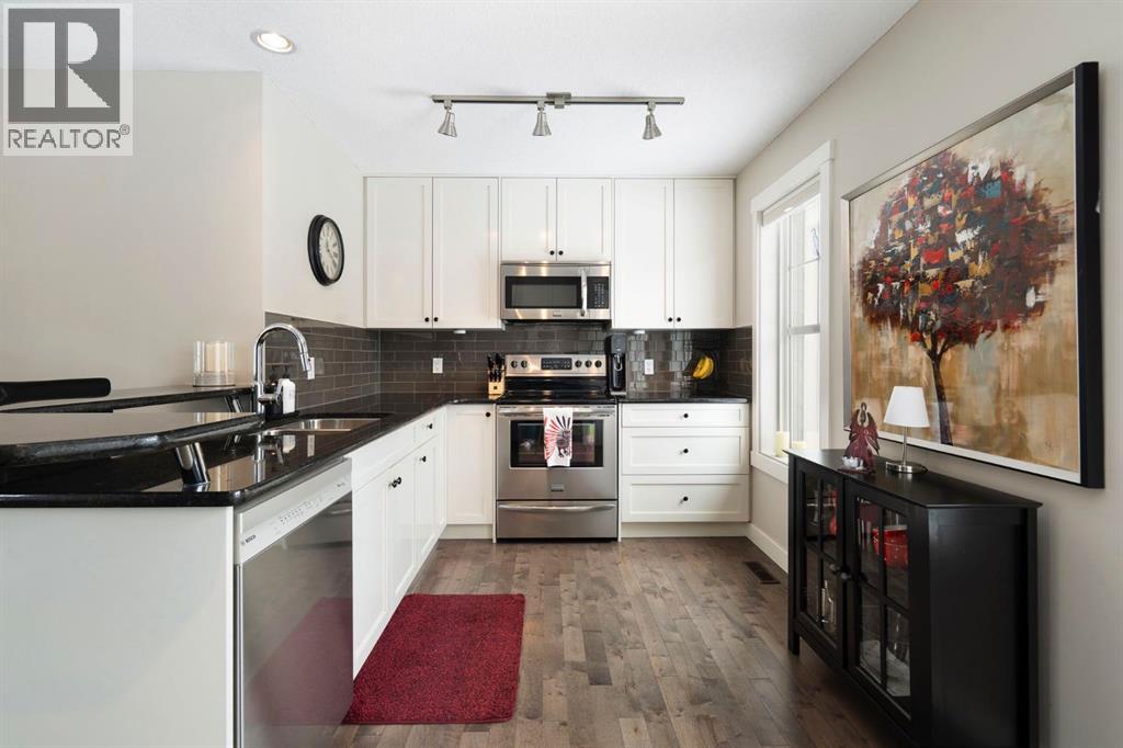 $422.76 MonthlyWelcome to this beautifully maintained end-unit townhouse in the sought-after community of Cranston, offering a bright and functional layout designed for comfortable everyday living. From the moment you step inside, the home makes a strong impression with its unique 1.5-storey great room living space at the entry, creating an open, airy feel enhanced by large windows and an abundance of natural light.As a corner unit, this home enjoys additional privacy and multiple exposures, allowing sunlight to fill the space throughout the day. The main floor features sleek hardwood flooring and a contemporary kitchen complete with white cabinetry, granite countertops, an island, and a full appliance package. A versatile dining nook provides flexibility for meals, a home office, or additional living space, while the open layout seamlessly connects to the spacious living area—perfect for relaxing or entertaining.Upstairs, you’ll find two generously sized bedrooms, each with its own private ensuite and walk-in closet. This rare dual ensuite layout offers excellent functionality for guests, roommates, or families seeking added privacy. Upper-level laundry adds everyday convenience and completes the well-designed second floor.The double attached garage provides secure parking for two vehicles along with additional storage space, a valuable feature year-round. The unfinished basement offers even more storage capacity and presents future development potential to suit your needs.Located close to walking paths, parks, shopping, schools, and public transit, with quick access to Deerfoot Trail, this home combines comfort, convenience, and lifestyle. An excellent opportunity for first-time buyers, downsizers, or investors looking for a bright, well-located property in a vibrant southeast Calgary community. (id:49203)