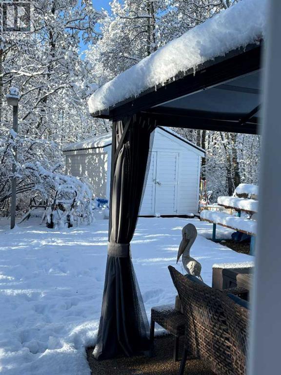 Located in a Prime Area of Sylvan Lake, this home offers Quick and Easy Access to The Lake / Shopping / Downtown Amenities / and all Major Entry Points to Sylvan Lake / while backing onto a Natural Treed Greenspace plus a Beautiful Park to the West of the property that gives you the feeling of Country Living Right In Town. This property has seen many upgrades over the past 20 months, including electrical upgraded to 100 amps by Townsend Electrical / plumbing upgraded to PLEX , a new hot water tank was installed by Fonda’s Plumbing / a new 10’ x 16’ shed / 6 ft high chain-link fencing along the full side of the house / a 12’ x 14’ all-season hard-top gazebo installed on a concrete patio / an extra-large freshly graveled parking area / a newer dryer withint the last year / the balance of appliances newer wtihin the last two years. Ideal as a starter home / retirement property / or Airbnb investment. If you added a second floor to this home, you could have a view of the Lake! OR remove the house and build your Dream Home. You could purchase as a Group and use it as your destination retreat to embrace what The Lake has to offer in all 4 Seasons. There is the possibility of purchasing pieces of furniture or all the furniture to be included. Easy to show! (id:49203)