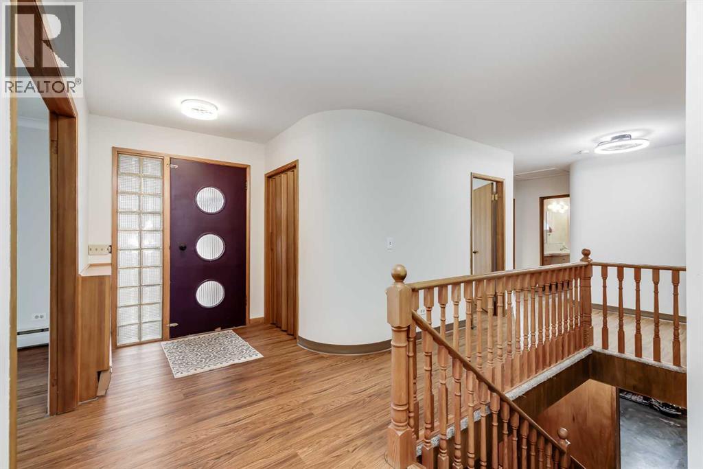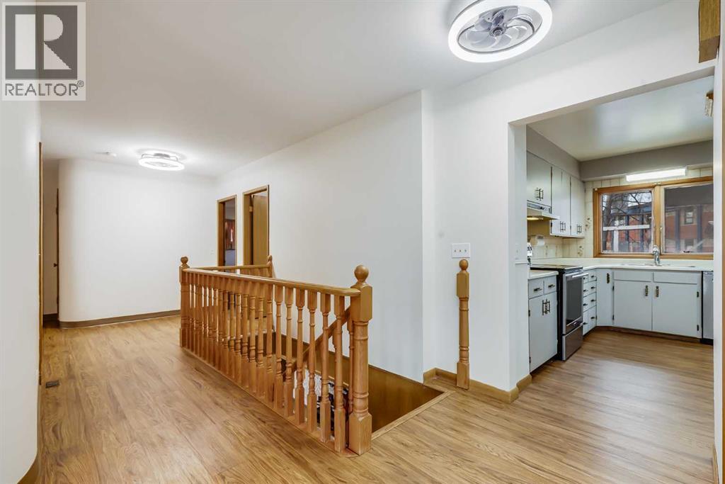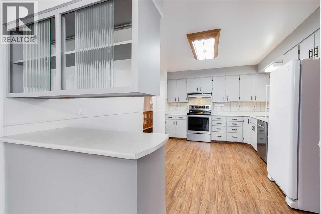 Park-front living and endless character come together in this well-maintained home offering over 2,000 sq ft above grade on a beautifully treed lot. Positioned directly across from green space with tennis courts, a playground and basketball courts, daily life here connects effortlessly to the outdoors. Original design elements introduce mid-century charm throughout, including beautiful curved architectural details and a distinctive front entry, while thoughtful updates support comfortable, move-in ready living. A spacious main level unfolds with upgraded vinyl flooring and an expansive living area where oversized picture windows frame park views and draw in natural light throughout the day. The seamless flow continues into the dining area where updated lighting enhances gatherings and direct access to the backyard encourages an easy indoor-outdoor lifestyle. A well-planned kitchen boasts abundant cabinet and drawer storage along with a functional peninsula featuring display shelving, while a window above the sink ensures clear sightlines to the yard, perfect for keeping an eye on kids or pets. Four very large bedrooms on the main level create a rare and highly functional layout for families, including a primary retreat with a walk-in closet and a private updated 2-piece ensuite, while a full 4-piece bathroom and updated lighting throughout complete the level. Additional living space continues in the basement where a fifth bedroom and two bathrooms, including an updated 4-piece with dual sinks and an oversized shower, add flexibility for guests or extended family, while the remaining areas grant excellent storage and future development potential. The outdoor living is equally inviting with a sunny southwest-facing backyard that encourages relaxation, gardening and play beneath mature trees, complemented by patio space for barbequing and unwinding. An oversized double detached garage with a new roof provides secure parking and additional storage for seasonal needs. Th is outstanding location places parks, recreation and open green space just steps from your door for a setting where both convenience and lifestyle are naturally elevated. Truly a phenomenal location for this beautiful character home that grows with you and adapts to every stage of life. (id:49203)