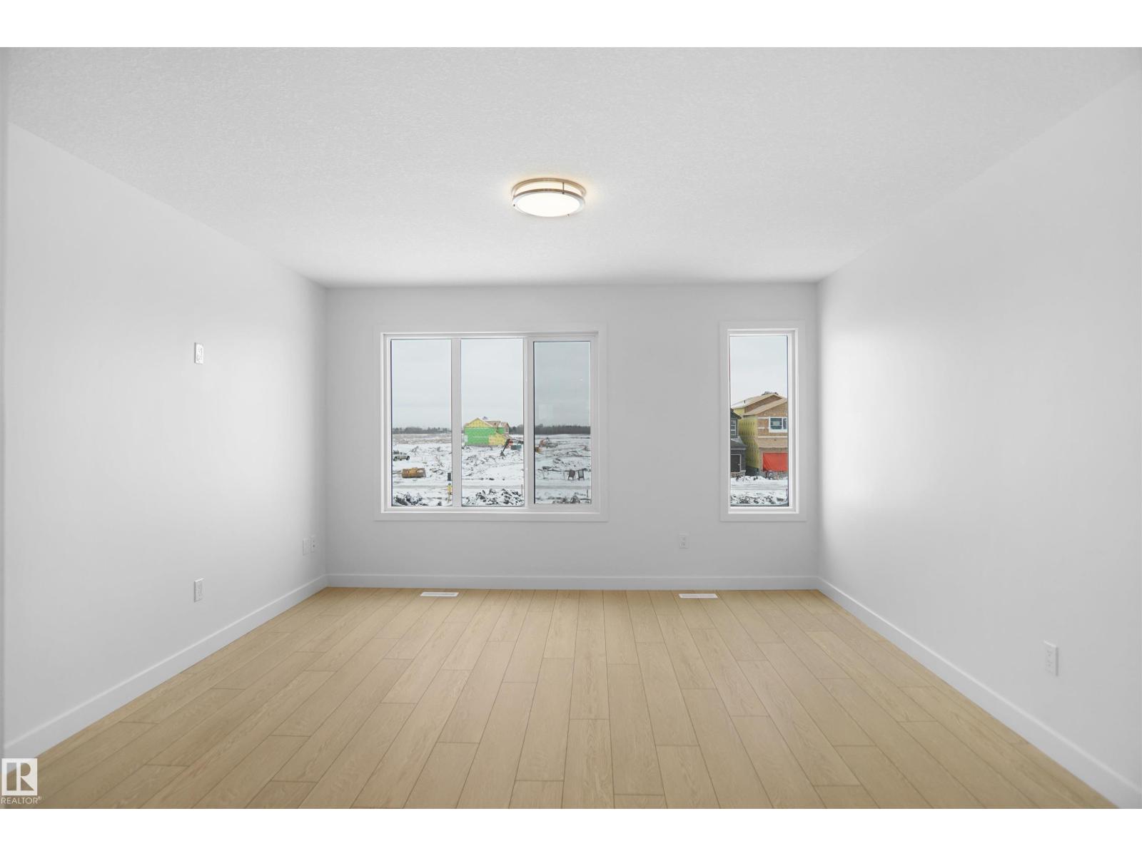 Welcome to this brand new half duplex, the “Reimer” model built by the award-winning Pacesetter Homes, located in one of Edmonton's newest west-end communities of River’s Edge. With over 1,288 sq. ft. of thoughtfully designed living space, this home is ideal for a young family or couple looking for modern style and functionality. The main floor features a versatile flex room or 3rd bedroom located conveniently near the garage entrance, complete with a full 3-piece bathroom perfect for guests or a home office setup. Upstairs on the second level, you'll find a contemporary kitchen with upgraded cabinetry, premium countertops, tile backsplash, and luxury vinyl plank flooring flowing seamlessly into the spacious great room, ideal for entertaining. The upper level offers 2 comfortable primary bedrooms and 2 full bathrooms, including a well-appointed primary suite. Additional features include a single oversized attached garage and modern finishes throughout. This home is now move in ready! (id:49203)