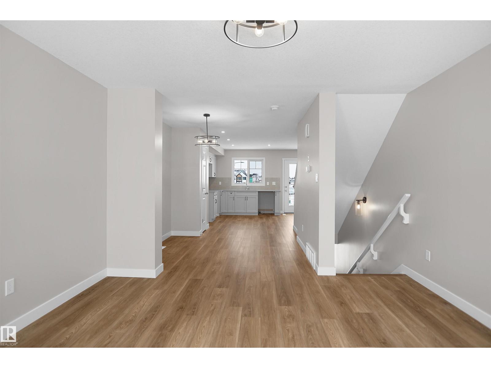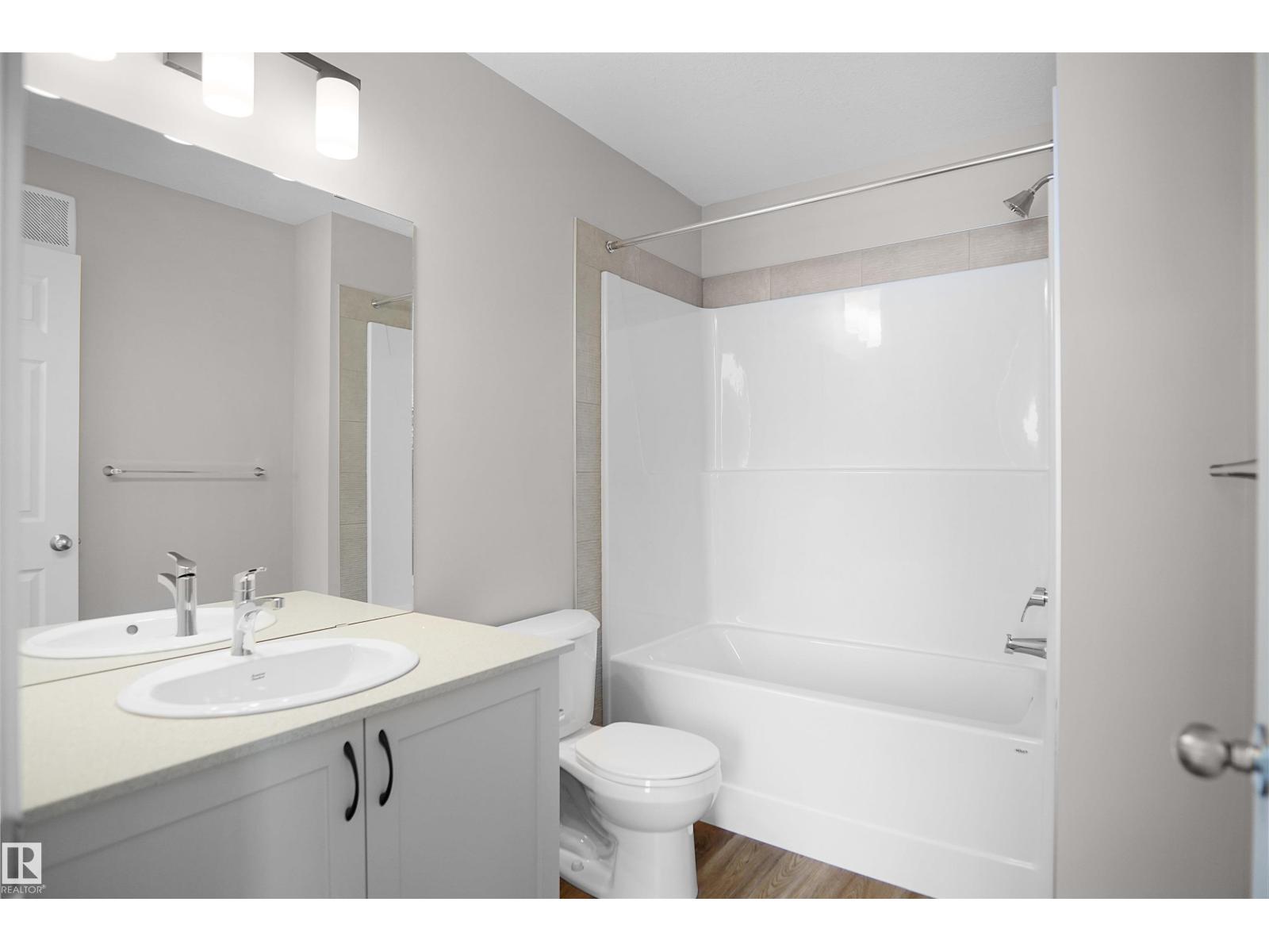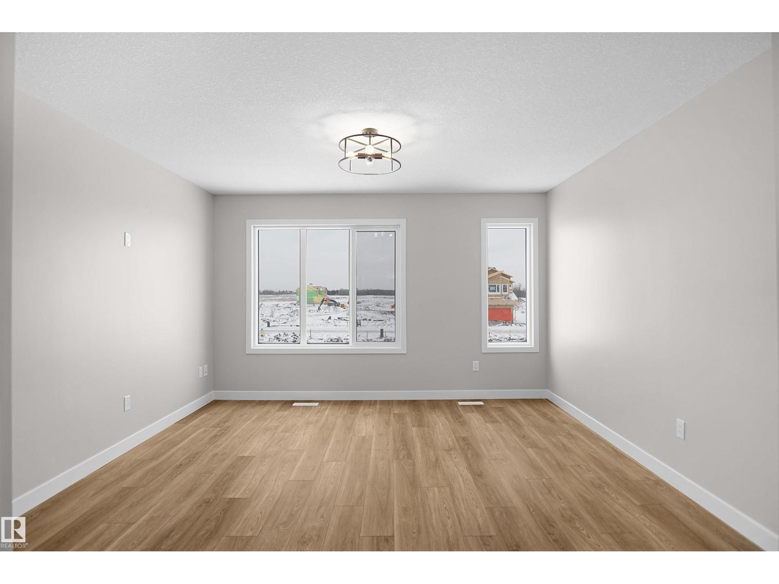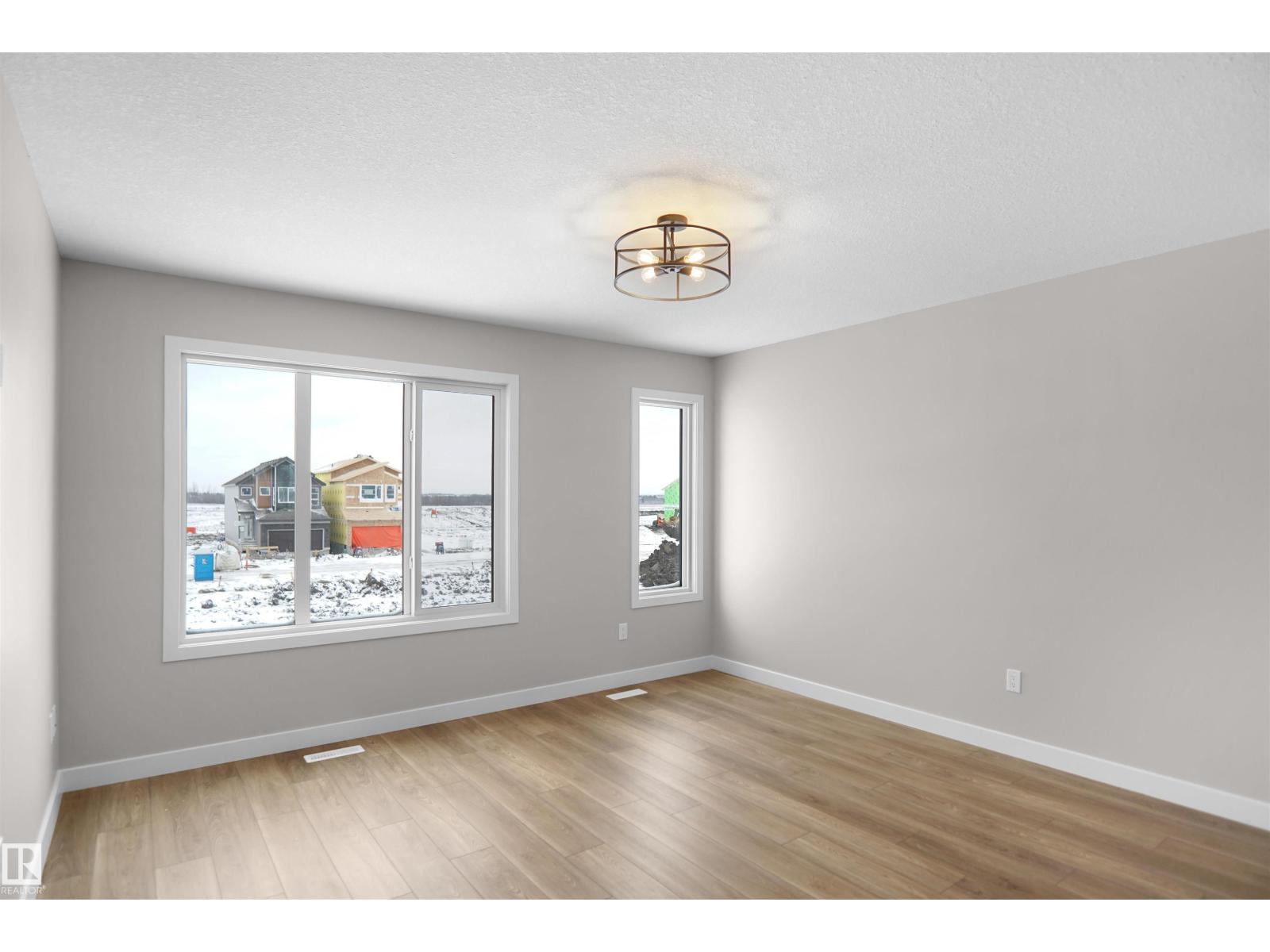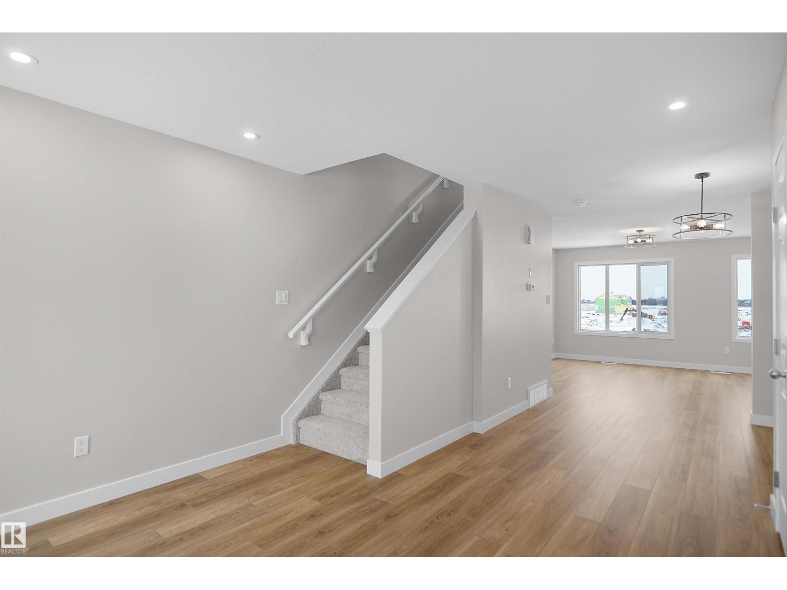 Welcome to this brand new half duplex, the “Reimer” model built by the award-winning Pacesetter Homes, located in one of Edmonton's newest west-end communities of River’s Edge. With over 1,280 sq. ft. of thoughtfully designed living space, this home is ideal for a young family or couple looking for modern style and functionality. The main floor features a versatile flex room or 3rd bedroom located conveniently near the garage entrance, complete with a full 3-piece bathroom perfect for guests or a home office setup. Upstairs on the second level, you'll find a contemporary kitchen with upgraded cabinetry, premium countertops, tile backsplash, and luxury vinyl plank flooring flowing seamlessly into the spacious great room, ideal for entertaining. The upper level offers 2 comfortable primary bedrooms and 2 full bathrooms, including a well-appointed primary suite. Additional features include a single oversized attached garage and modern finishes throughout. This home is now move in ready! (id:49203)