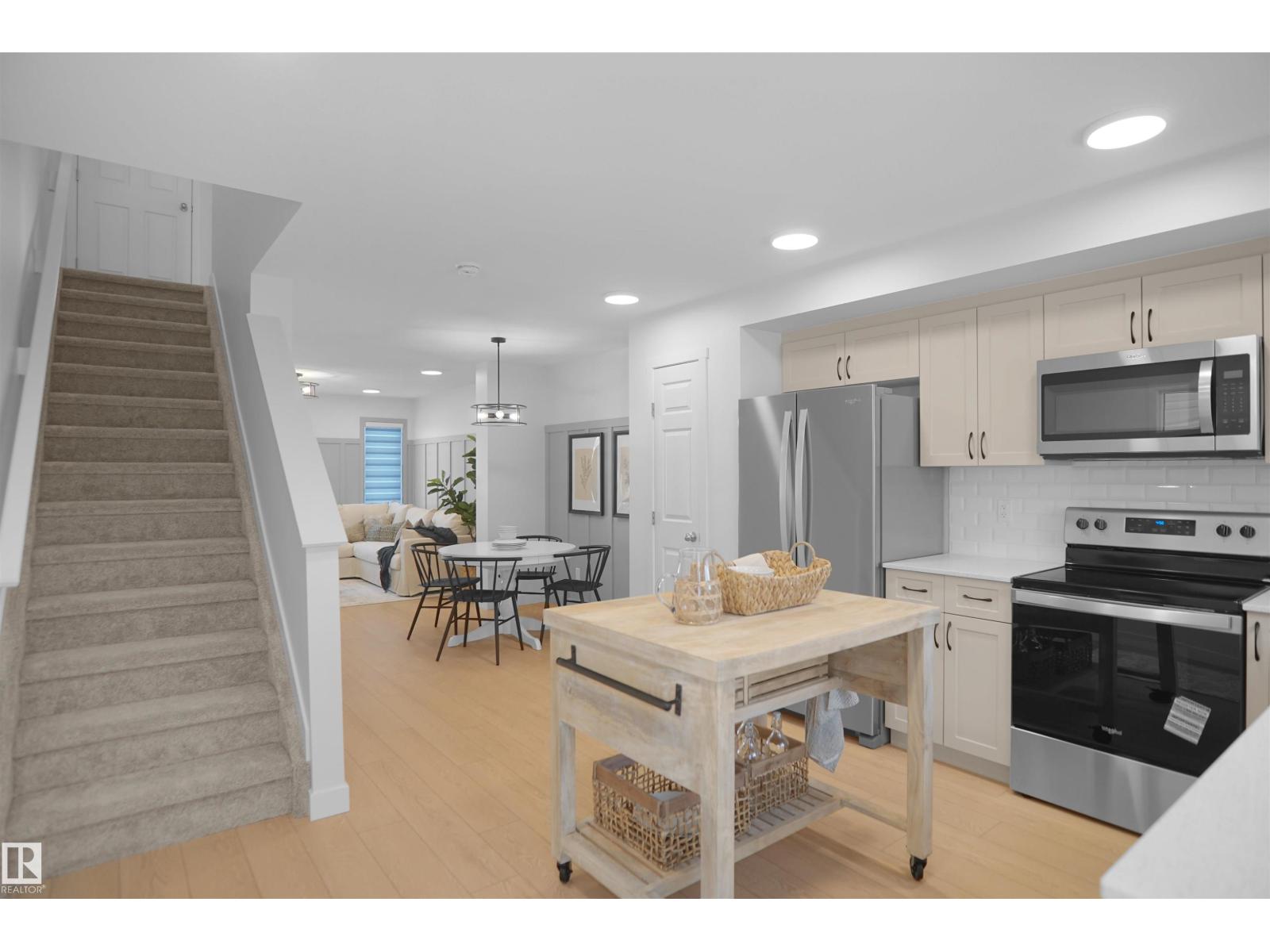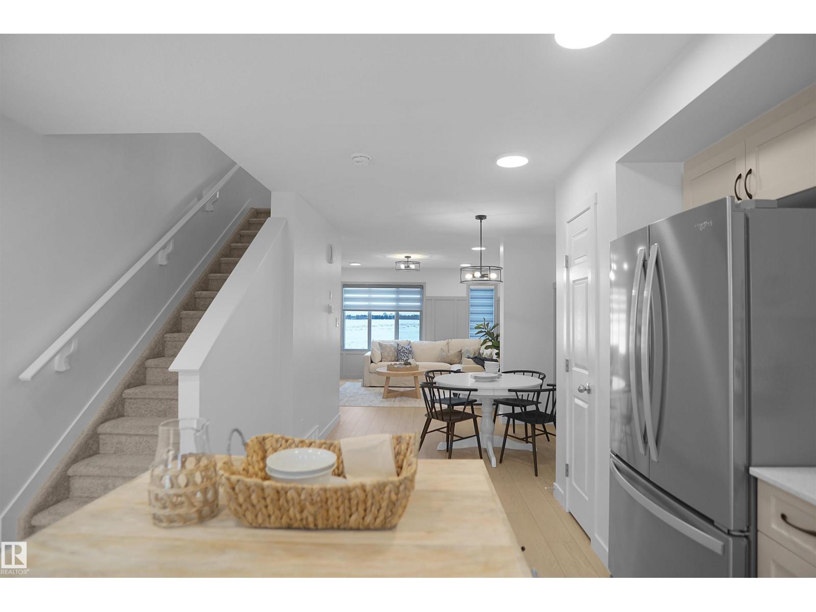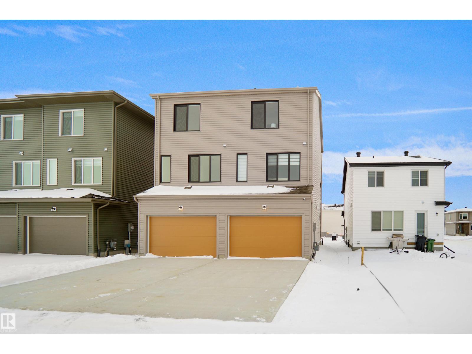 Welcome to this brand new half duplex, the “Reimer” model built by the award-winning Pacesetter Homes, located in one of Edmonton's newest west-end communities of River’s Edge. With over 1,280 sq. ft. of thoughtfully designed living space, this home is ideal for a young family or couple looking for modern style and functionality. The main floor features a versatile flex room or 3rd bedroom located conveniently near the garage entrance, complete with a full 3-piece bathroom perfect for guests or a home office setup. Upstairs on the second level, you'll find a contemporary kitchen with upgraded cabinetry, premium countertops, tile backsplash, and luxury vinyl plank flooring flowing seamlessly into the spacious great room, ideal for entertaining. The upper level offers 2 comfortable primary bedrooms and 2 full bathrooms, including a well-appointed primary suite. Additional features include a single oversized attached garage and modern finishes throughout. *** under construction , complete by August 2026 *** (id:49203)