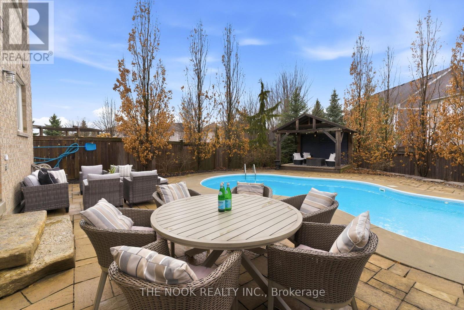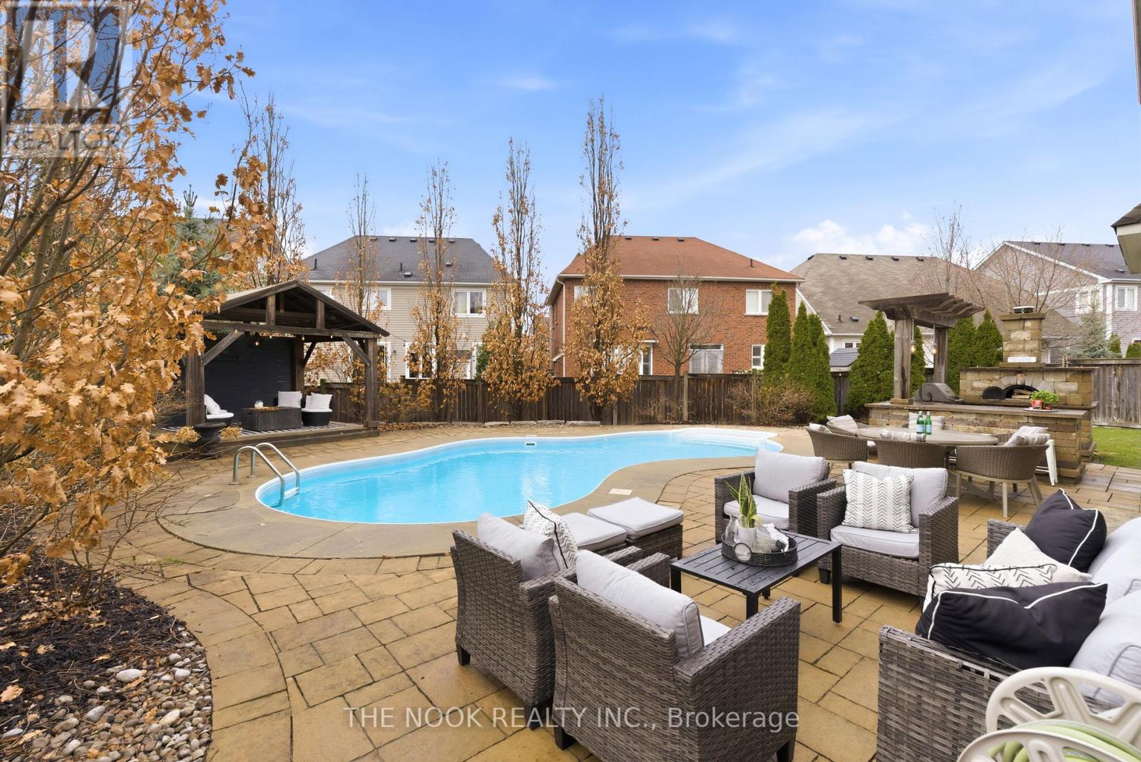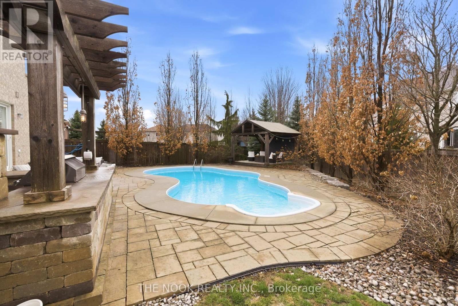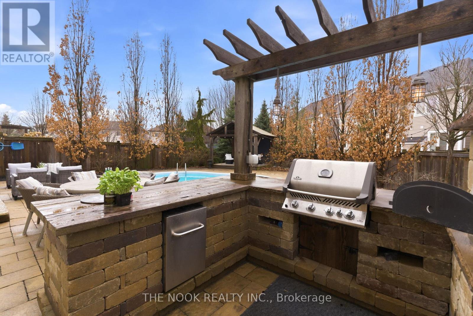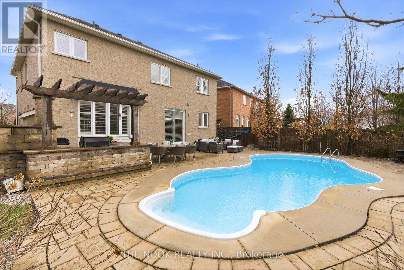 Welcome to 52 Gerry Ravary Place in highly sought-after West Brooklin! Nestled on a premium pie-shaped lot on a quiet crescent, this beautifully updated 4 bedroom, 5 bathroom family home offers the perfect blend of luxury, comfort, and lifestyle. Featuring hardwood flooring throughout, pot lights across the entire home, and elegant wainscotting and trim details, every inch has been thoughtfully upgraded. The kitchen, bedrooms, bathrooms, and trim have all been freshly painted, creating a bright and modern feel. The spacious layout includes a versatile main floor den and a fully finished basement, ideal for growing families or entertaining. Step outside to your private, resort-style backyard oasis complete with a heated saltwater kidney-shaped pool (approx. 5.5 ft deep), mature trees for added privacy, and professional landscaping front and back. The show-stopping outdoor kitchen features a built-in BBQ, fridge, and a Chicago brick wood-burning pizza oven-perfect for hosting all summer long. Located just steps to parks, a splash pad, soccer fields, and two schools, this exceptional home offers unbeatable convenience in a family-friendly neighbourhood. A true Brooklin gem you won't want to miss! (id:49203)