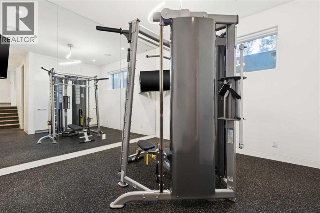 OPEN HOUSE SAT MARCH 7th 1-3pm **PRICE ADJUSTED** A world-class contemporary residence on prestigious Crescent Road, offering breathtaking panoramic city skyline and mountain views from one of Rosedale’s most coveted blocks, surrounded by estates valued up to $20M. Masterfully conceived by renowned architect Sean McCormick and designer Paul Lavoie, this exceptional home delivers nearly 4,000 sq ft of uncompromising luxury—perfectly suited to couples, empty nesters, or discerning singles. An elevator connects all levels, making this an ideal alternative for condo or townhouse buyers seeking space without compromise. Exquisite bespoke detailing defines the home, with integrated casings and baseboards, architectural light channels, ceiling-height custom doors, and a striking sculptural staircase—every element thoughtfully designed and flawlessly executed. The main living level features soaring 10' ceilings and full-height Austrian Reynaers sliding doors opening to a generous view terrace with fireplace. A subtle elevation change toward the rear preserves sightlines from the elegant dining area and the sleek, modern kitchen, complete with quartz waterfall island, abundant storage, and a premium Miele appliance package. A double office with adjustable-height desk and a discreet powder room complete this level, along with access to a powered-screen three-season room. The second level is anchored by a stunning primary suite with city views framed by huge windows, a spacious dressing room, and a spa-like ensuite with dual vanity, oversized shower, freestanding tub, and private water closet. A generous laundry room and a second bedroom with ensuite complete the floor. The top level offers a sprawling media lounge with home theatre, wet bar with Sub-Zero fridges and access to a private south-facing terrace with flame table and spectacular mountain and city views. A third bedroom and full bath are also located on this level. The lower level is currently configured as a gym with adjacent bathroom featuring a steam shower. A huge and well-appointed mudroom connects to the immaculate double garage with EV charger. Infrastructure highlights include in-floor heating on the main and lower levels, snow-melt for the driveway, sidewalk, and front terrace, central air conditioning and an Elan home automation system. Perimeter security gates, full alarm system, and cameras ensure peace of mind. Gorgeous professional low-maintenance landscaping completes this exceptional offering. A truly irreplaceable property of remarkable calibre—offered well below replacement cost. (id:49203)