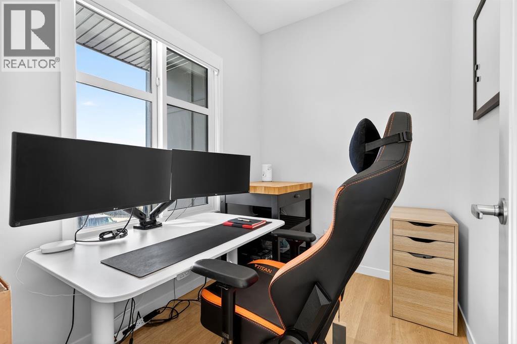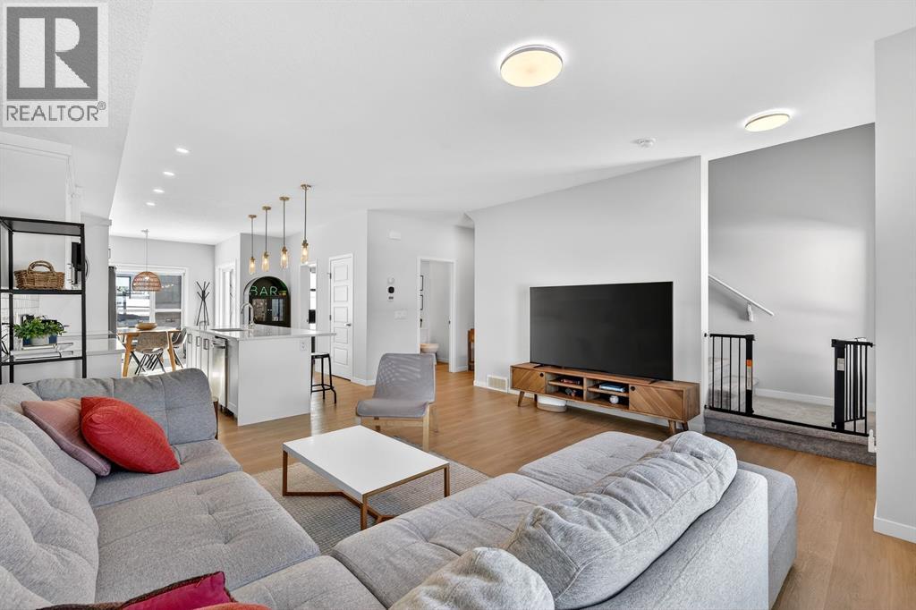 $291.41 MonthlyWelcome to Cranston, where light, space, and modern design converge in a 2022-built townhome that feels as elevated as it is effortless. Offering 1,876 square feet of above-grade living space, this impeccable residence invites you to step into something more refined - where clean architectural lines, thoughtful upgrades, and serene pond views quietly signal that you’ve found the one. From the moment you enter, a versatile flex space on the first level unfolds with possibility, ready to become your home gym, studio, executive office, or private retreat. Upstairs, 9-foot ceilings and an open-concept layout create a sense of expansiveness, while natural light beams through both east and west-facing windows, illuminating the luxury vinyl plank flooring. The kitchen is both refined and functional, featuring stainless steel appliances, full-height cabinetry, a large pantry, and a breakfast bar island that naturally becomes the heart of the home. An enclosed office overlooking the glass-railed balcony offers an inspiring workspace with serene pond views, while the balcony’s gas line makes outdoor entertaining effortless. A roomy half bath completes this thoughtfully designed level.The third floor delivers privacy and comfort, with a spacious laundry room offering additional storage and a west-facing primary bedroom that captures warm afternoon light. The deep walk-in closet and elegant ensuite - complete with dual sinks, quartz countertops, and an oversized shower - create a daily ritual of calm and convenience. Two additional generously sized bedrooms share a well-appointed four-piece bathroom, providing flexibility for family or guests. Beyond aesthetics, this 2022-built Cranston townhome is equipped for the future with a brand new air conditioner, hot water on demand, a heat recovery ventilator, fibre optic high-speed internet, and an oversized insulated double attached garage with a double driveway comfortably fitting four vehicles. The garage is already equipped wit h an electrical panel for a future EV charger, blending practicality with forward-thinking design. Visitor parking within the complex and additional street parking ensure convenience for guests, while pet-friendly policies with board approval make it easy to bring every member of the family home. Overlooking a scenic wet pond and located near the river pathways of Fish Creek Park, shopping, schools, and everyday amenities, this home offers easy access to the ring road and Deerfoot Trail, connecting you seamlessly to the rest of Calgary. (id:49203)