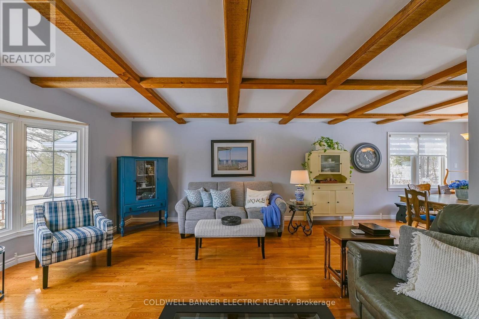 Located in the quaint rural community of Douro-Dummer, surrounded by farmland and set along 94 ft of the Indian River, this stunning 3+1 bedroom, 2 bath property offers the perfect blend of living. Ideally situated just 15 minutes from Peterborough, Hwy 115, and Lakefield, you'll enjoy both convenience and tranquility-with fibre optic internet available for reliable, high-speed connectivity. Whether you're looking to retire in comfort or raise a growing family, this home offers a relaxed lifestyle with year-round enjoyment.Spend your days canoeing, kayaking, paddle boating, or simply floating down the river at your leisure. Inside, you'll find warm and inviting features including beautiful beamed ceilings and hardwood floors originally milled from the property. The custom kitchen is thoughtfully designed with quartz countertops, ceramic finishes, under-cabinet lighting, and a built-in double oven-perfect for everyday living and entertaining alike.With in-law suite potential, this home offers flexibility for extended family or multi-generational living. Step outside and embrace the peaceful setting-where slow Saturday mornings mean choosing between coffee by the pool or riverside under the gazebo. The swimming pool is surrounded by a stunning stamped concrete patio, creating your own private oasis. Just steps away, the 8 x 12 bunkie offers the perfect she-shed, guest space, or playhouse for the kids.Located across from a seasonal snowmobile trail, this property offers four-season recreation right at your doorstep. This is more than a home-it's a lifestyle. Come fall in love. (id:49203)