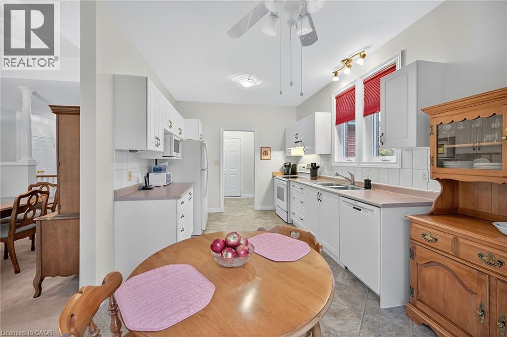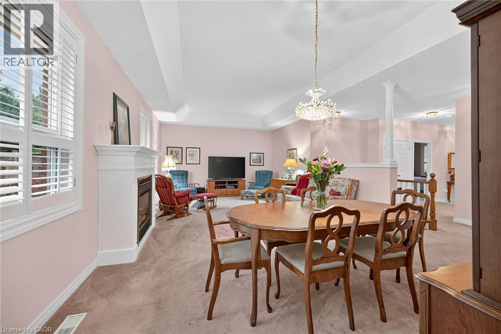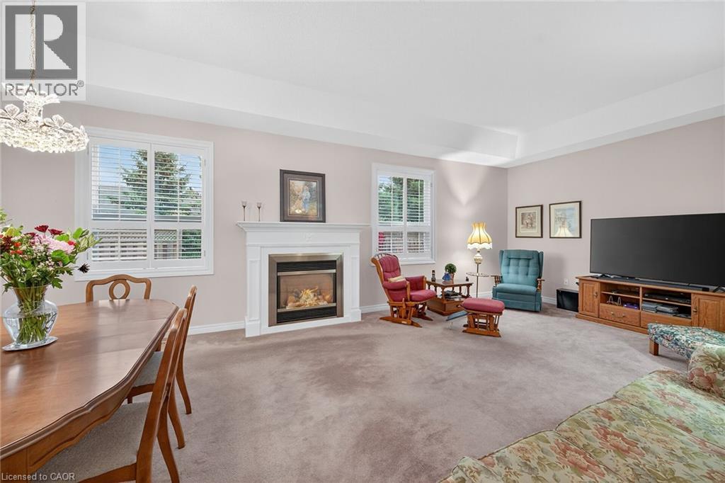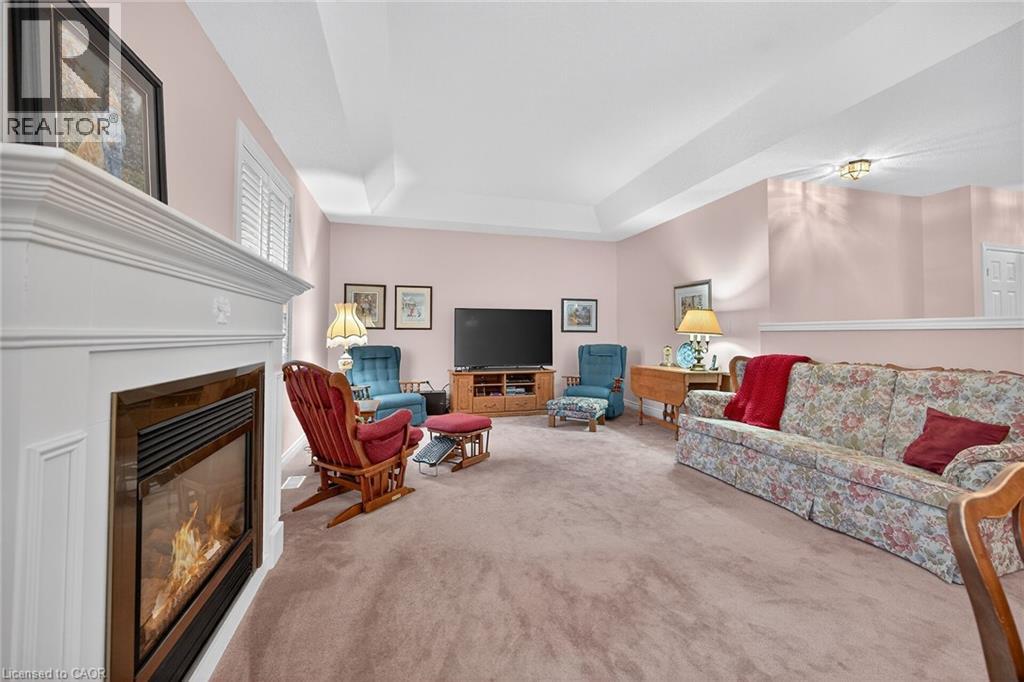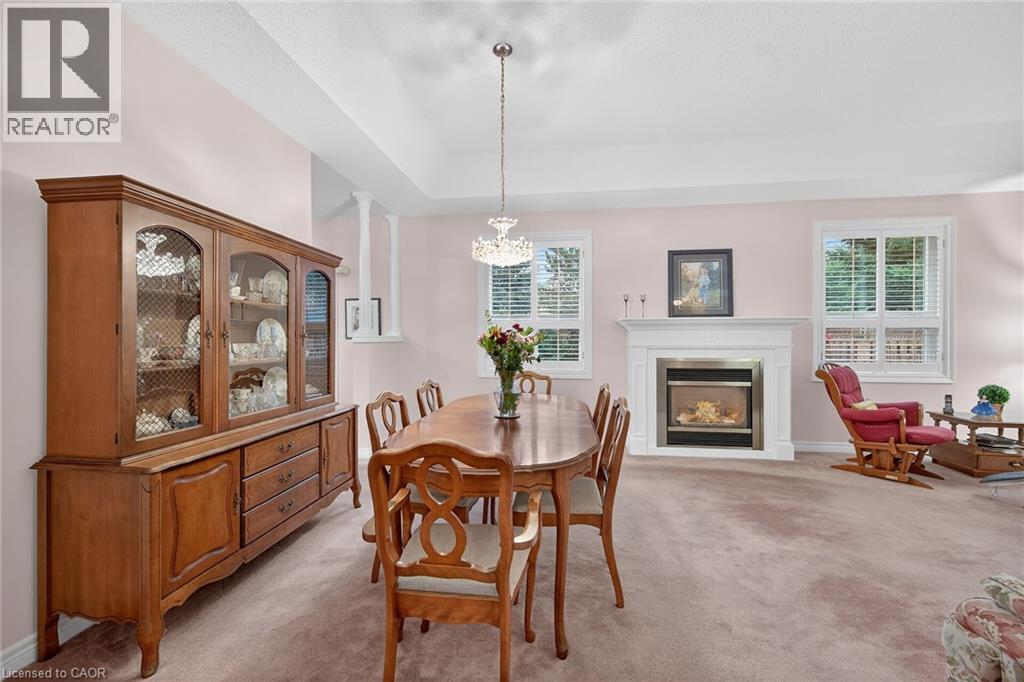 $703 MonthlyWELCOME TO TWENTY PLACE! One of Southern Ontario’s most sought-after adult-lifestyle communities. Enjoy low maintenance living in this friendly, active community! This spacious end unit bungalow features a double garage with a window, and a large, unfinished, unspoiled basement which awaits your finishing. There are 9 foot ceilings throughout the main floor, with the living room and dining room featuring a 10 foot coffered ceiling and a lovely gas fireplace. You’ll love the large, bright, eat-in kitchen, custom designed to provide great access to the laundry room. There is a 3 year new patio door in the kitchen leading to the private backyard, a side window offering lots of natural light, and ample cupboards including a pantry. The laundry room has inside entry from the double garage. Both bedrooms are a good size, with the primary featuring a lovely bay window, good closet space and a 4 piece ensuite bathroom with soaker tub and separate shower. Another 4 piece bathroom is conveniently located close to the second bedroom. All main floor windows were replaced about 2 years ago and the furnace and air conditioning unit are approximately 3 years old. You’re just steps away to the spectacular residents’ clubhouse which has indoor pool, sauna, whirlpool, fully equipped gym, large party room, games and craft rooms, tennis/pickle ball court, putting green, shuffleboard and more! This is turn-key living at its best! (id:49203)