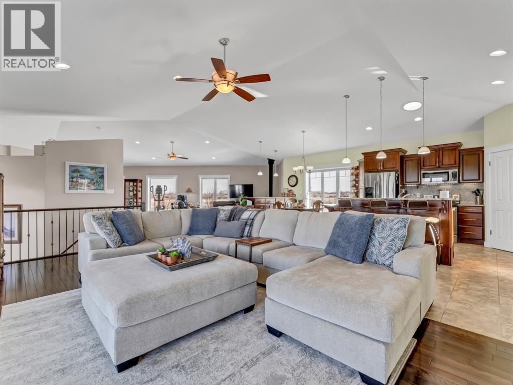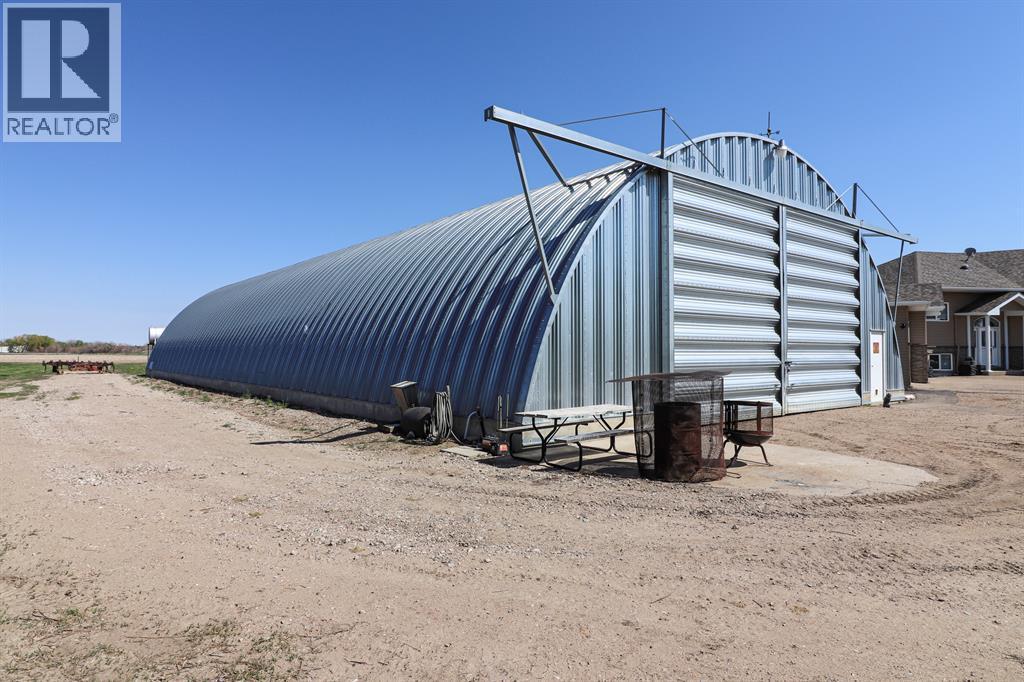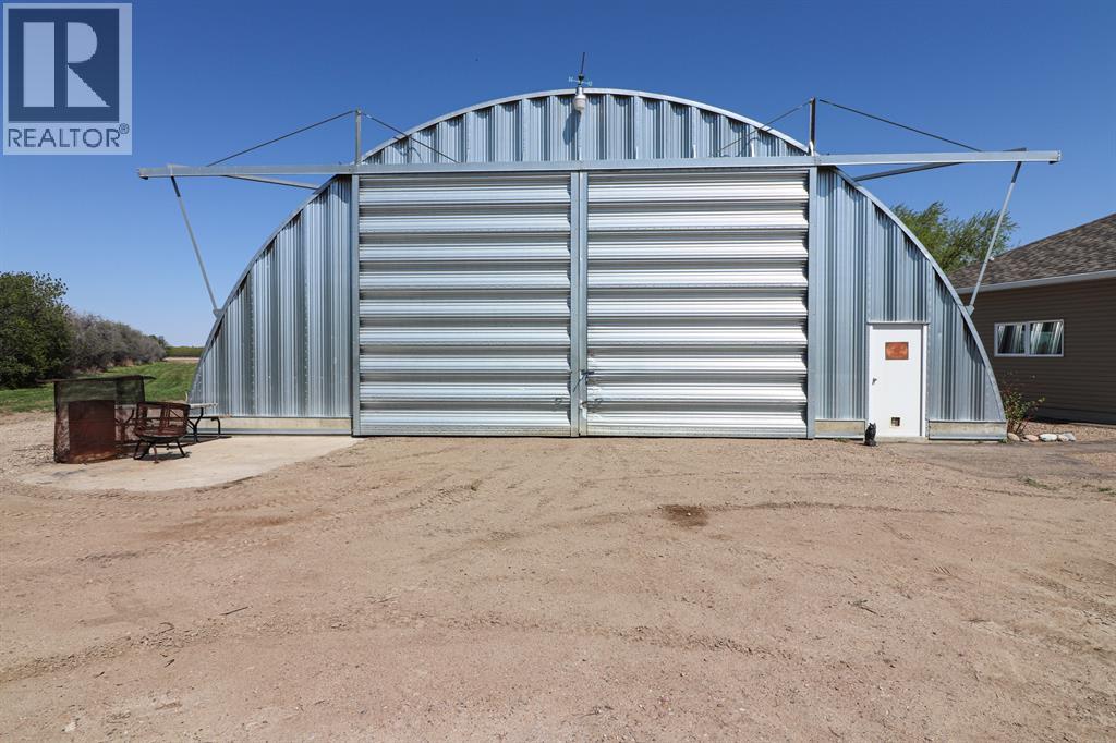 You can have it ALL... Country living, 3km paved from the City. Fully developed 3339 sq.ft. beautiful, modern bi-level built ICF construction to the roof. Geothermal heated, City water. The home has 4 bedrooms, a main floor office, 3 full bathrooms and a triple garage. Infloor heating and efficient home. Massive Quonset - 50x120, as well as 2 sheds. A total of 5.29 beautiful acres of low maintenance, private, picturesque yard with a garden, fruit trees and grassland for any animals or hobbies. The possibilities are endless with this rare find! (id:49203)