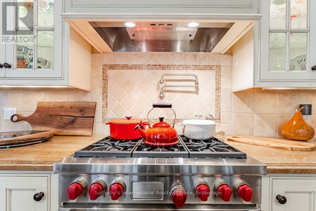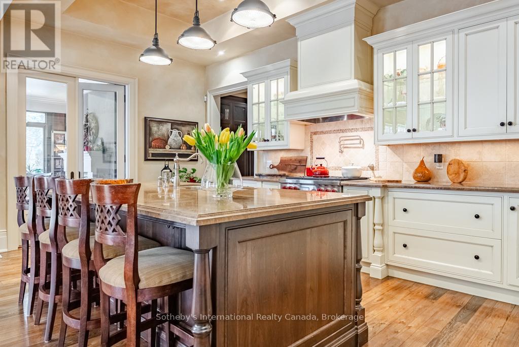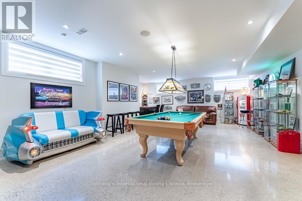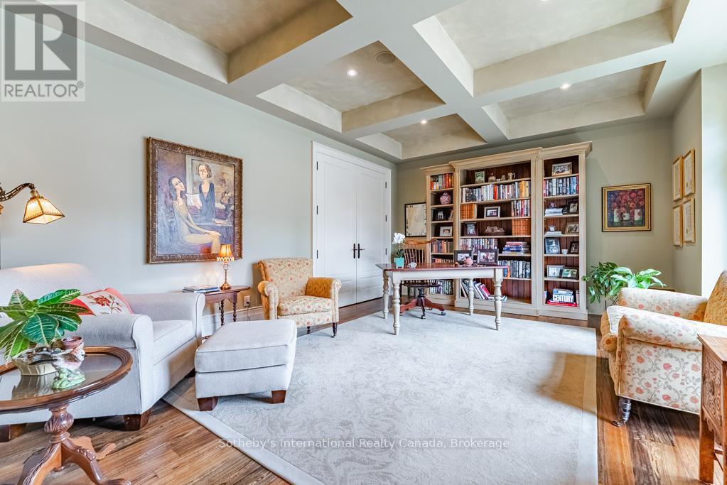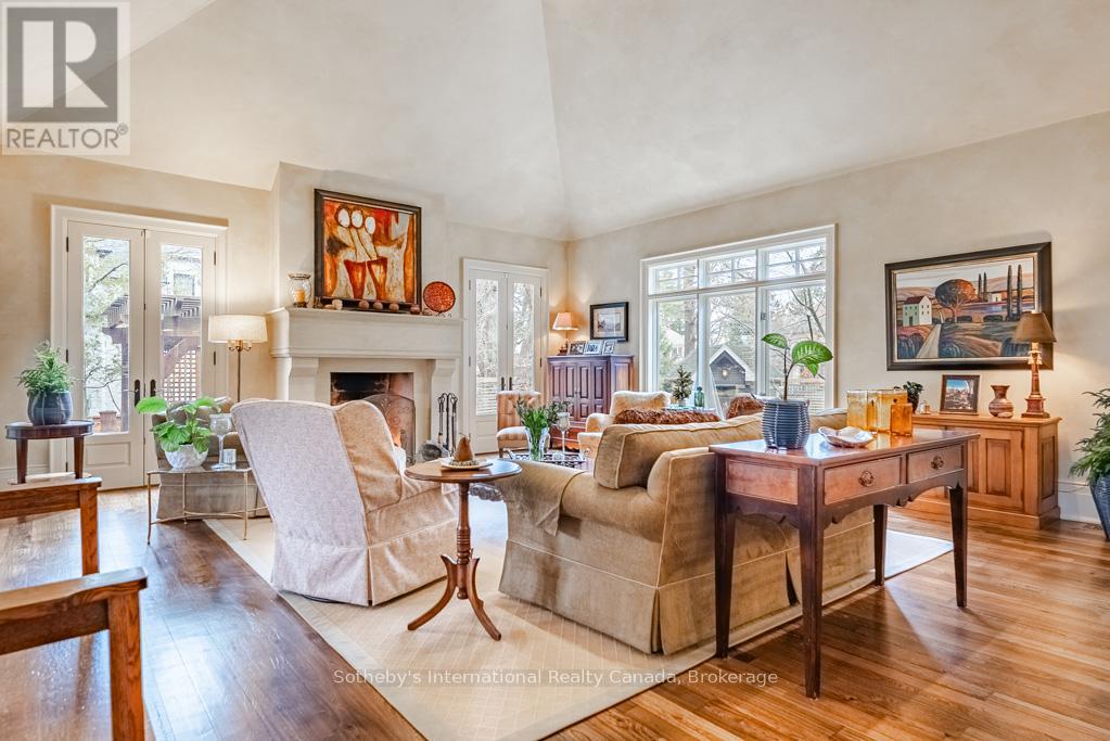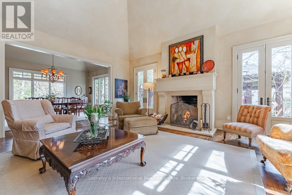 This Rattray Park Estate home offers one-floor living at its finest! Steps from the lake, Rattray Marsh, creeks, & trails. The outdoor spaces have been meticulously designed. Mature trees were thoughtfully placed, a striking rock-boulder water feature blends seamlessly into the landscape, pristine gardens showcase carefully selected blooms that fill the property w/stunning seasonal color & fragrance. Pergolas provide quiet shade beneath the trees, beside an outdoor wood-burning fireplace, generous seating areas surrounding the pool & sunken hot tub, & the rear Muskoka rm offers the perfect place to take it all in. Approaching the front, natural stone & Douglas Fir beams beautifully complement the surrounding landscape. The spacious foyer welcomes you w/a large dining room w/garden access on one side & an office w/peaceful garden views on the other. Moving forward, you arrive at the heart of the home. The great room features vaulted ceilings, dramatic stone-surround fireplace w/mantle, 2 sets of double doors leading to the rear gardens, creating a warm & inviting atmosphere. Open to the great room is a chef's dream kitchen w/custom cabinetry, state-of-the-art appliances & a large island offering seating for four, with direct access to the Muskoka rm. The hall off the kitchen features a pantry with wall-to-wall custom cabinetry, built-in freezer & bar. Across the hall is a 3 pc bath w/beautiful decor. The Muskoka rm is a standout feature, complete w/fireplace & ample space for both a lounge area & harvest table casual dining. Private double doors lead to a spacious primary bedroom w/garden views, Muskoka rm access, a large walk-in closet w/built-ins, & a spa-inspired 5-piece ensuite. The second level offers 2 generous bedrooms & a 5-piece bath. The lower level features a games room (easily converted into two large bedrooms), a recreation room with fireplace, gym, den & 4-piece bath. Nothing to do but move in! Games rm could be 2 lrg bdrms making this a 3+2 bdrm home (id:49203)