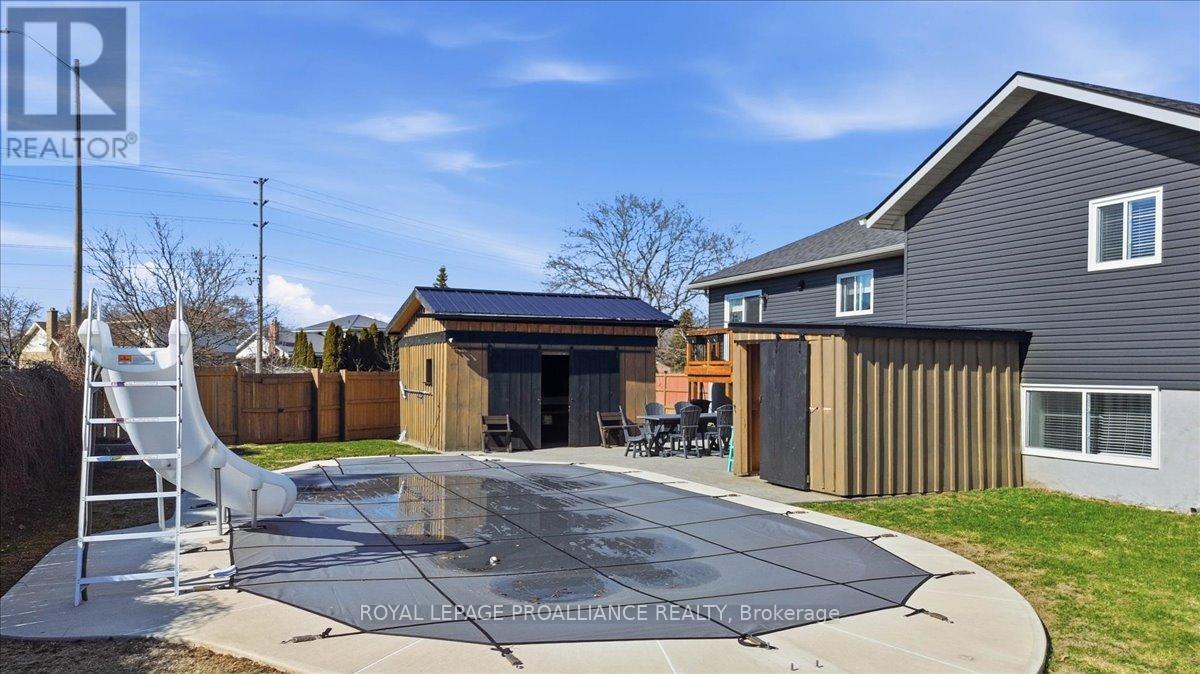 Welcome home! this home truly has it all, tucked into a quiet corner of Belleville's west end neighbourhood. Built in 2023, this home offers the comfort of something new, with the warmth of a space ready to be lived in and loved. Offering a bright, open layout, the main floor features a welcoming kitchen, dining, and living space perfect for everyday living and entertaining, along with two bedrooms including a primary suite with walk-in closet and en-suite, plus convenient main floor laundry. Downstairs opens up even more possibilities. With bright, airy 8 foot ceilings and plenty of natural light, this level offers two additional bedrooms, a rec room with a built-in bar, and a separate kitchenette with walk-up access to the backyard, ideal for guests, extended family, or giving everyone their own space. Out back is where this home really shines. The fully fenced yard is made for making memories whether it's summer days spent in the heated in-ground pool, evenings unwinding in the covered hot tub, or gathering under the cabana for BBQs and laughter with friends and family. This is more than just a house, it's a place to settle in, grow, and create lasting memories for years to come. (id:49203)