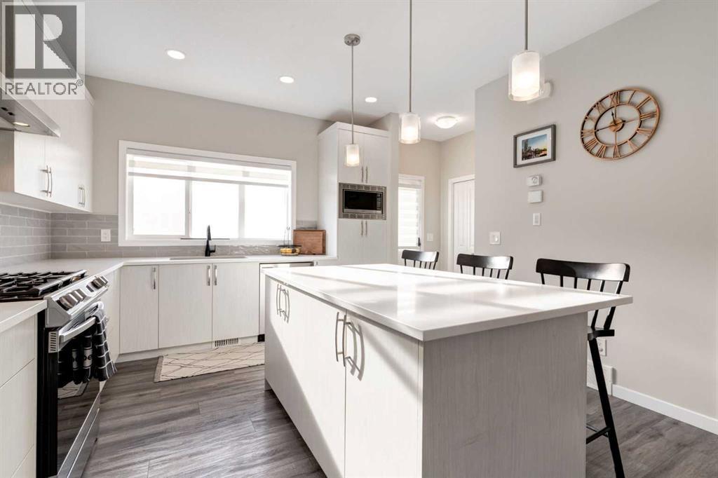 Welcome to this exceptional, fully finished home in the highly sought after lake community of Mahogany. Thoughtfully upgraded and meticulously maintained, this south facing home offers air conditioning, an oversized double detached garage, solar panels and over 2,200 square feet of developed living space; making it truly move in ready! The main floor features an inviting open concept layout with a spacious living room that flows seamlessly into the dining area and kitchen; ideal for both everyday living and entertaining. The kitchen is well appointed with quartz countertops, a full stainless steel appliance package with gas stove, an abundance of cabinetry, a pantry and stunning subway tile. A convenient two piece bathroom and a functional mudroom complete the main floor, adding to the home’s thoughtful and practical design. Upstairs, the primary suite offers a walk in closet and a private ensuite complete with dual vanities and an oversized shower. Two additional bedrooms, a full four piece bathroom and a convenient upper level laundry room provide excellent functionality for families and guests. The fully developed basement, complete with a separate side entry, expands the living space and includes a fourth bedroom, a full bathroom, a recreation room and additional storage. Step outside to enjoy the private, sun drenched south facing backyard, featuring low maintenance stamped concrete, a storage shed and an oversized double detached garage. Recent upgrades include Gemstone exterior lighting, central air conditioning for year round comfort and solar panels. Located just steps from Mahogany Lake, residents enjoy exclusive access to swimming, paddle boarding, skating, and year round community events. This is a rare opportunity to own a turn key home in one of Calgary’s most desirable lake communities; offering not just a home, but a true lifestyle. (id:49203)