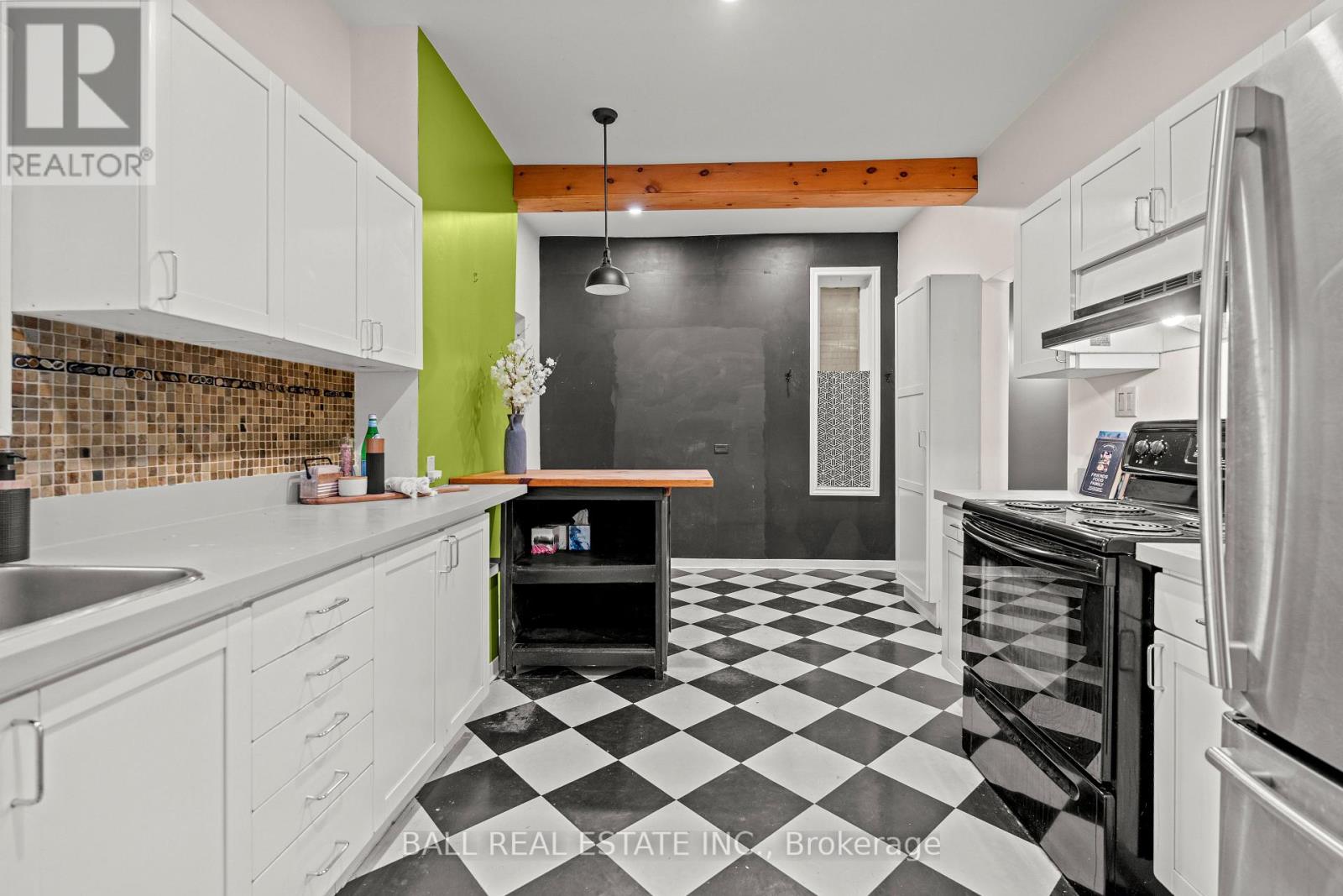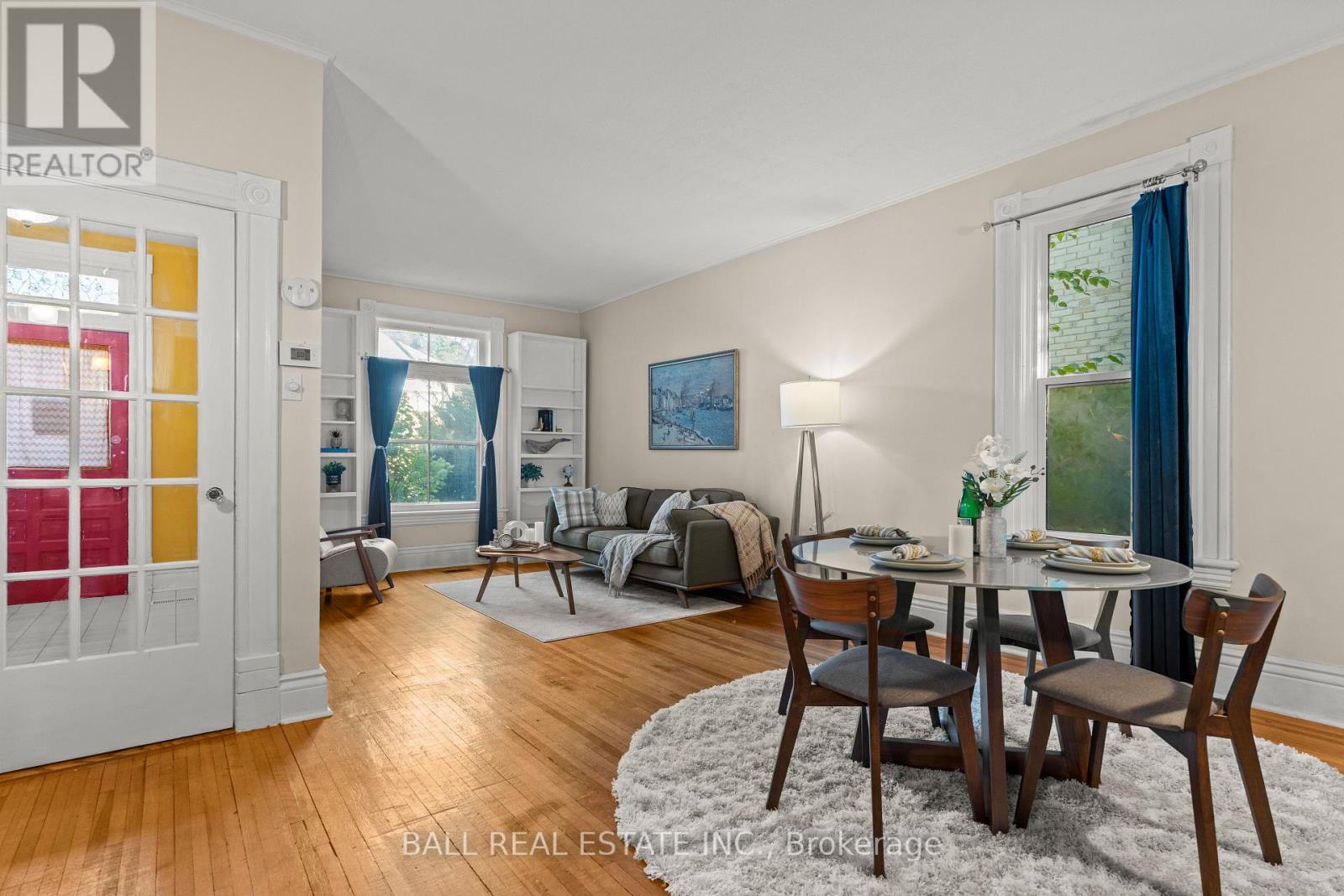 Welcome to this beautifully maintained two-storey brick home in Peterborough's vibrant central core, ideally located just steps from the Caf District, local restaurants, shops, and downtown amenities. Lovingly cared for over the years, this home reflects true pride of ownership while blending timeless character with meaningful modern updates. The main floor offers a welcoming foyer that opens into a bright and inviting living and dining space, highlighted by hardwood floors, ceramic tile, and an abundance of natural light from large windows throughout. The spacious kitchen provides ample room for everyday living, entertaining, and future personalization. Upstairs, the second level features three comfortable bedrooms and a generously sized main bathroom, offering a practical and versatile layout well suited to families, first-time buyers, or those seeking strong rental potential. Key updates include a newer roof, newer air conditioning, updated furnace, and newer windows, providing peace of mind and improved efficiency for years to come. Outside, the fully fenced backyard offers a private and adaptable outdoor space perfect for relaxing, gardening, or hosting friends and family, complemented by established gardens that add warmth and charm. Whether enjoying summer barbecues, quiet evenings, or creating a play area for children or pets, this move-in-ready home delivers lifestyle, location, and long-term value in one of Peterborough's most walkable neighbourhoods. (id:49203)