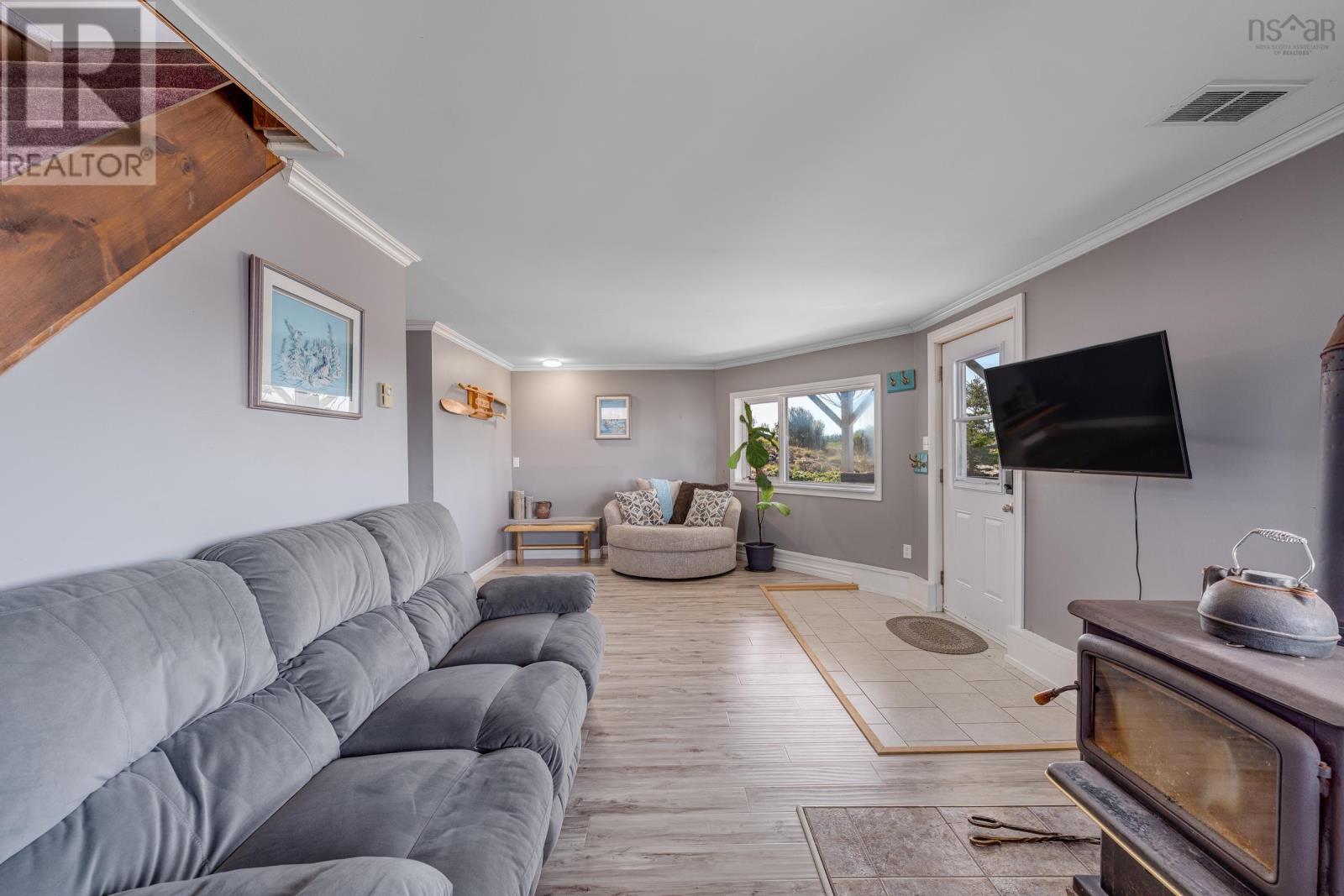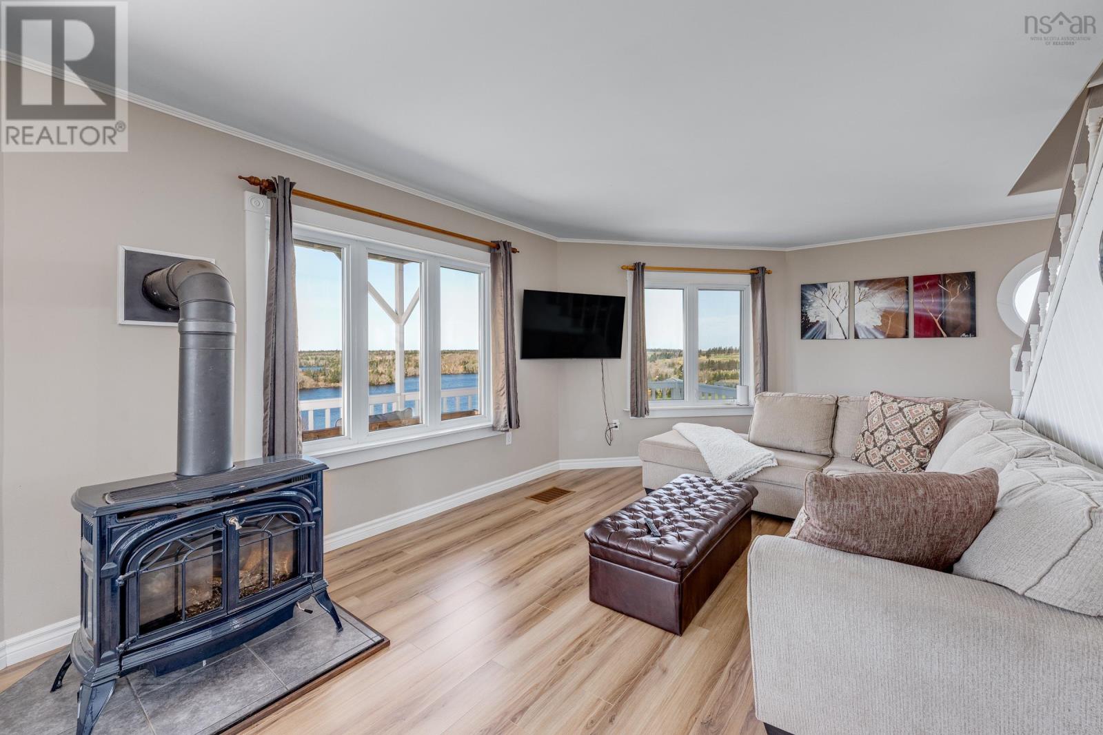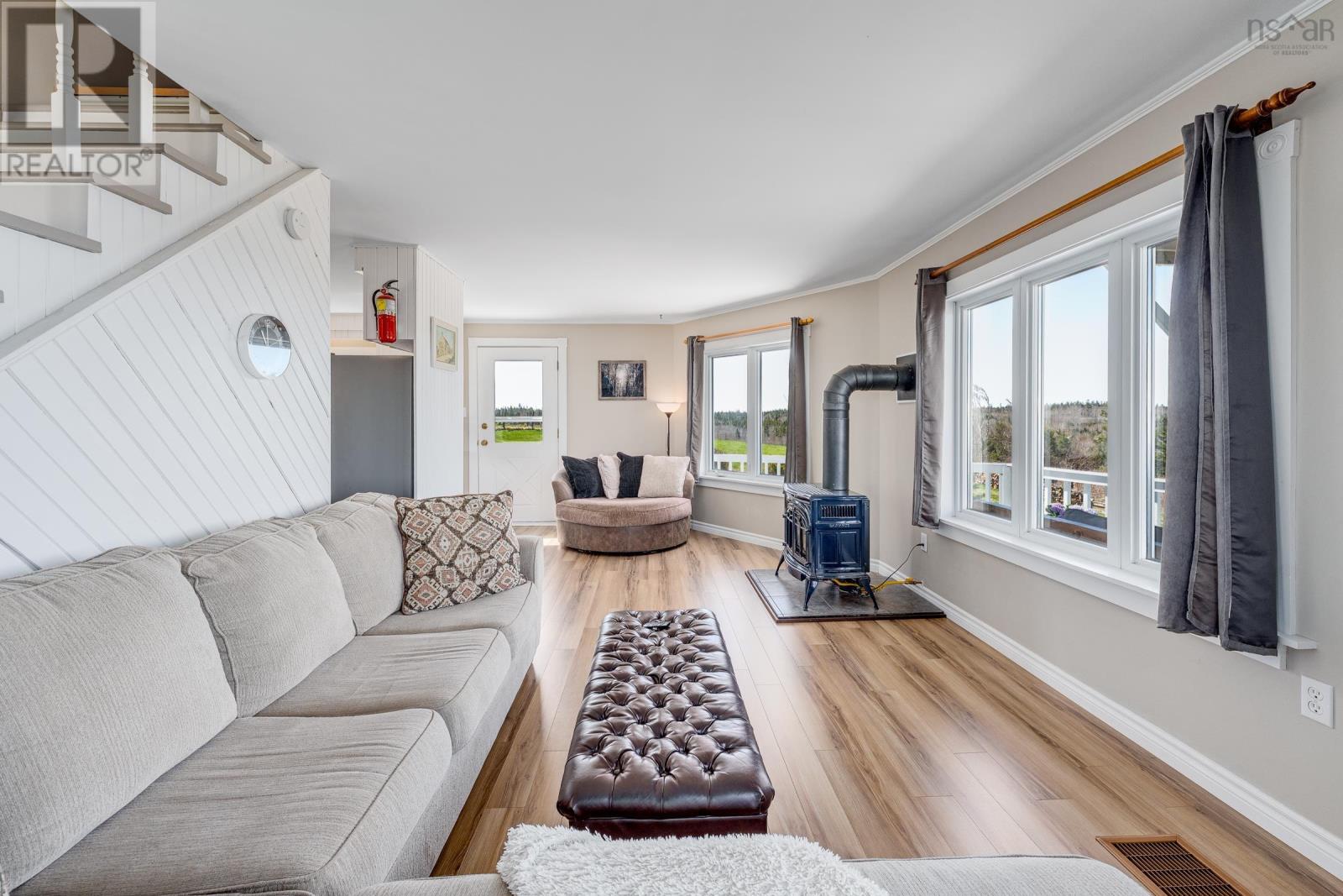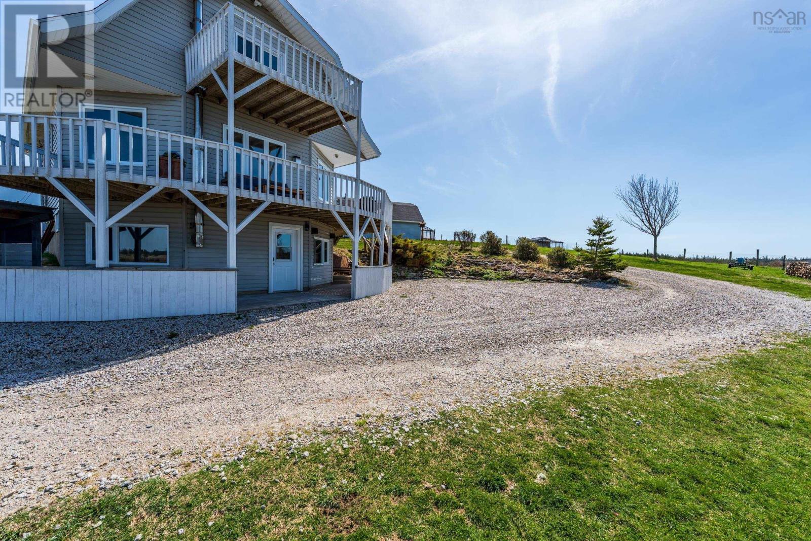 This updated 3-bedroom, 3-bathroom country home sits atop a private 43-acre lot with sweeping views of Allen's Lake, Darlings Lake, and even the Atlantic Ocean. Just a short drive to Yarmouth, the hospital, and beautiful Port Maitland Beach, this property offers peaceful living with convenience close by. Built in 1992, this barn-style home features an open-concept layout, rustic charm, and modern finishes throughout. The main level includes a bright kitchen and dining area, a spacious living room with walkout to a wraparound deck, plus a full bath and laundry. Upstairs, the primary suite offers an ensuite bath, and the loft landing adds flexibility as an office, nursery, or fourth bedroom. The walkout basement features two more bedrooms, a full bath, and a separate living area. Extras include an insulated, wired 26' x 28' garage with water and a finished loft, two wells (drilled and dug), a greenhouse, fenced garden, fire pit near the lake, a fish-filled creek, and maintained walking trails. Most of the property is fenced and cross-fenced - ideal for privacy or animals, and there is also a wharf on neighbouring Allen's lake, just down the hill, for swimming, fishing, and soaking up the sun. This is more than a home - it's a peaceful rural lifestyle waiting to be enjoyed. (id:49203)