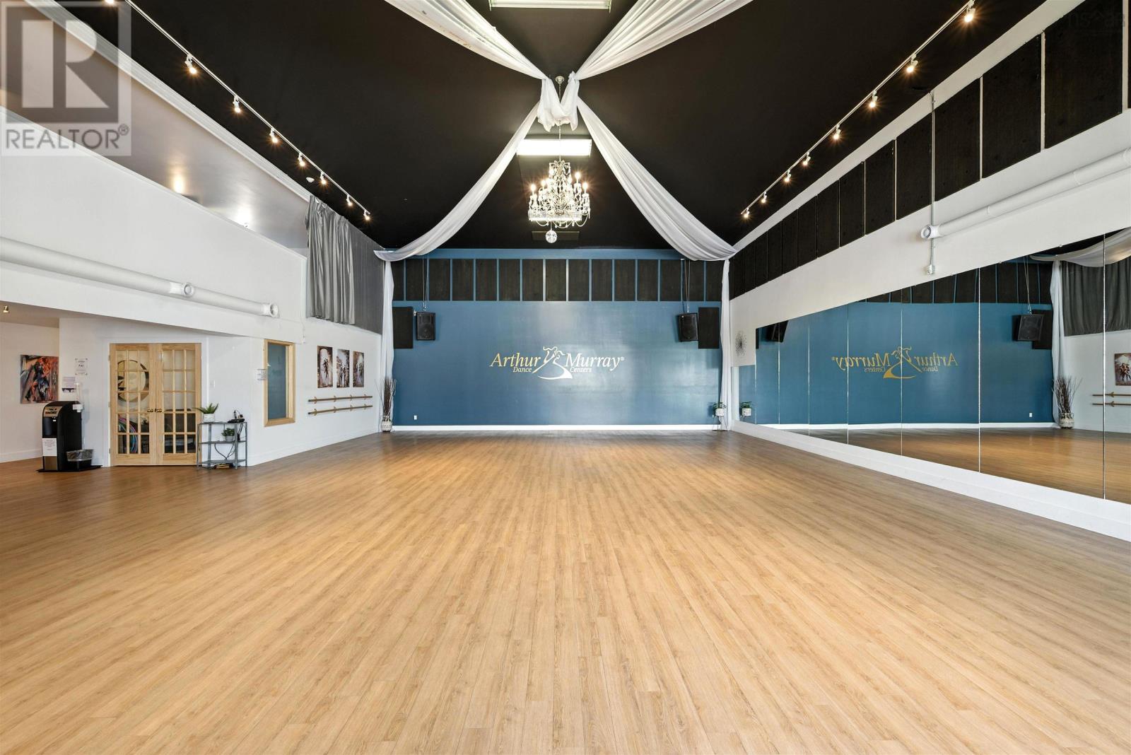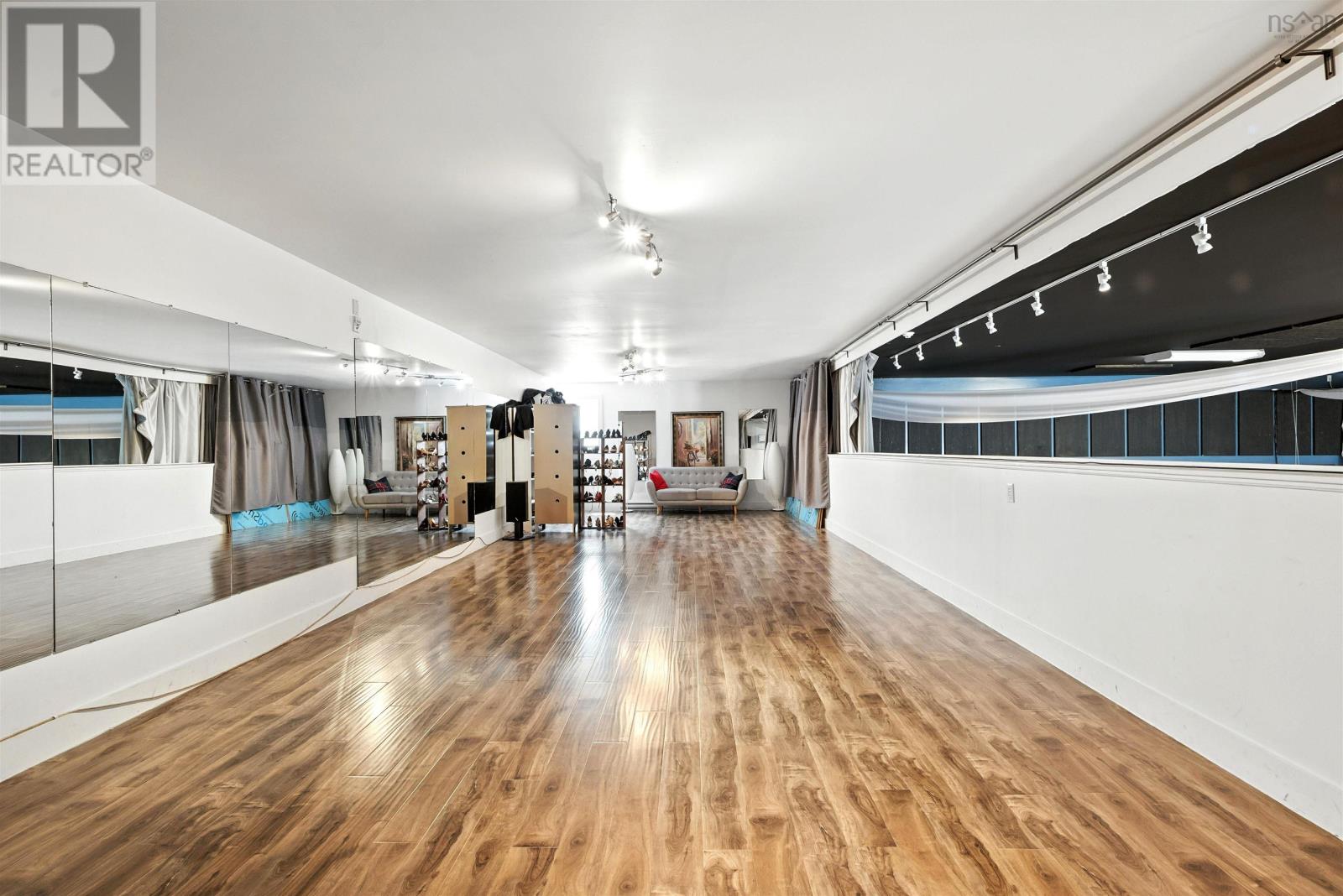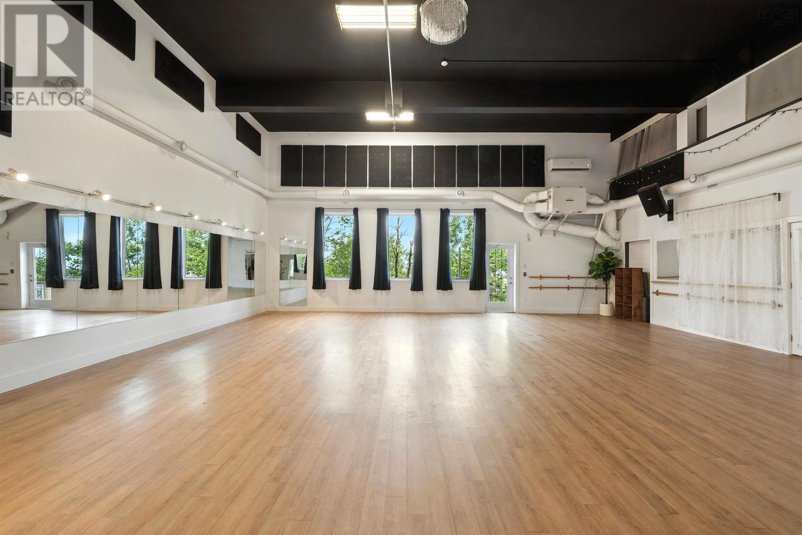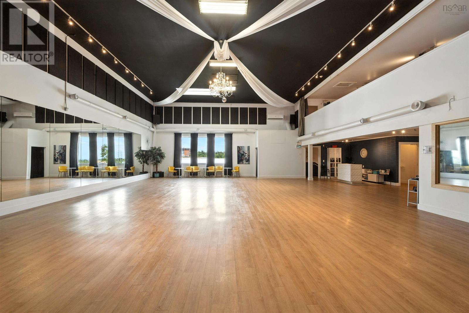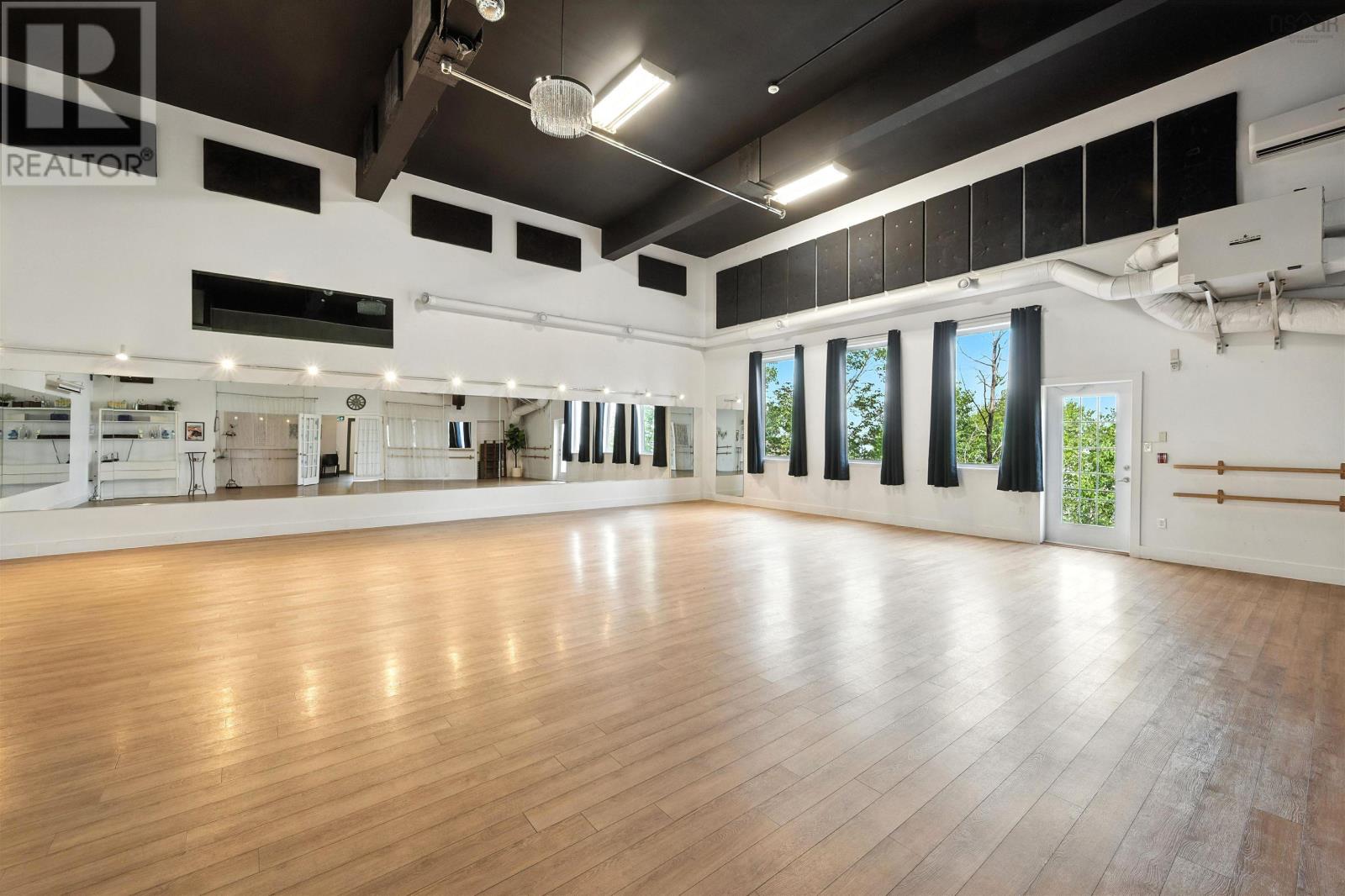 This like-new 7,000 sq. ft. commercial building presents a prime opportunity for recreational, special event, or wellness-focused businesses seeking a well-located space in Halifaxs continually expanding mainland commercial hubBayers Lake. Situated on a 16,543 sq. ft. lot with 16 paved parking spaces, the property offers excellent accessibility to Highways 102, 103, and downtown Halifax. Spanning four levels, the building features two expansive open-concept studio halls, two mezzanine levels overlooking the studios, and multiple flexible-use spaces that can be partitioned as needed to accommodate various business models and schedules. Designed with adaptability in mind, the space has hosted weddings, concerts, yoga, dance, and fitness classes, and offers the perfect environment for a wide range of services. The main level includes a large welcoming reception area accessed through double doors, a studio hall, kitchen, bathroom facilities, and a separate esthetician office. The second-floor mezzanine offers multiple office spaces and additional bathrooms, including one office with plumbing that previously served as a massage therapy space. The third level houses the largest studio hall, another office, and bathrooms, while the top floor features the final mezzanine space. Built with wood construction and impact-minimizing flooring, the building is equipped with in-floor heating, durable vinyl flooring throughout, an asphalt roof, a fireproofed northwest-facing wall, and a robust air-exchange system. This is an outstanding opportunity to launch or grow your business and be part of a vibrant and diverse commercial district. Building and land are for sale. (id:49203)