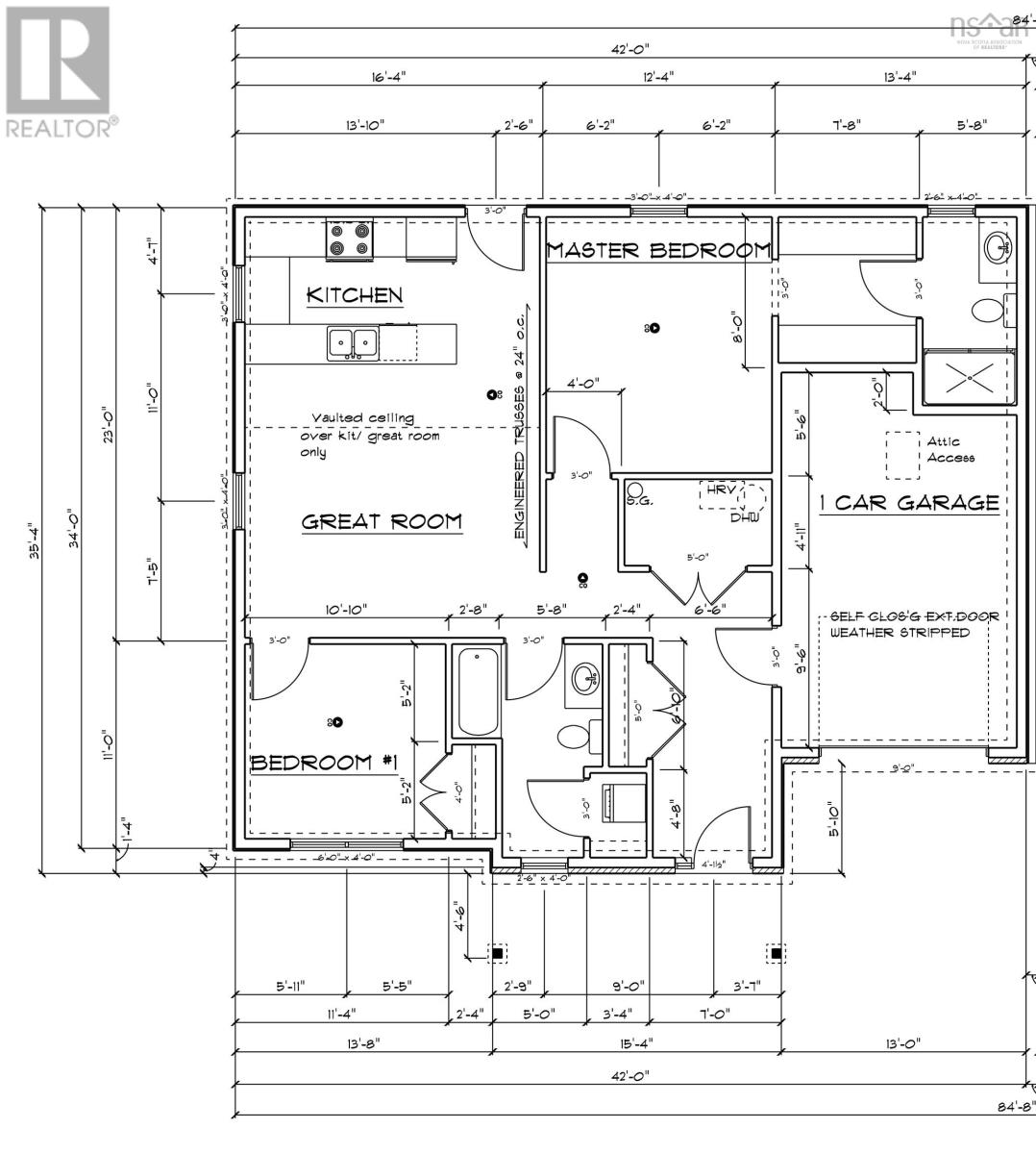 $100 MonthlyWelcome to Meadow Ridge Estates modern bungalow living at its finest!Just 20 minutes from downtown Halifax and 15 minutes from the airport, this thoughtfully designed homeoffers both convenience and comfort close to all essential amenities. Step inside to find a bright, openconcept main living area with vaulted ceilings and a spacious kitchen featuring abundant cabinetry. Theprimary suite includes a generous walk-through closet leading to a private ensuite with a 5 foot shower.A second full bathroom, guest bedroom, main floor laundry, and a large entryway add to the homespracticality. Enjoy outdoor living with a stamped concrete front porch and rear deck, perfect forrelaxing or entertaining. Additional highlights include a single-car garage and an energy-efficientductless heat pump. This home comes complete with HST included in the price and peace of mind provided byan 8-Year LUX Home Warranty. (id:49203)