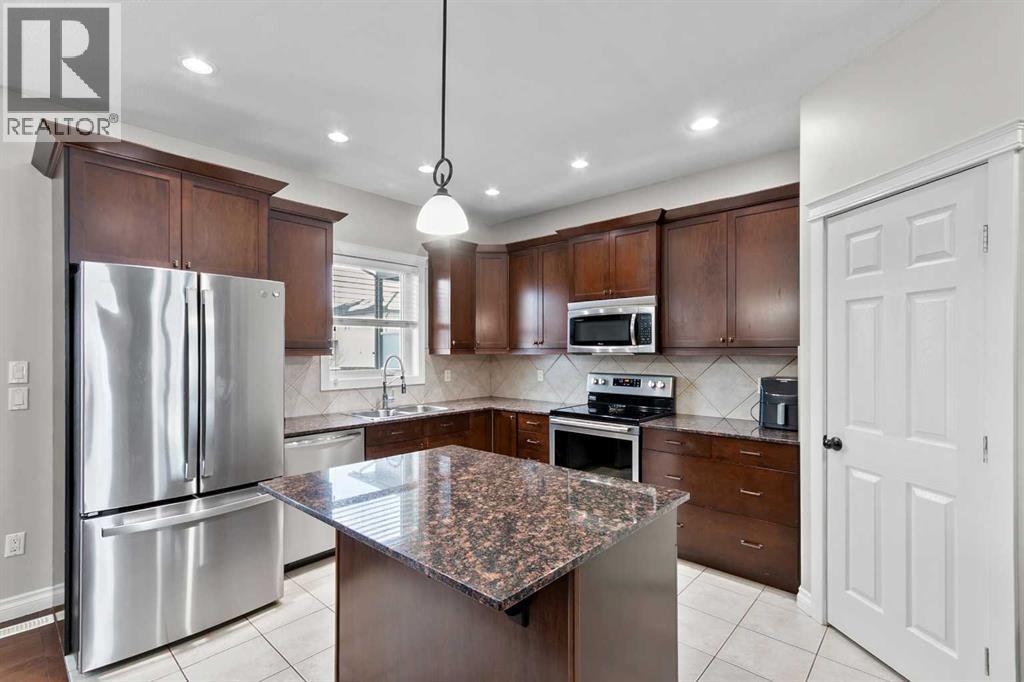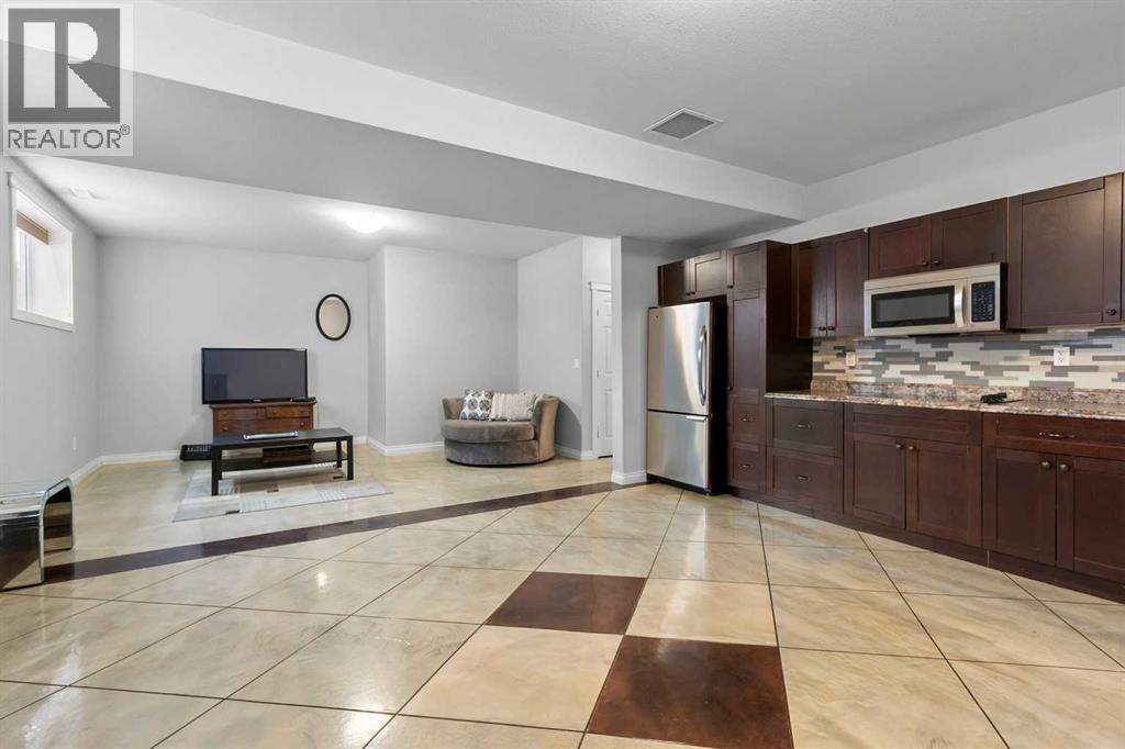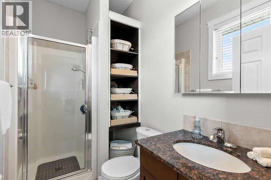 Welcome to this charming and spacious 1,673 sq ft bungalow featuring a rare lofted bonus room above the garage and numerous upgrades throughout. The main floor offers an inviting open-concept layout with a large kitchen that includes granite countertops, a corner pantry, abundant cabinetry, and a generous island overlooking the living and dining areas—perfect for both daily living and entertaining. This level also includes a comfortable bedroom, a full 4-piece bathroom, and the primary bedroom complete with a 3-piece ensuite. Upstairs, the expansive loft above the garage provides an ideal space for a family room, office, or hobby area. The fully developed basement includes an illegal mother-in-law suite with two bedrooms, a 4-piece bath, a spacious living and recreation area, and a kitchen equipped with a fridge, countertop cooktop, microwave, and sink, plus a large mechanical room and additional under-stairs storage. The home features many upgrades such as in-floor heating in the basement and garage, epoxy flooring and 9 ft ceilings in the basement, hot and cold water taps in the garage, a BBQ gas line on the back deck, new shingles and eavestroughs installed in 2025, and a hot water on demand system that is approximately three years old. Outside, enjoy the beautiful front veranda, landscaped yard, large back deck, and oversized storage shed—making this property both functional and inviting. (id:49203)